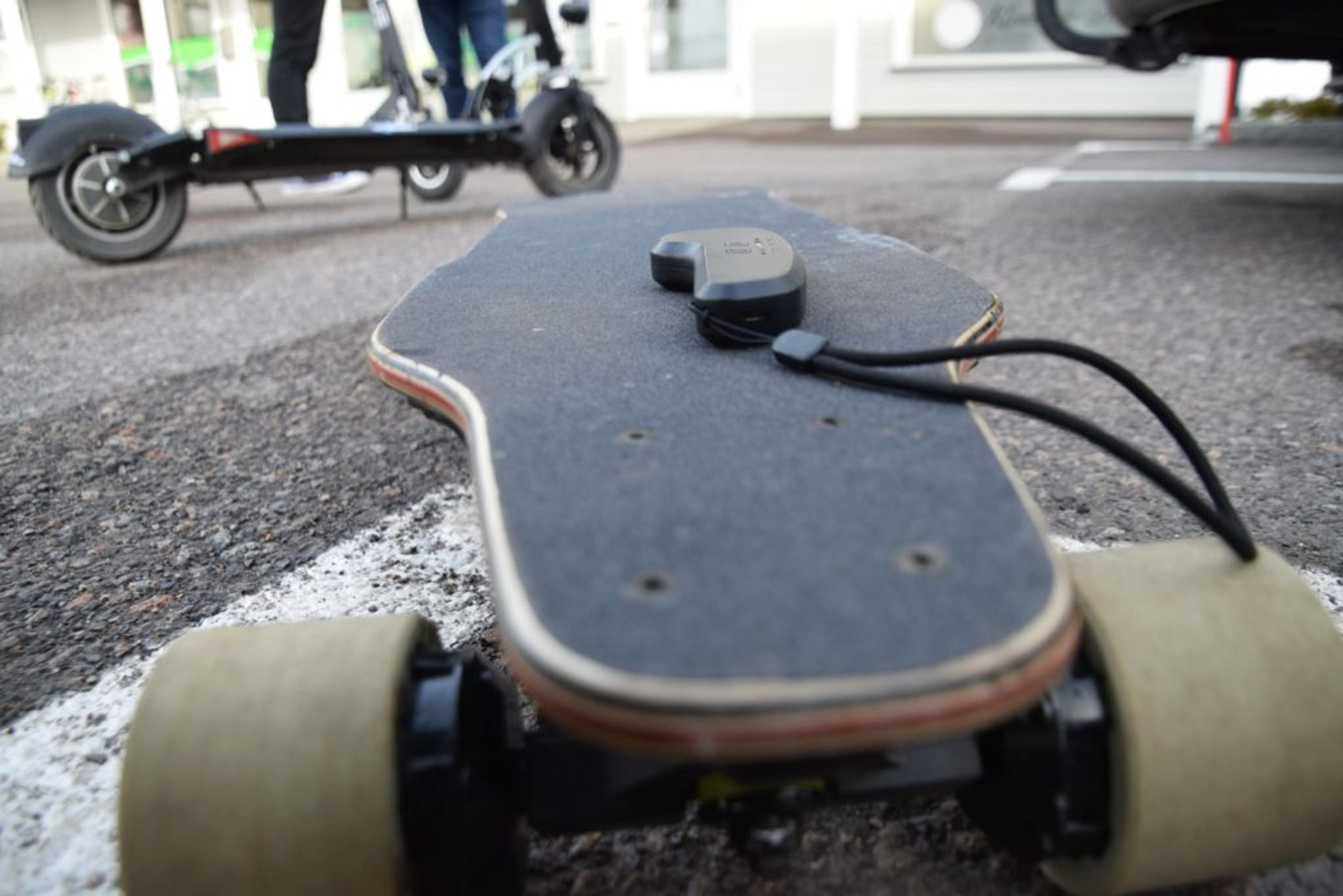 SKATEBOARD: Også dette er elektrisk, med motorer i hjula.