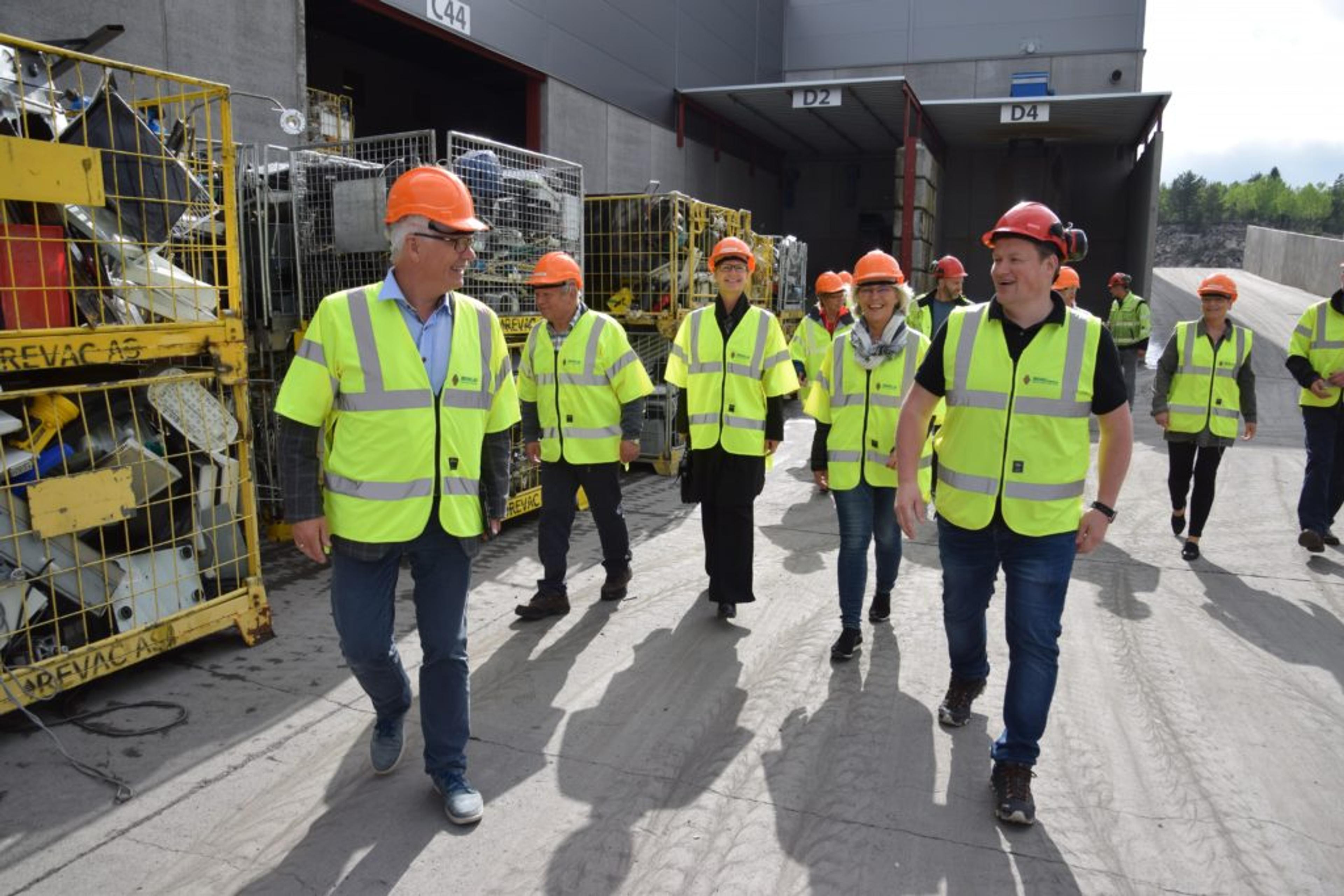 BEFARING: Hovedutvalget på befaring hos Revac med hovedutvalgsleder Odd Gjerpe (KrF) og Revac-leder Anders Aas i føring. Foto: Stian Ormestad.