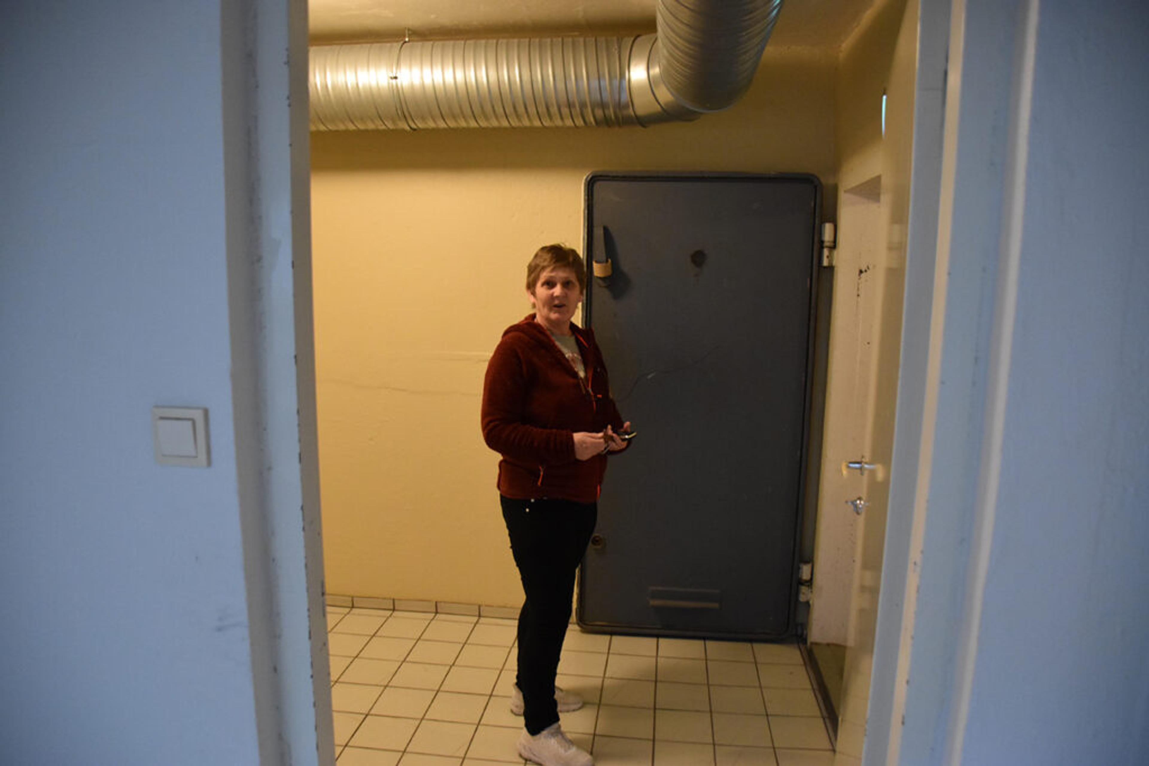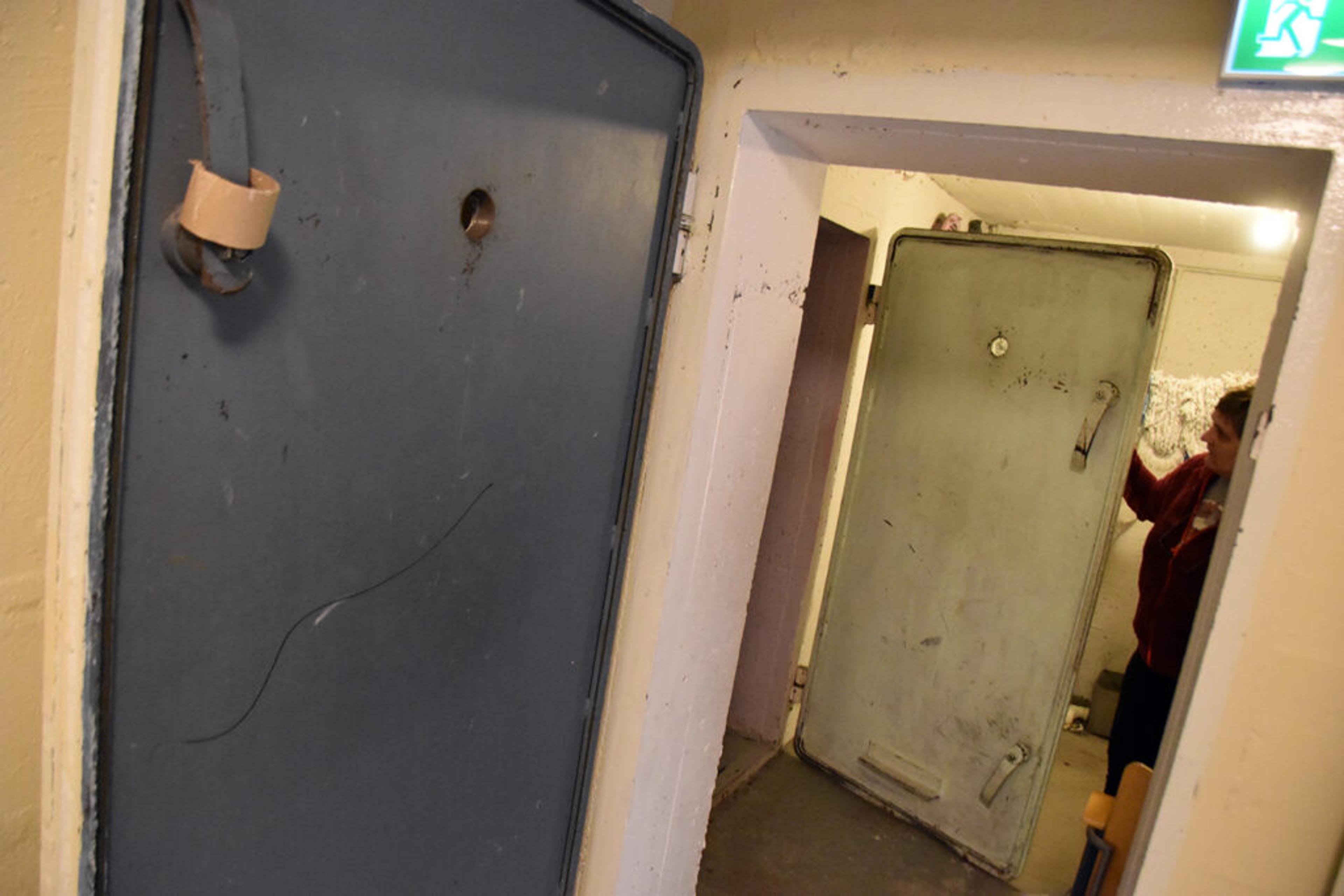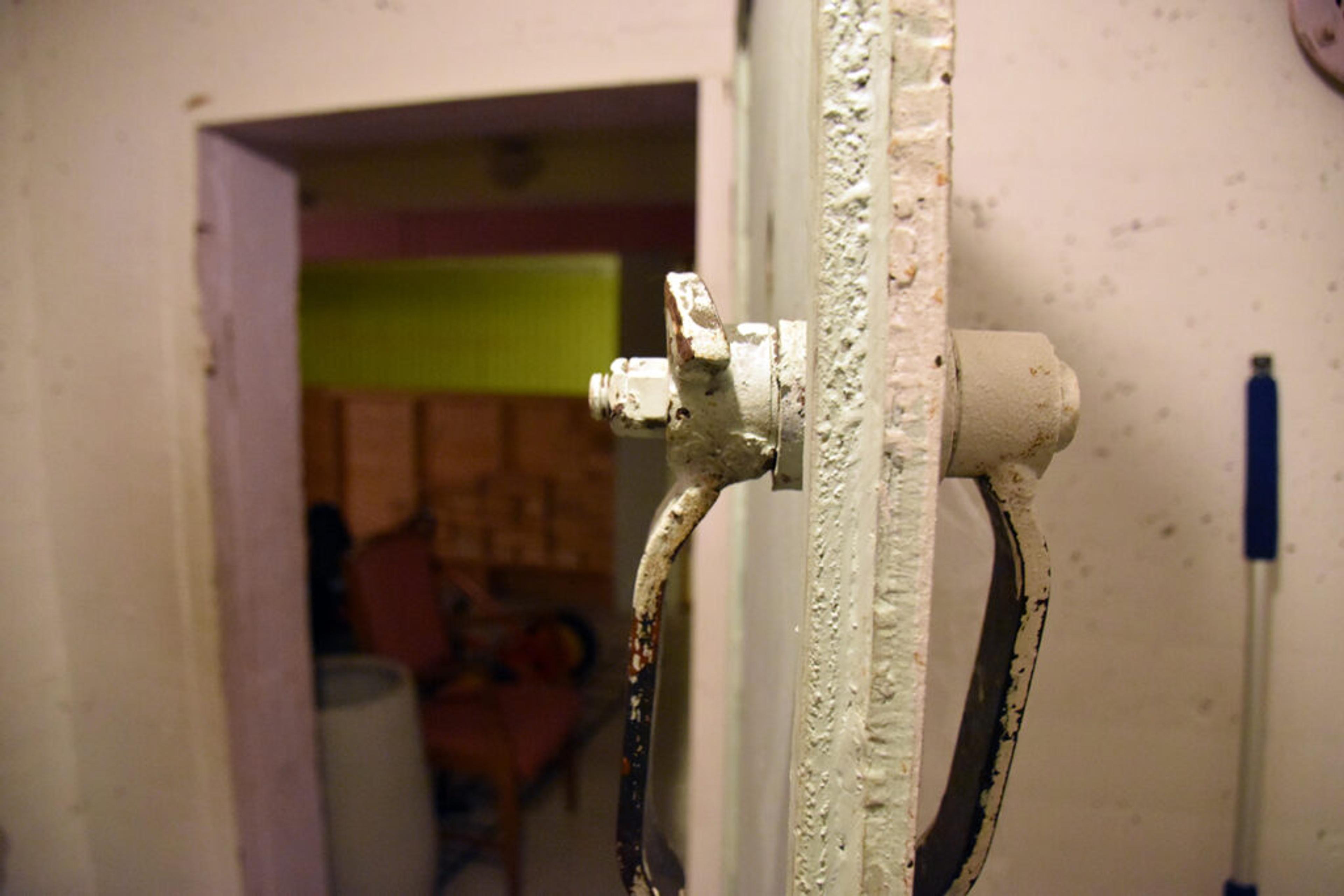 GODT SIKRA: To svære ståldører må du gjennom for å komme ned i denne kjelleren, akkurat som forskriftene for tilfluktsrom krevde i sin tid. Dette ble bygd på 1960-tallet. Foto: Stian Ormestad.
