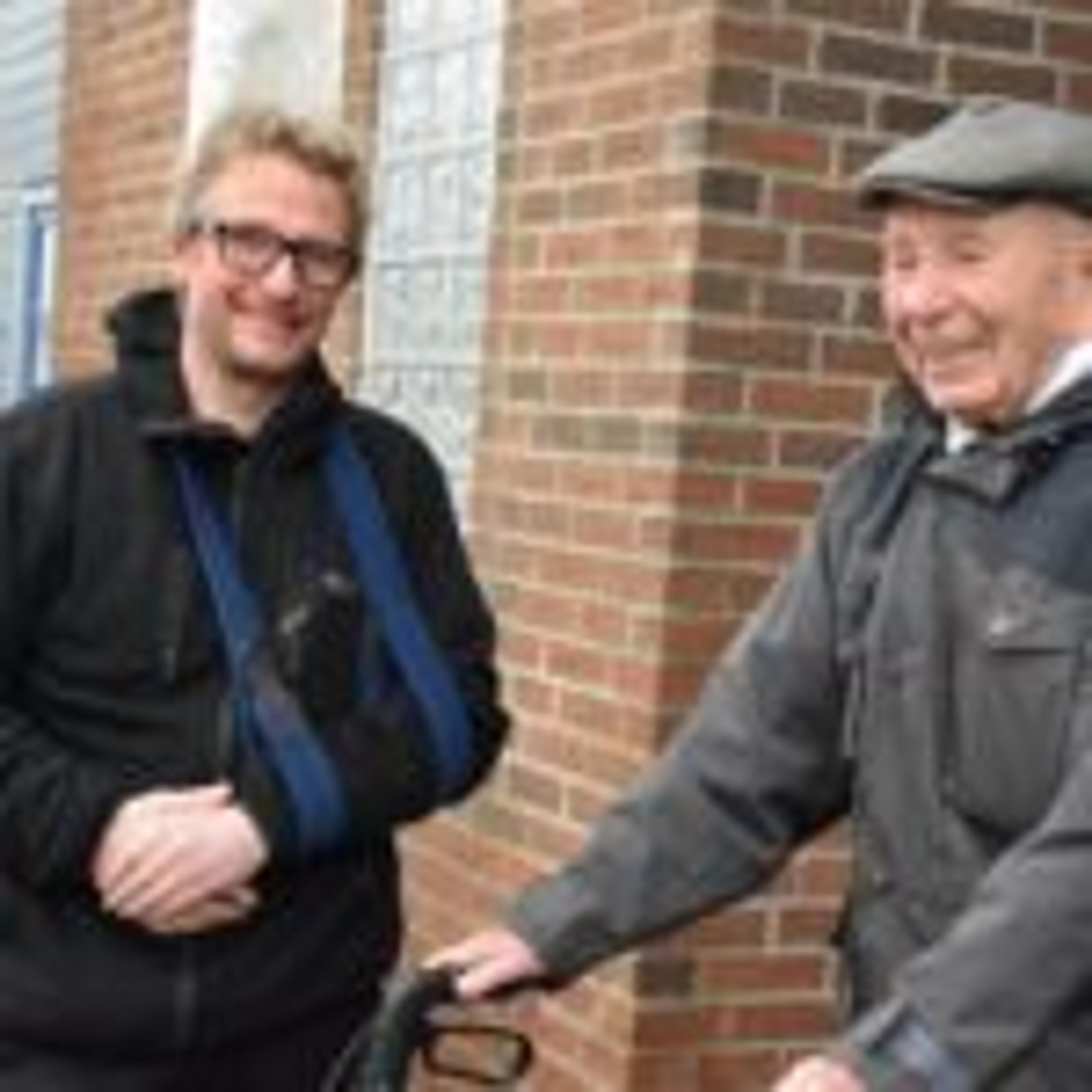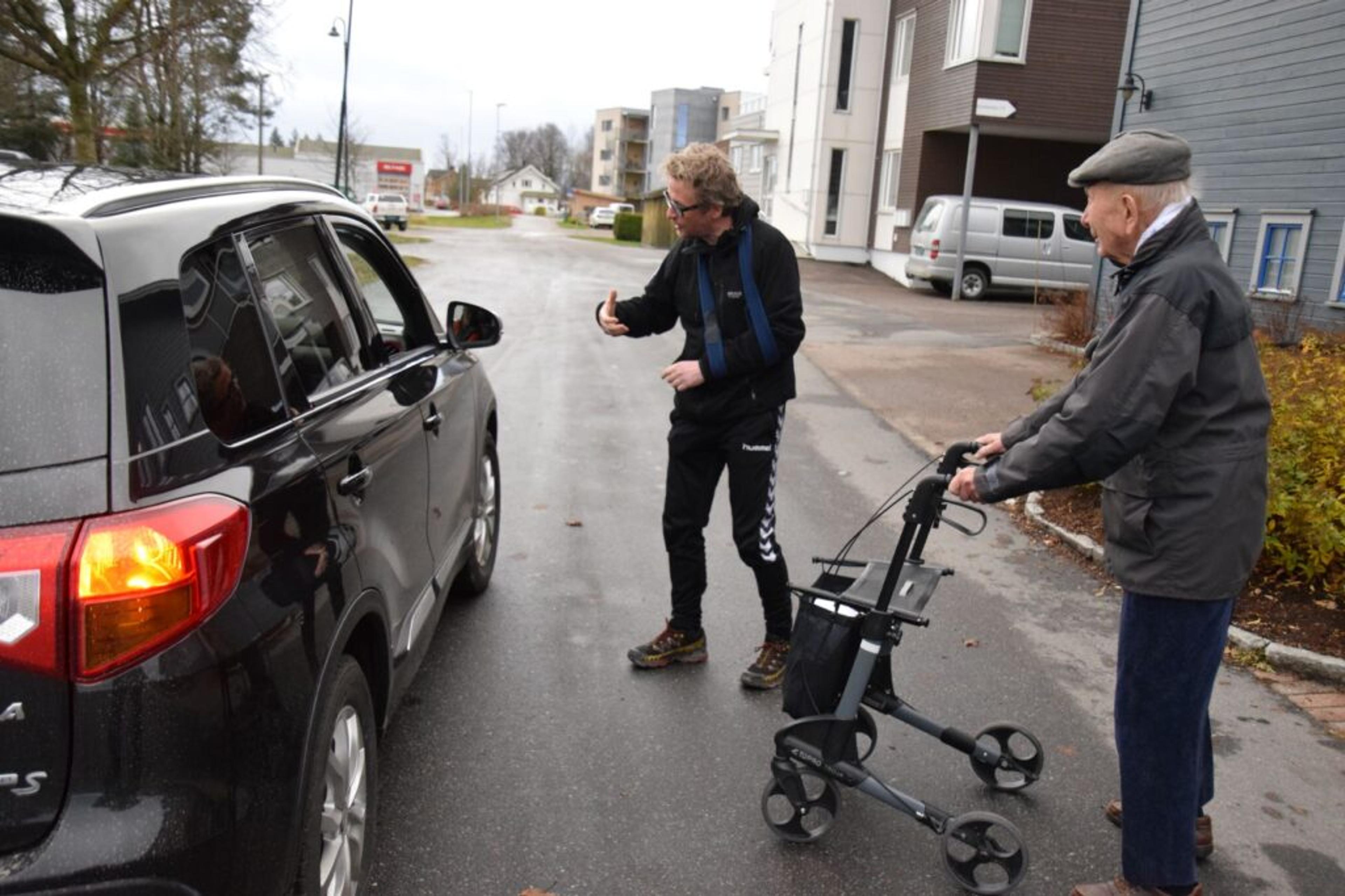 VISER SIN STØTTE: På vei inn og ut til tannlegetimen på Revetal, på venteværelset og overalt får far og sønn Myrvang skryt av sambygdinger for kampen de har kjempa for at geografisk tilhørighet må ha noe å si på hvor du får sjukehjemsplass i den nye storkommunen. Foto: Stian Ormestad.