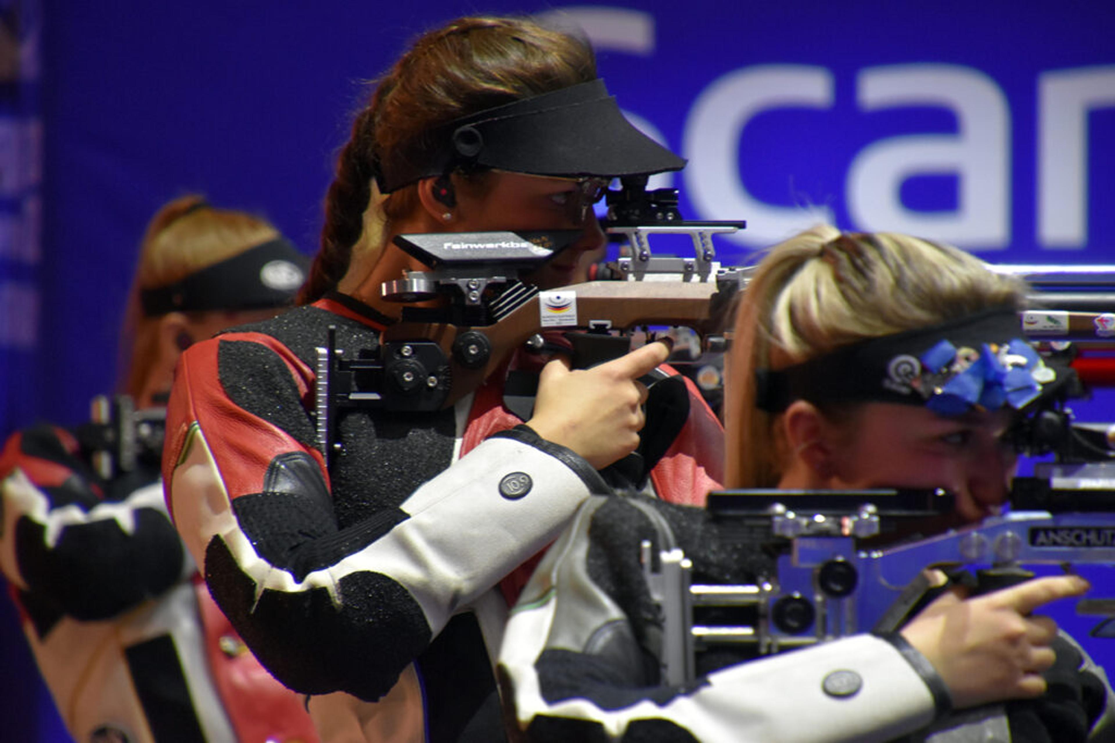 - Søndag 27. mars er det lagkonkurranse, med innledende skyting fra klokka 12.30 og finale cirka klokka 16.00. Det er tre skyttere av samme kjønn på hvert lag, og hver nasjon kan stille med ett lag.