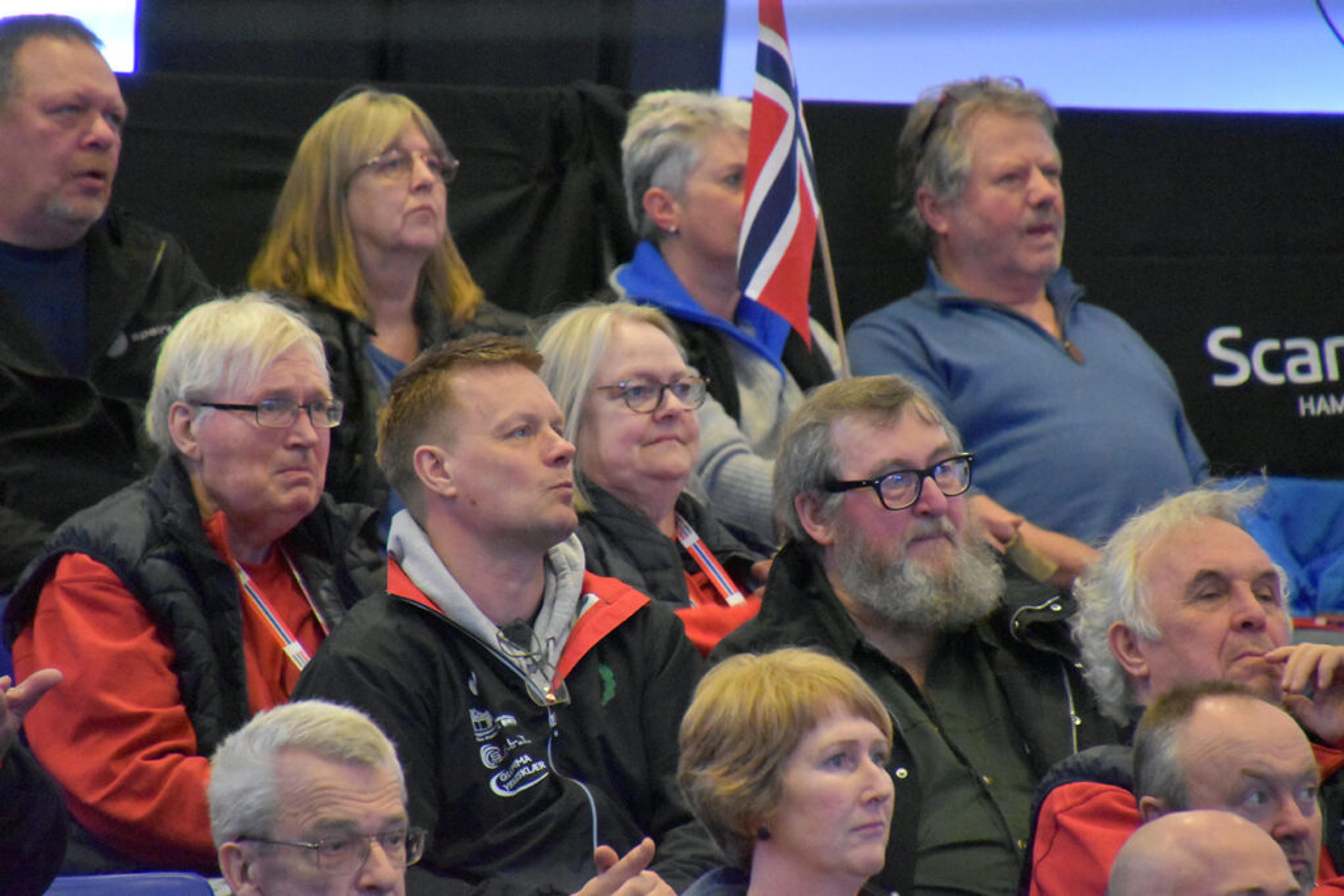 EM på hjemmebane betyr god støtte fra tribunen. – Det er en helt nydelig norsk gjeng som heier her, takk skal dere ha!, hilser Re-jenta via lokalavisa.