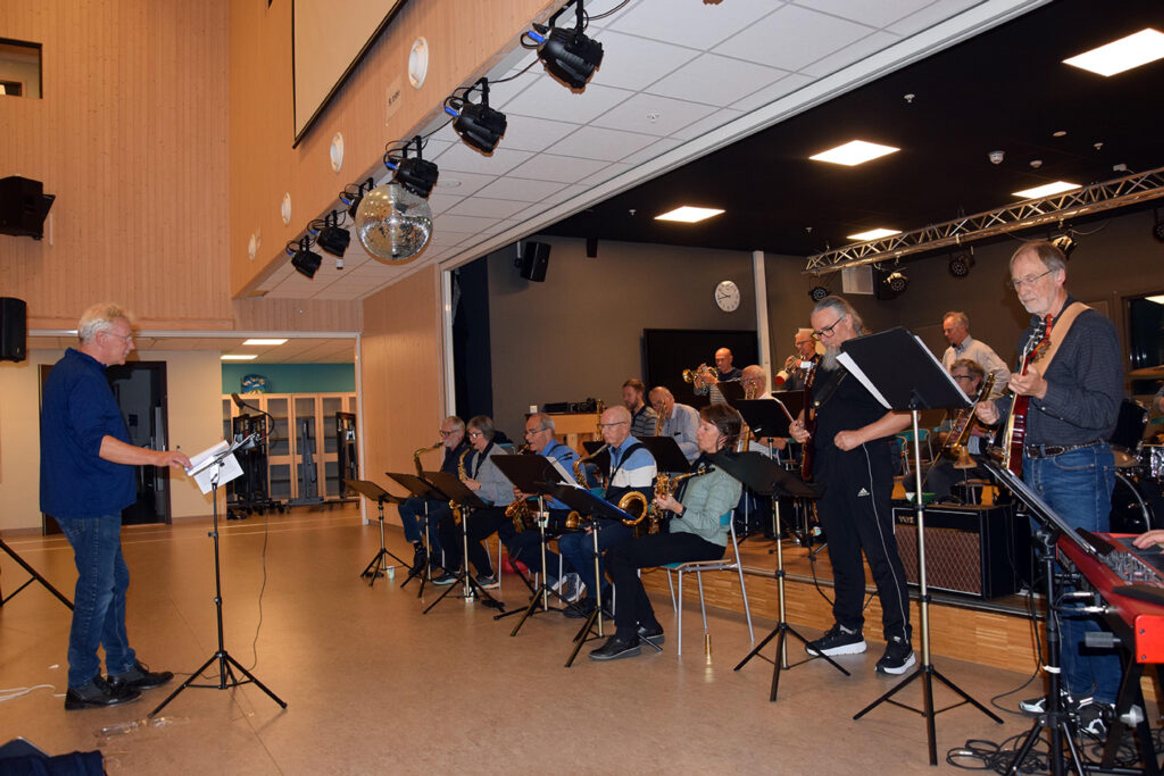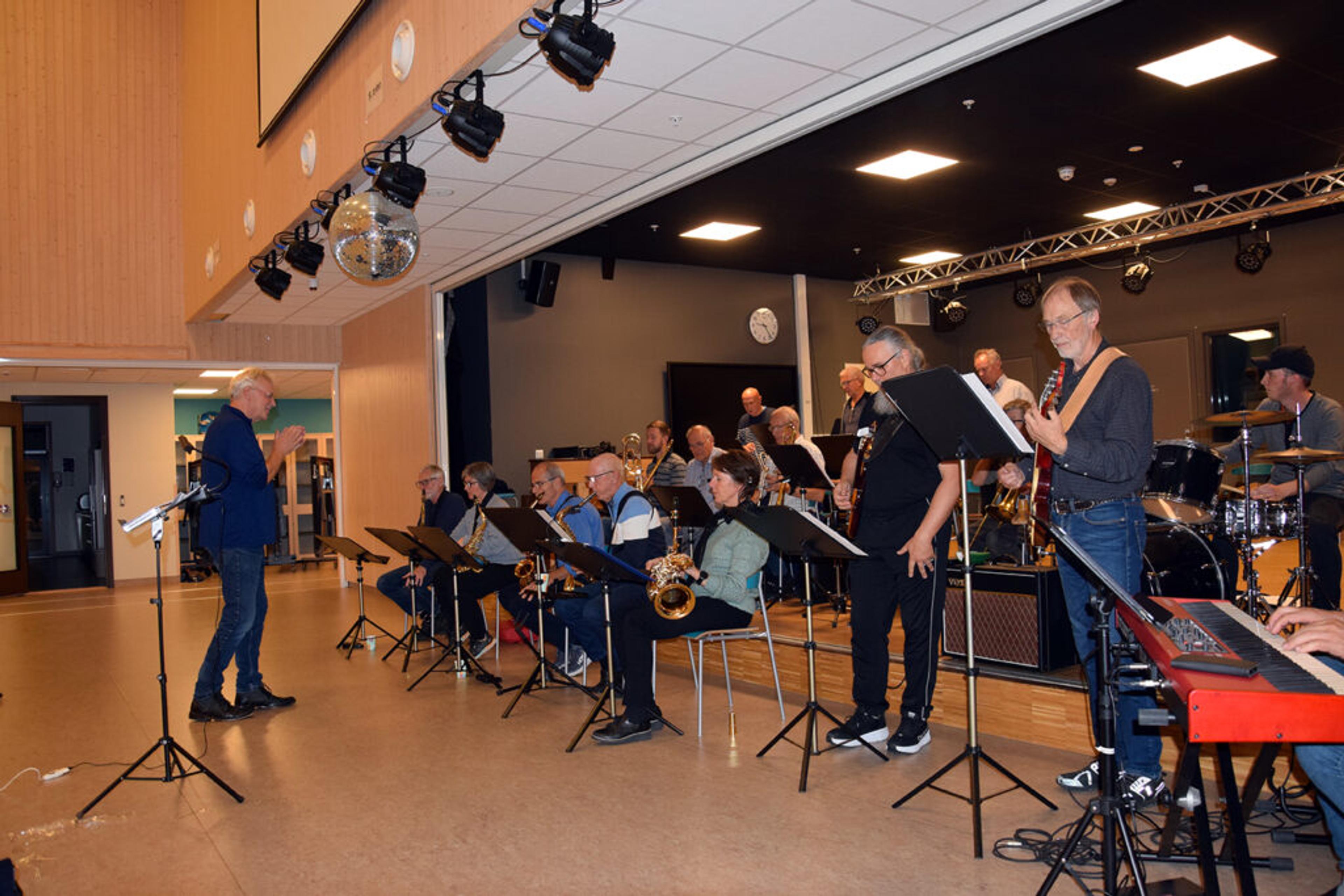 FULL FOKUS: Jens Wendelboe dirigerer Storbandet Fokus. I ei pause forteller han til ReAvisa at han liker det han hører fra bygdas storband. Foto: Håkon Westby.