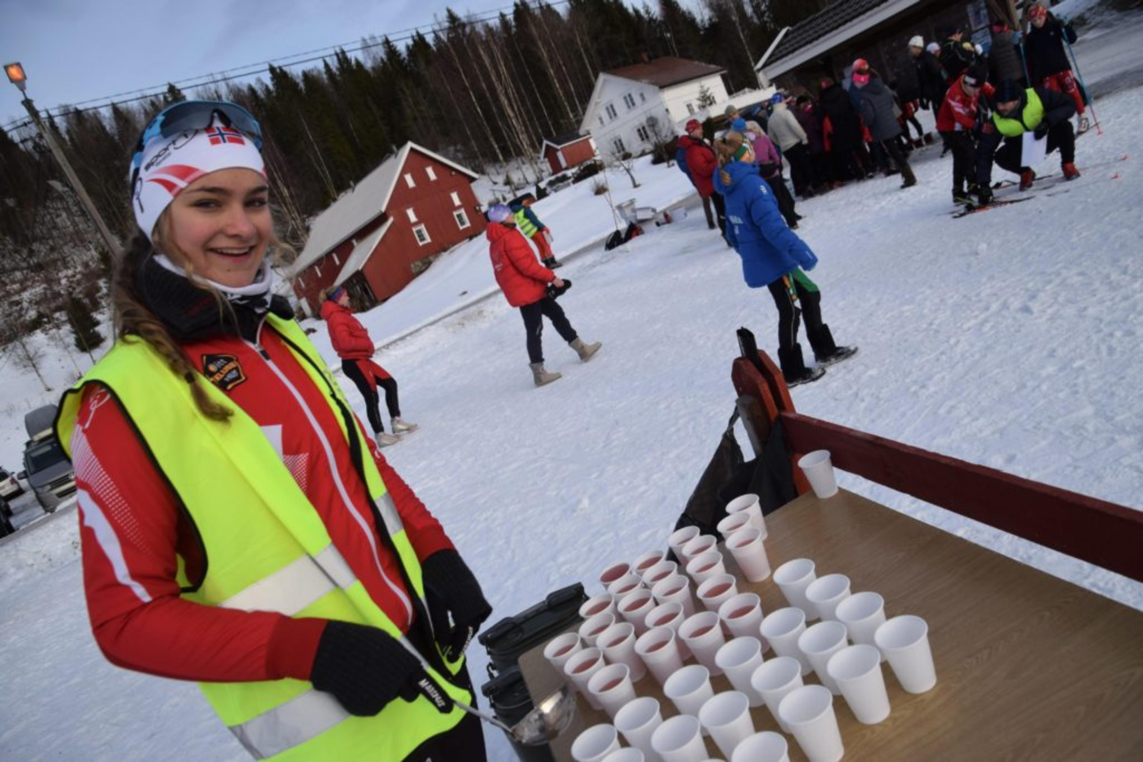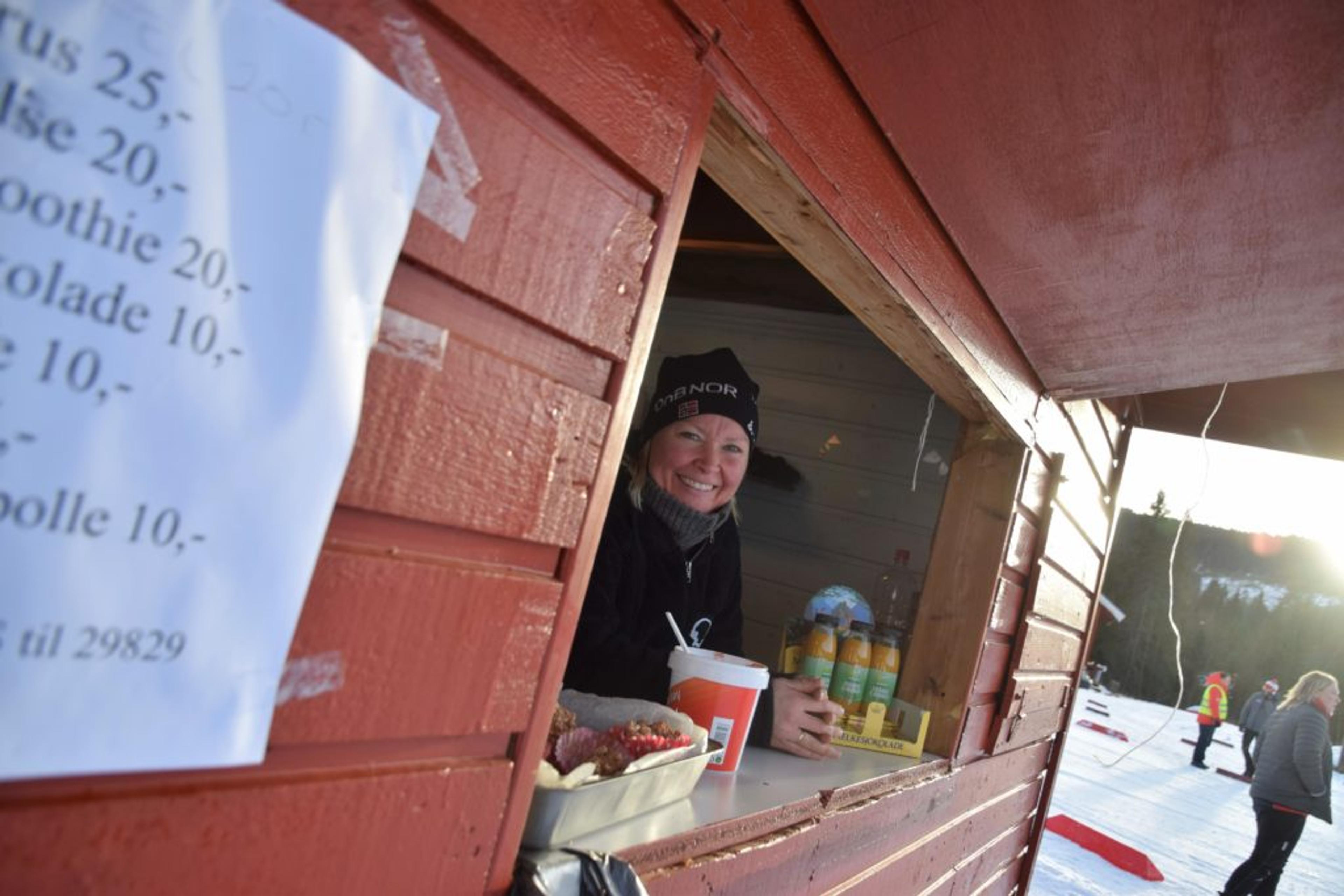 VÅTT OG TØRT: Camilla Husemoen sørger for servering til skipublikummet. Foto: Stian Ormestad.
