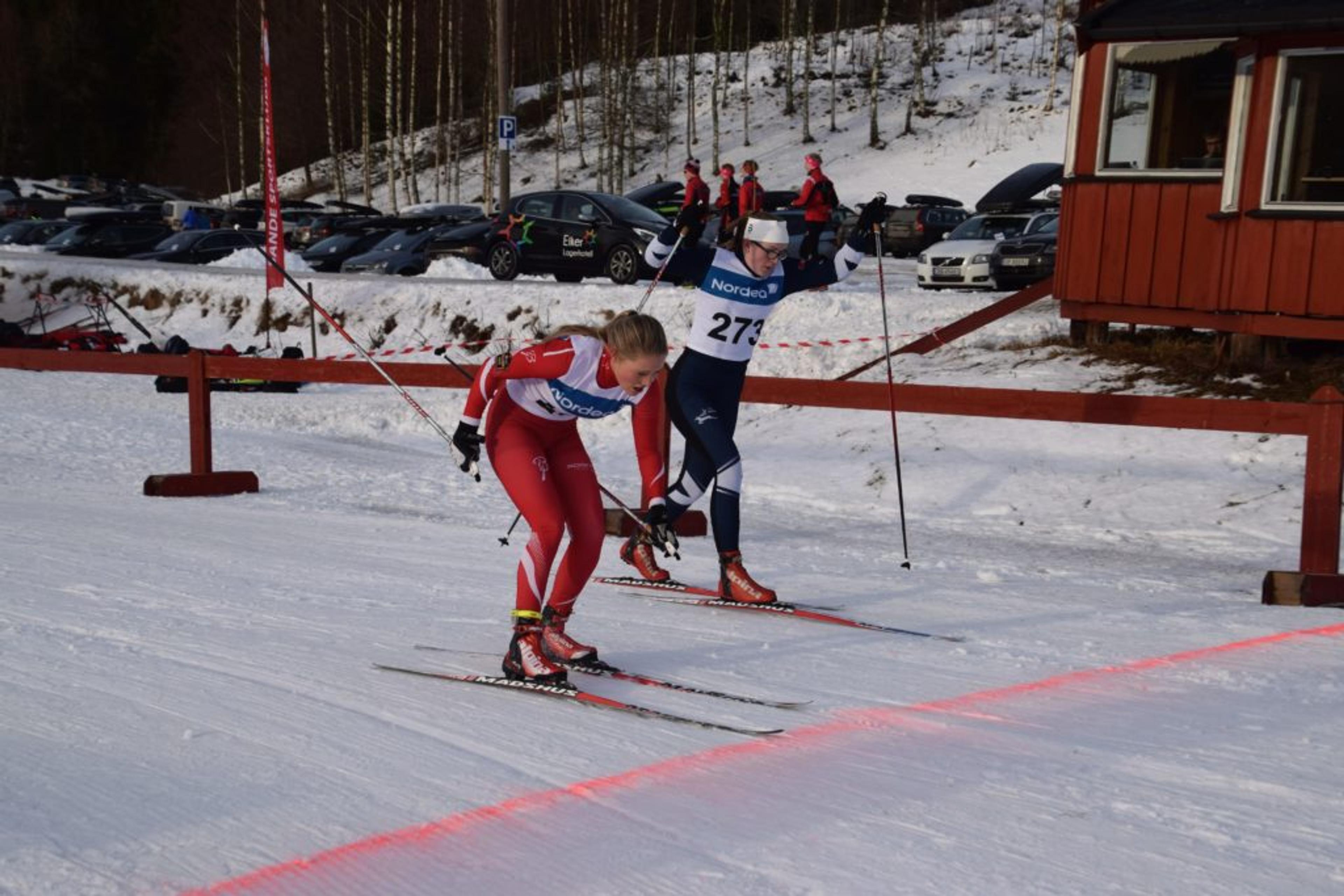 SPURTOPPGJØR: Henriette Olsen Kaale (18) leda fra start til mål – om enn med bare noen få centimeters margin over målstreken. Foto: Stian Ormestad.