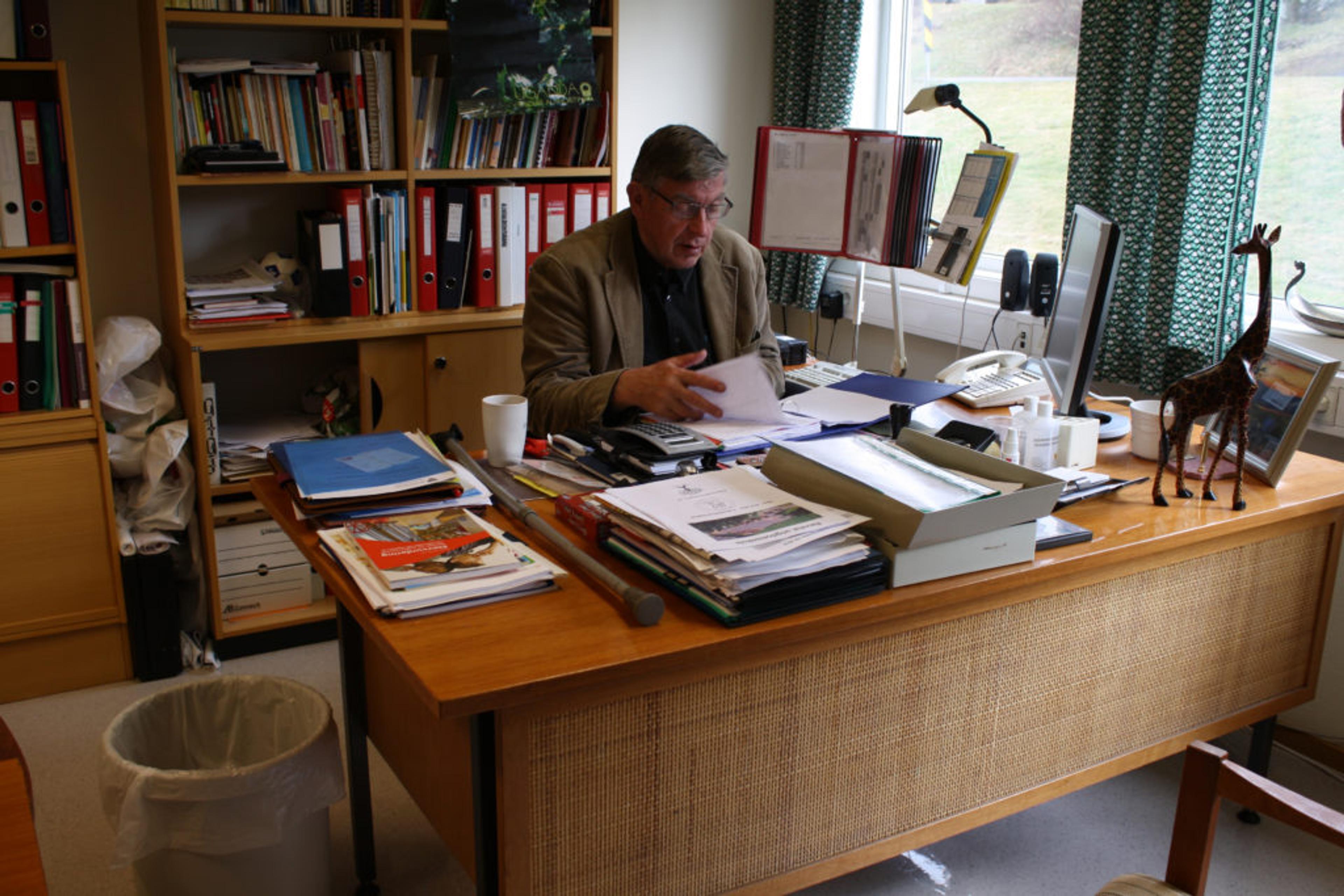 REKTORS KONTOR: John Pedersen var en skolesjef med autoritet – av den gode sorten. Bildet er tatt våren 2010. Foto: Synne Eggum Myrvang.