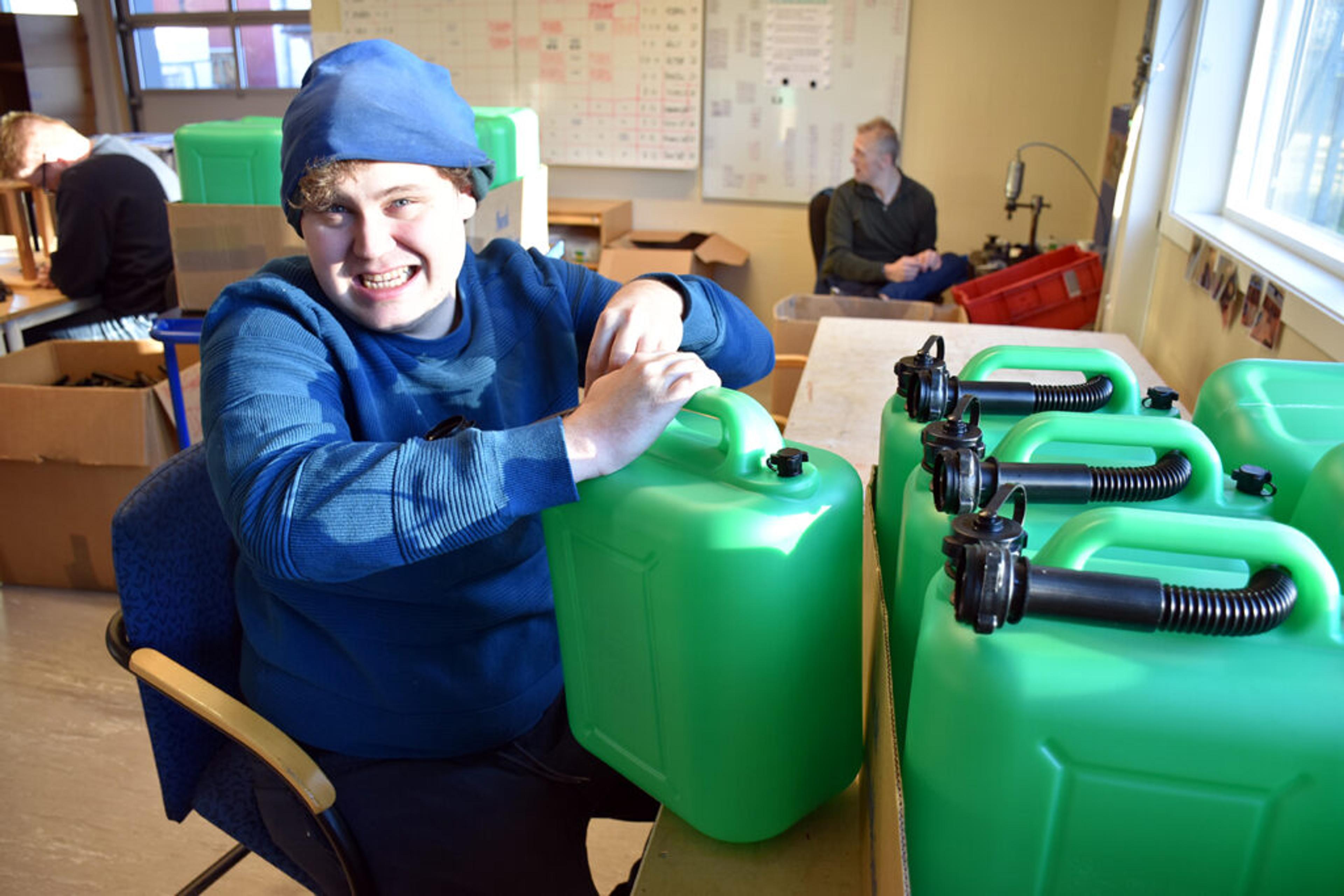 MONTASJEAVDELING: Jon jobber til daglig med å montere og klargjøre bensinkanner. TV-jobben gjør han gjerne mer av. Foto: Stian Ormestad, ReAvisa.