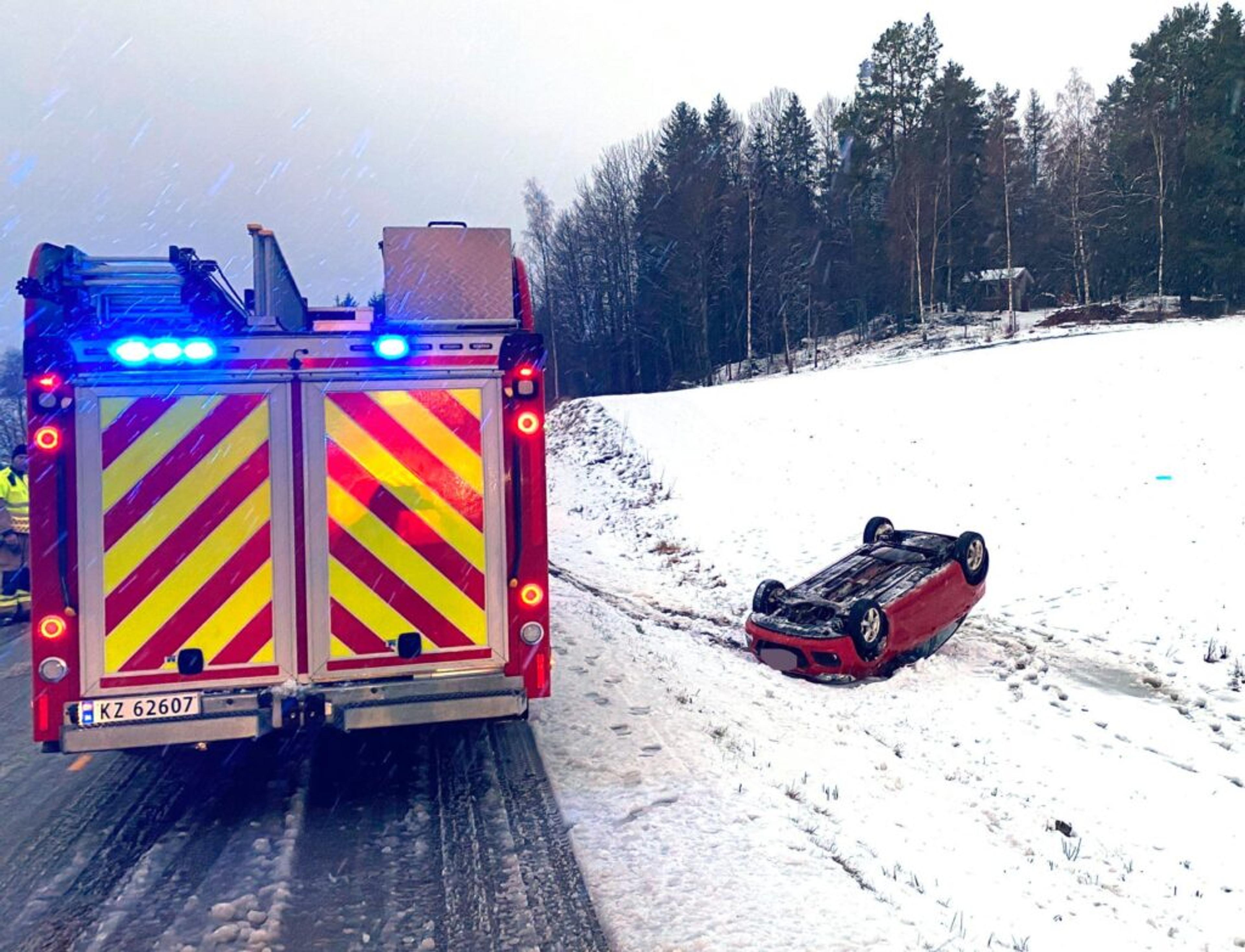 – Vi sikra skadestedet og bisto med bergingen av bilen. Fører var ute av bilen og ble tatt vare på av forbipasserende fram til nødetatene kom, fortalte brannmester Jardar Aftret.