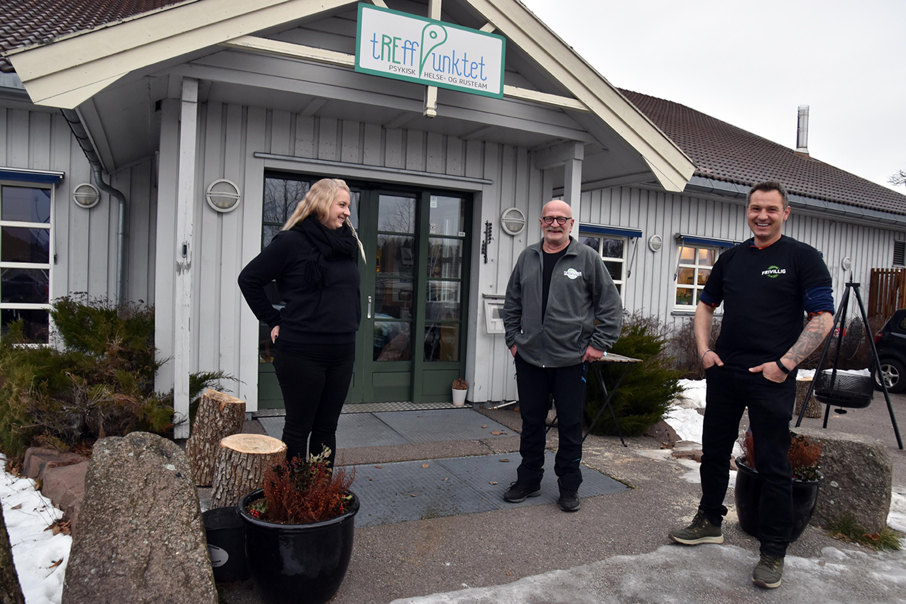BASE PÅ TREFFPUNKTET: June Gulliksrud, psyk. fagarbeider ved Treffpunktet aktivitetssenter på Brår, sammen med de frivillige som trekker i trådene Svein Arne Borgen og Torbjørn Brunstøl. Dugnadsjobben gjøres av de mange frivillige på Treffpunktet på Brår. Foto: Stian Ormestad.