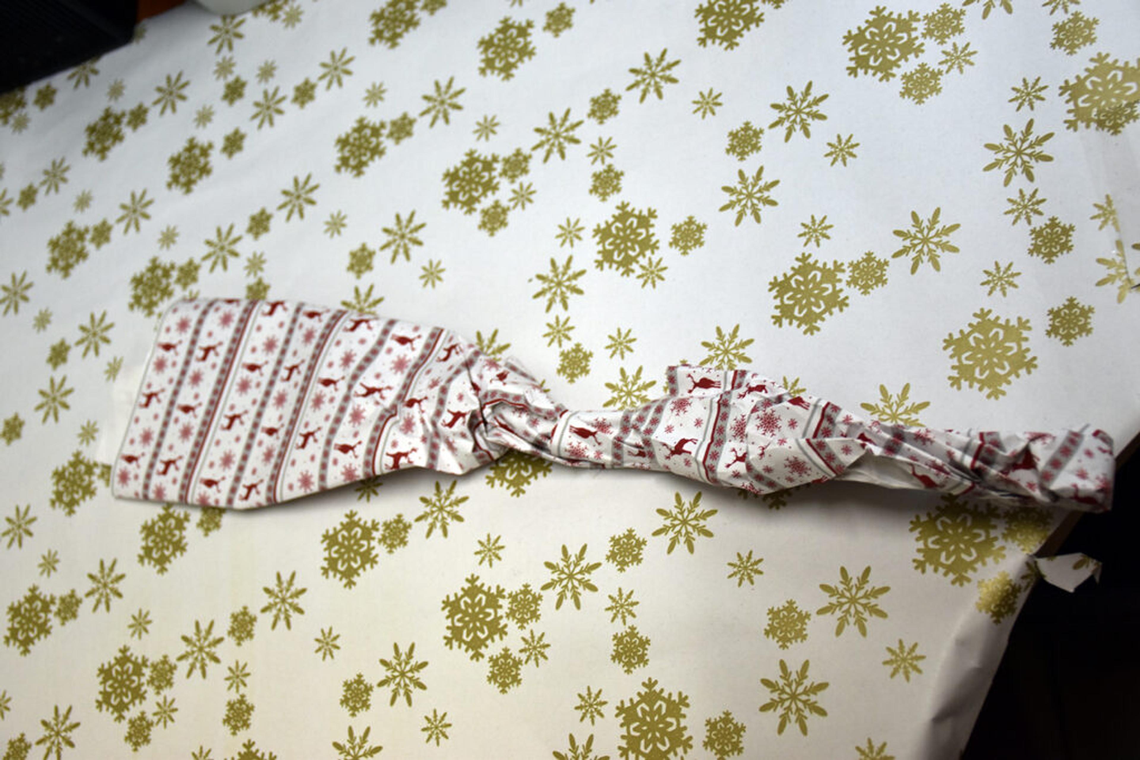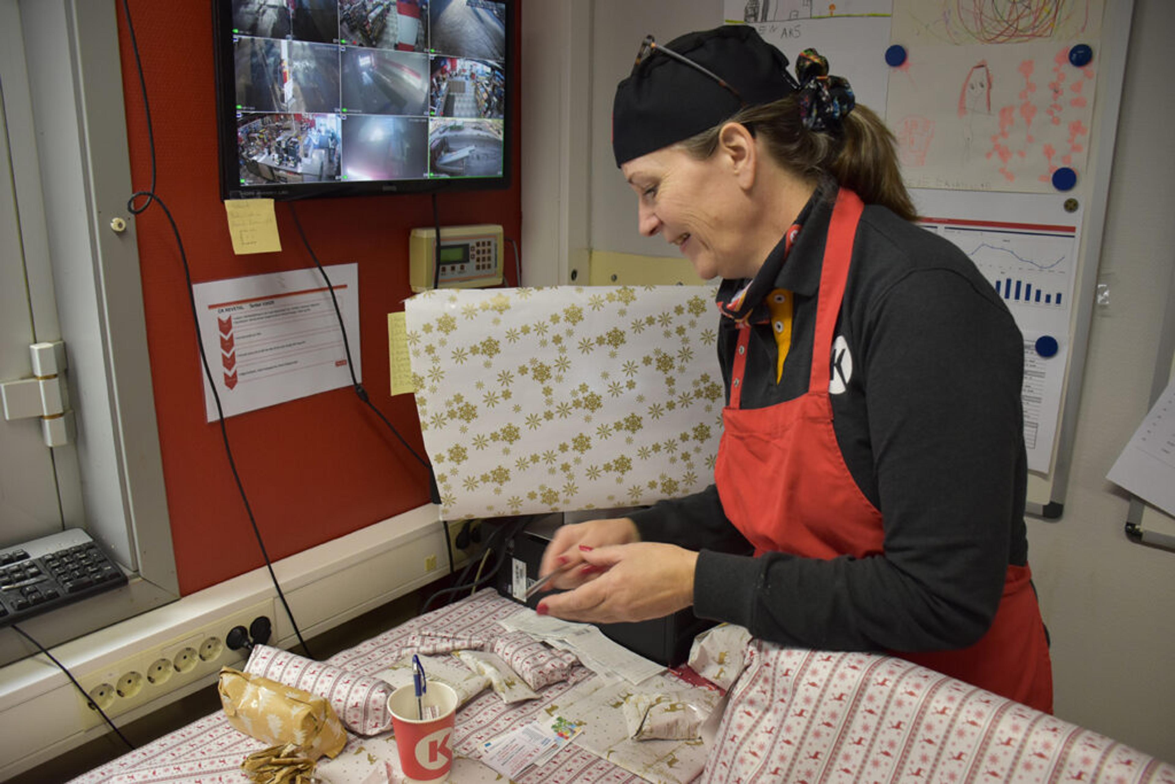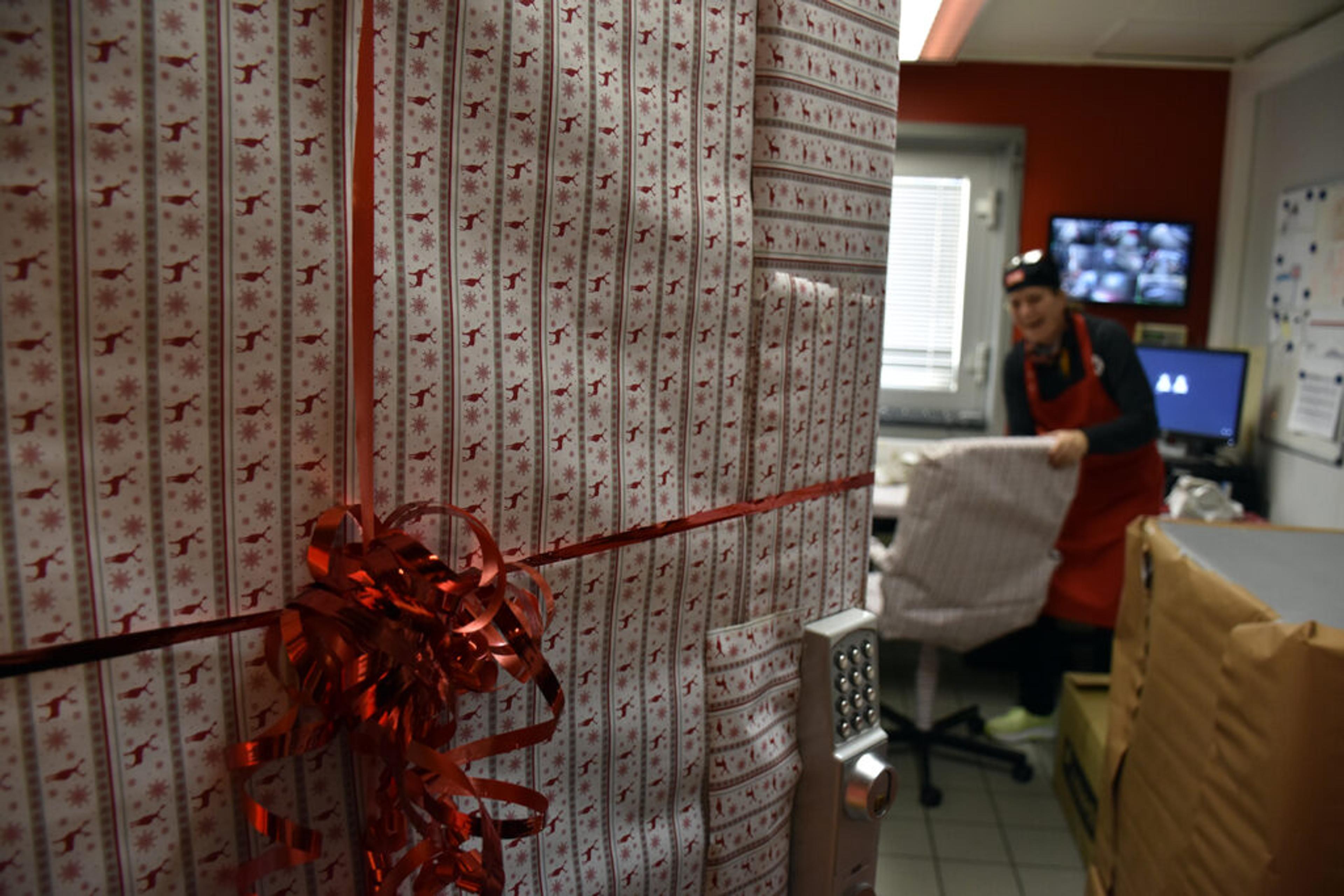 Til og med fluesmekkeren er pent pakka inn. De ansatte har vært fire stykker i flere timer av fritida si for å få til denne imponerende innpakninga. Foto: Stian Ormestad, ReAvisa.