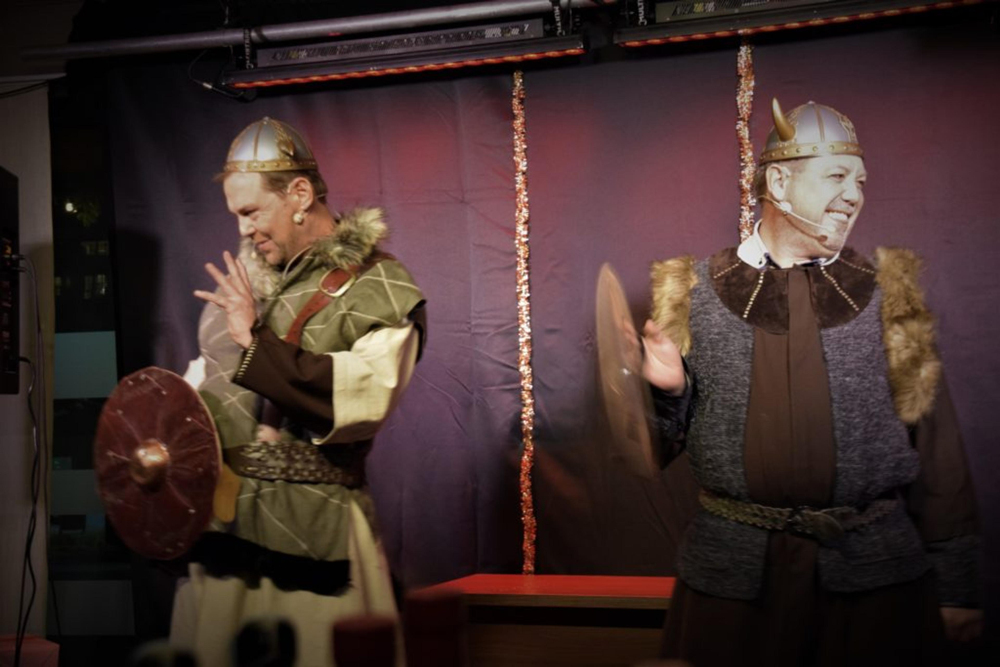 MIDDELALDERMENN: Fjorårets kanskje aller beste nummer var de skeive middelaldermennene – og de kommer innom Revetal før jula i år igjen. Foto: Stian Ormestad.