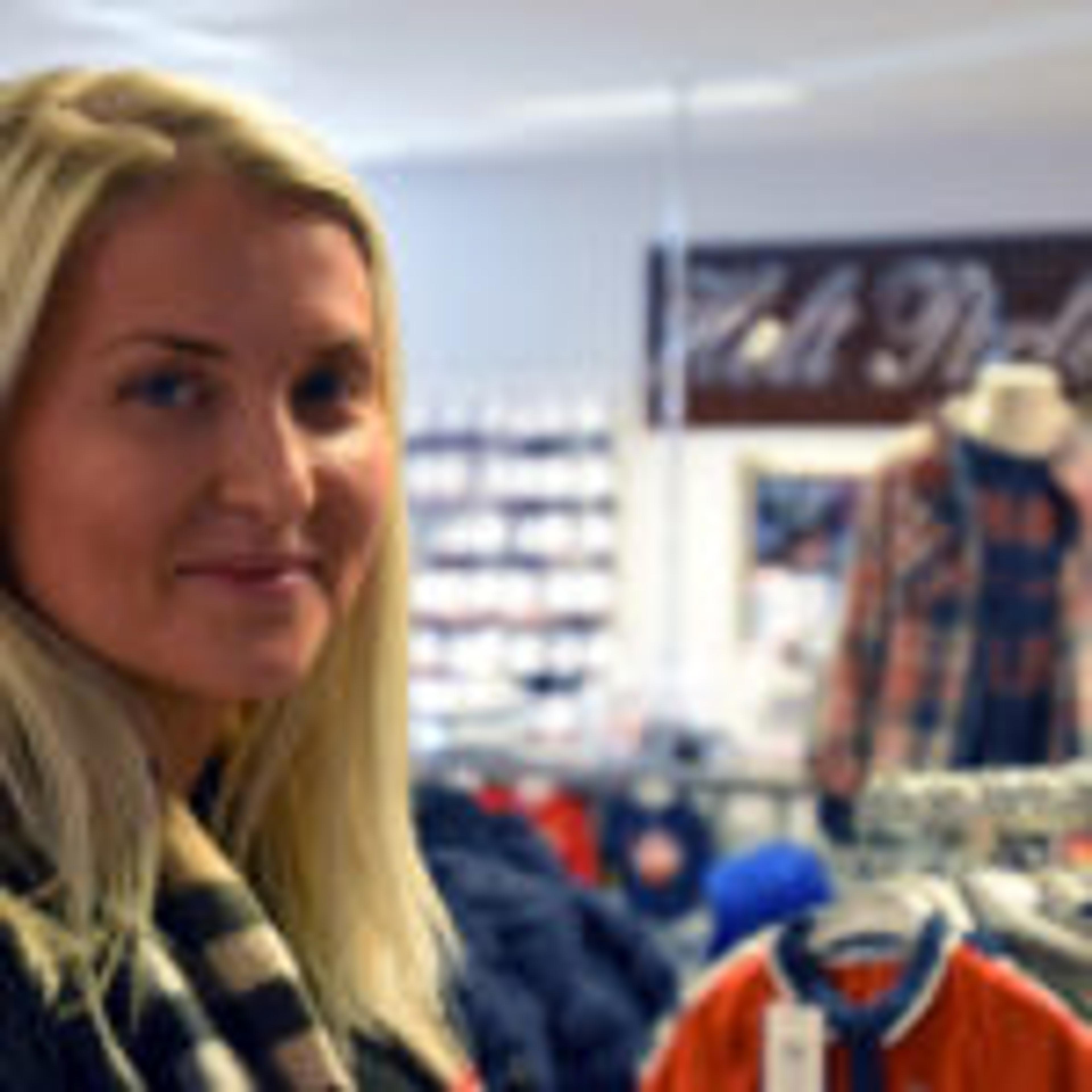 TAR I MOT GAVER: Kine Schjølberg Tronrud tar i mot gaver i barneklær-butikken “Helt perfekt. Foto: Stian Ormestad.