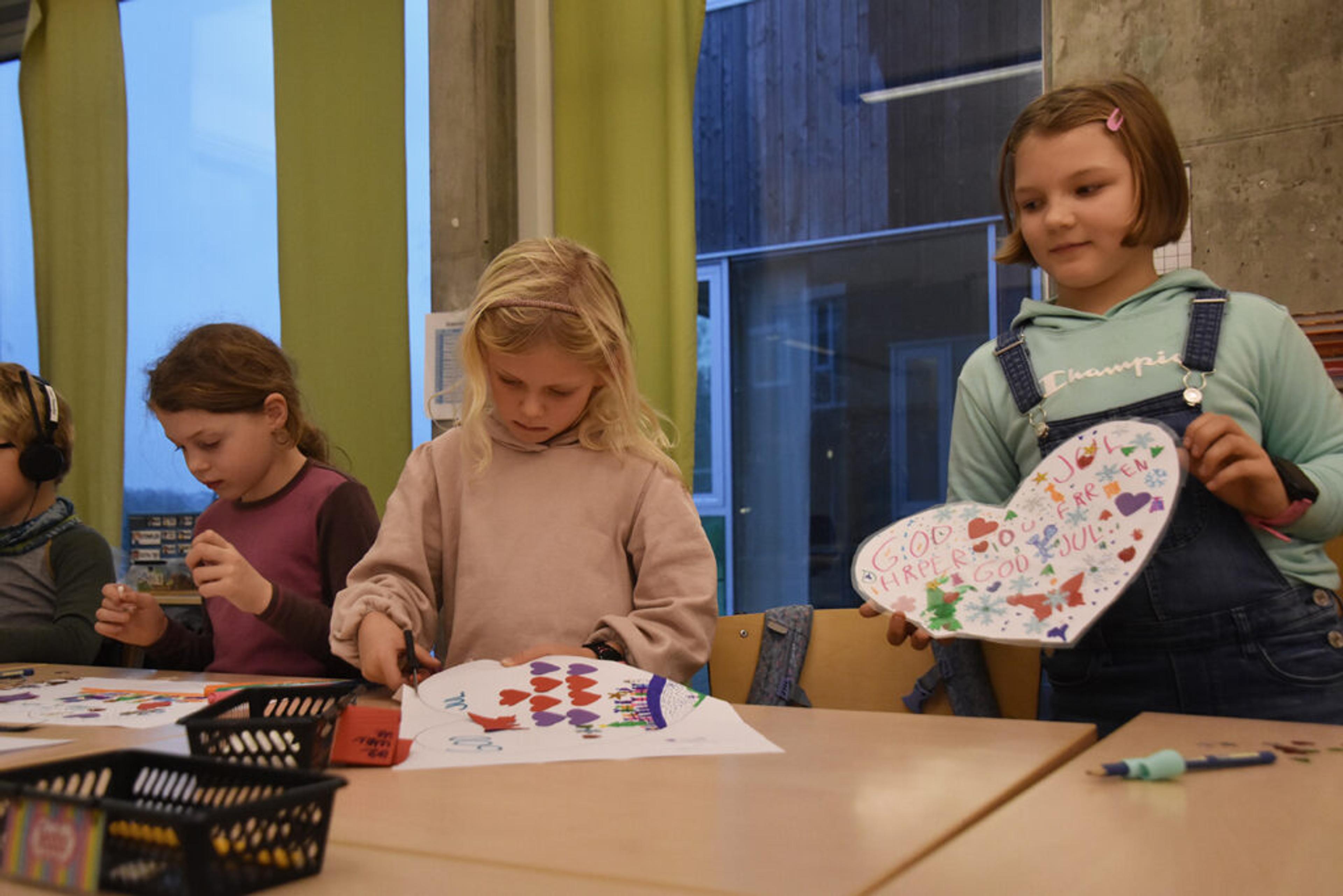 Det sier Tuva (9), Mathilde Oline (9) og Ida (9) i 4. klasse på Røråstoppen skole til ReAvisa. De har gjort ferdig sine hjerter, og lurer på om de skal lage enda ett.