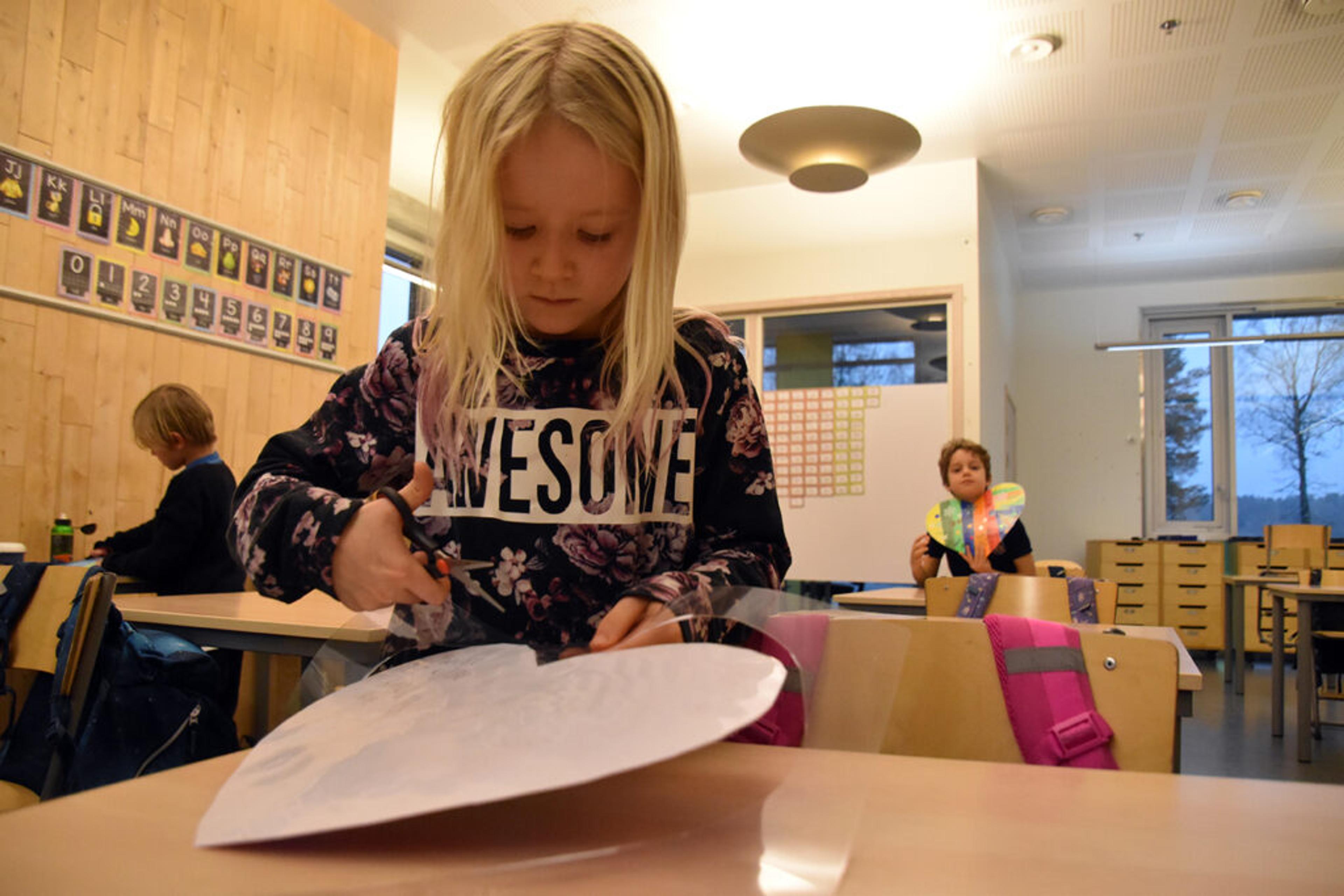 Barnehagene får ferdig utskjærte hjerter av sponplater, det har ikke skoleelevene fått – så da «tager man vad man haver»: