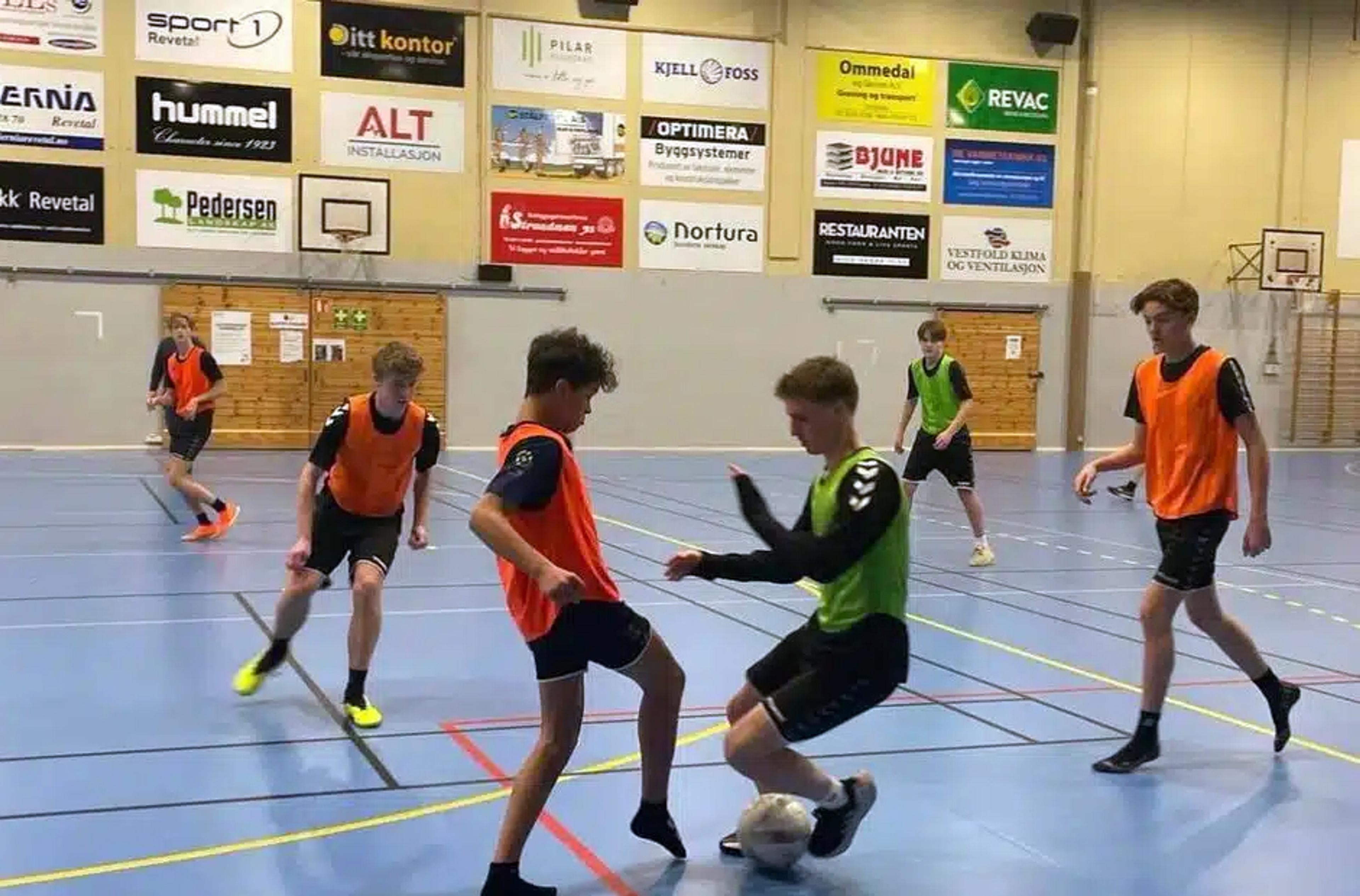 SÅ BLE DET FOTBALL – LIKEVEL: Re FKs G16-lag sørga for en liten uhøytidelig turnering inne i Ramneshallen. Foto: Privat.