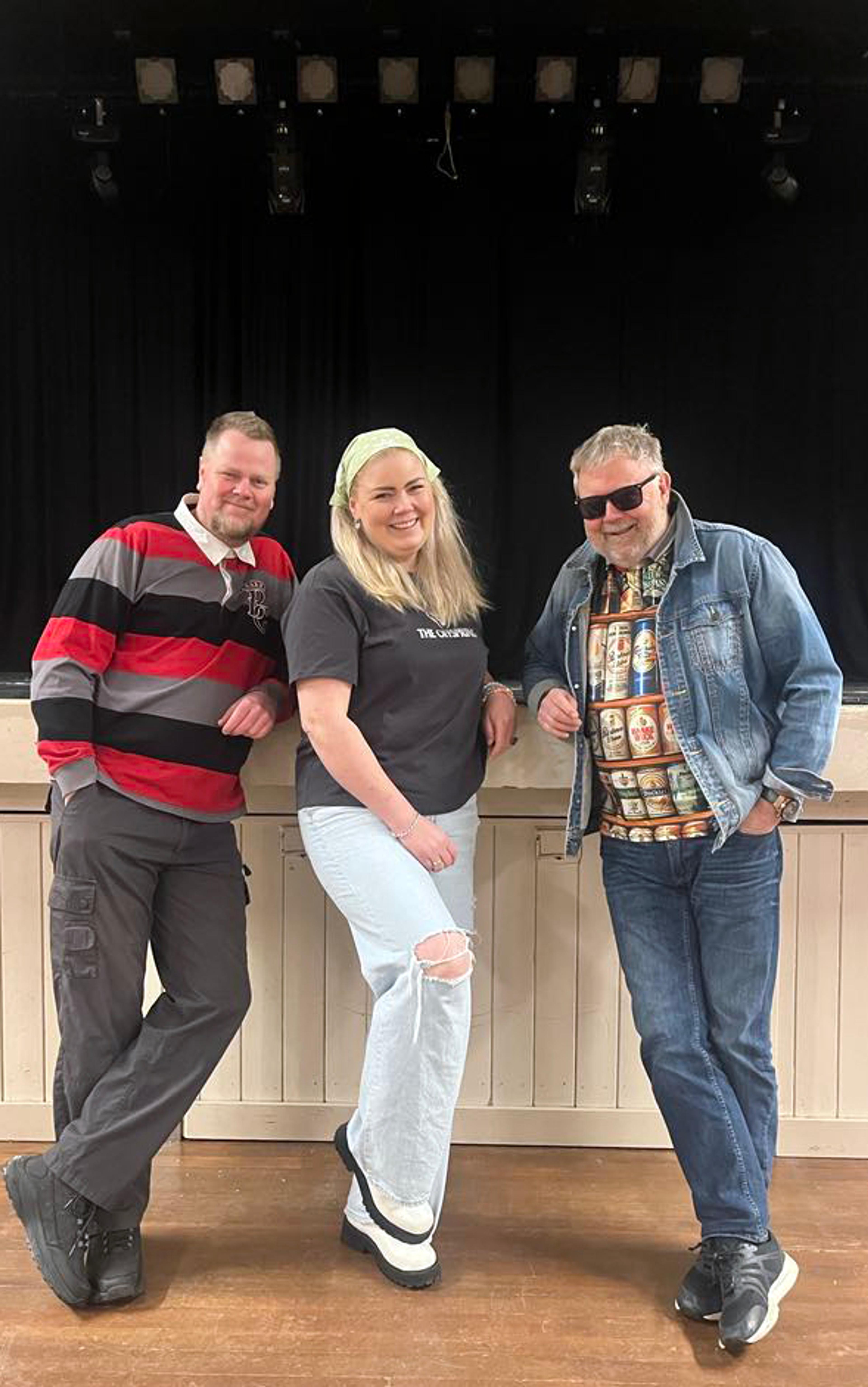 SPINNER PLATER: Bengt Kenneth Ivarsson og Pål-Arild Thuve Simonsen lover å sprenge mimre-skalaen. Anniken Thuve Ivarsson i midten gleder seg til kul musikk, kule klær og kule folk – akkurat som det alltid har vært på disko på Fjellborg. Foto: Privat.