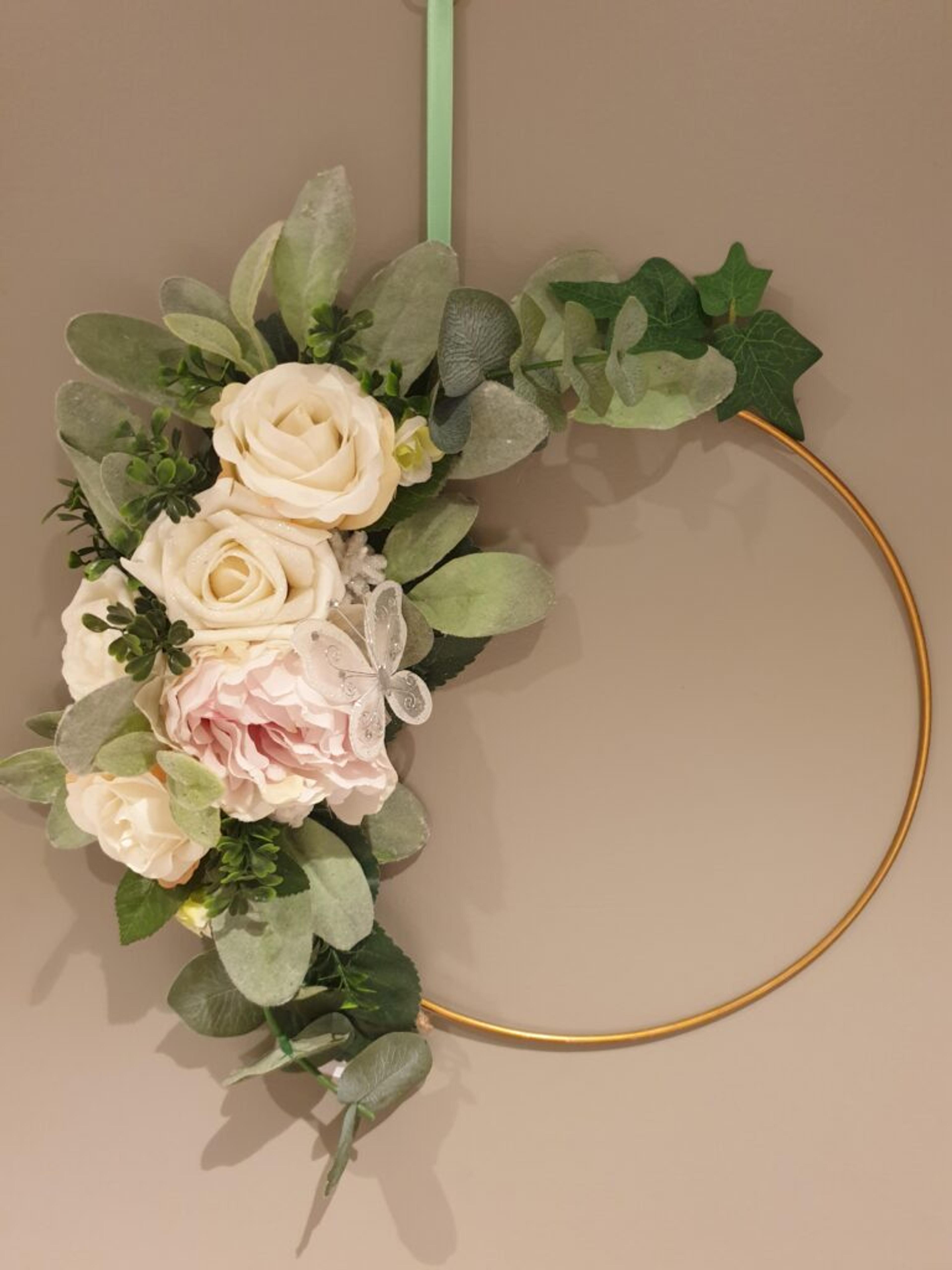 Tida det tar å lage en krans varierer, men det kan ta opptil fem timer. Inspirasjon henter hun fra pintrest, som hun nå har runda for alt som er å se av kranser.