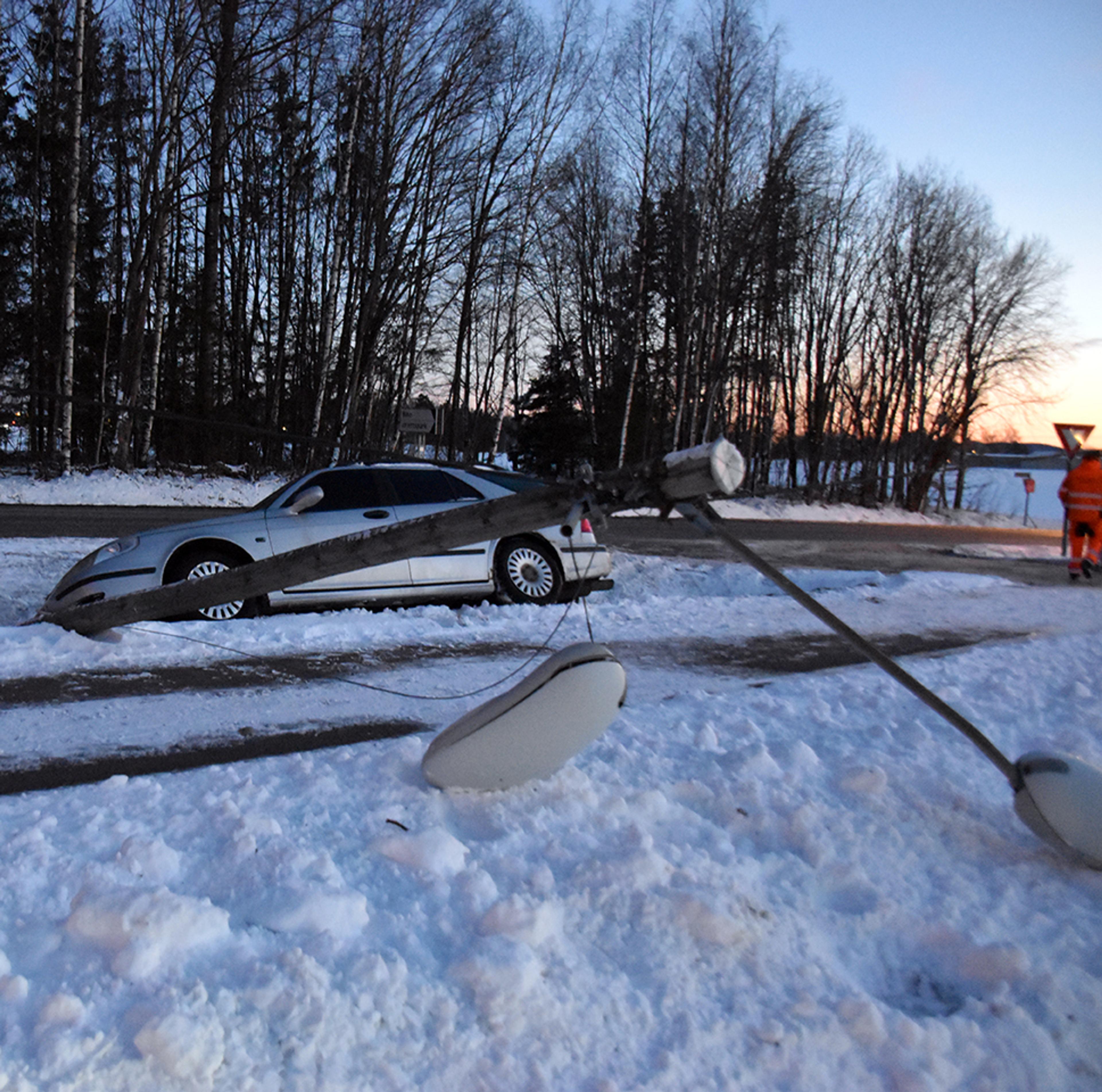 Verken stolpe, lys eller ledninger har ramla i hue på noen. Han skal ha sleppi unna uten en eneste skramme.