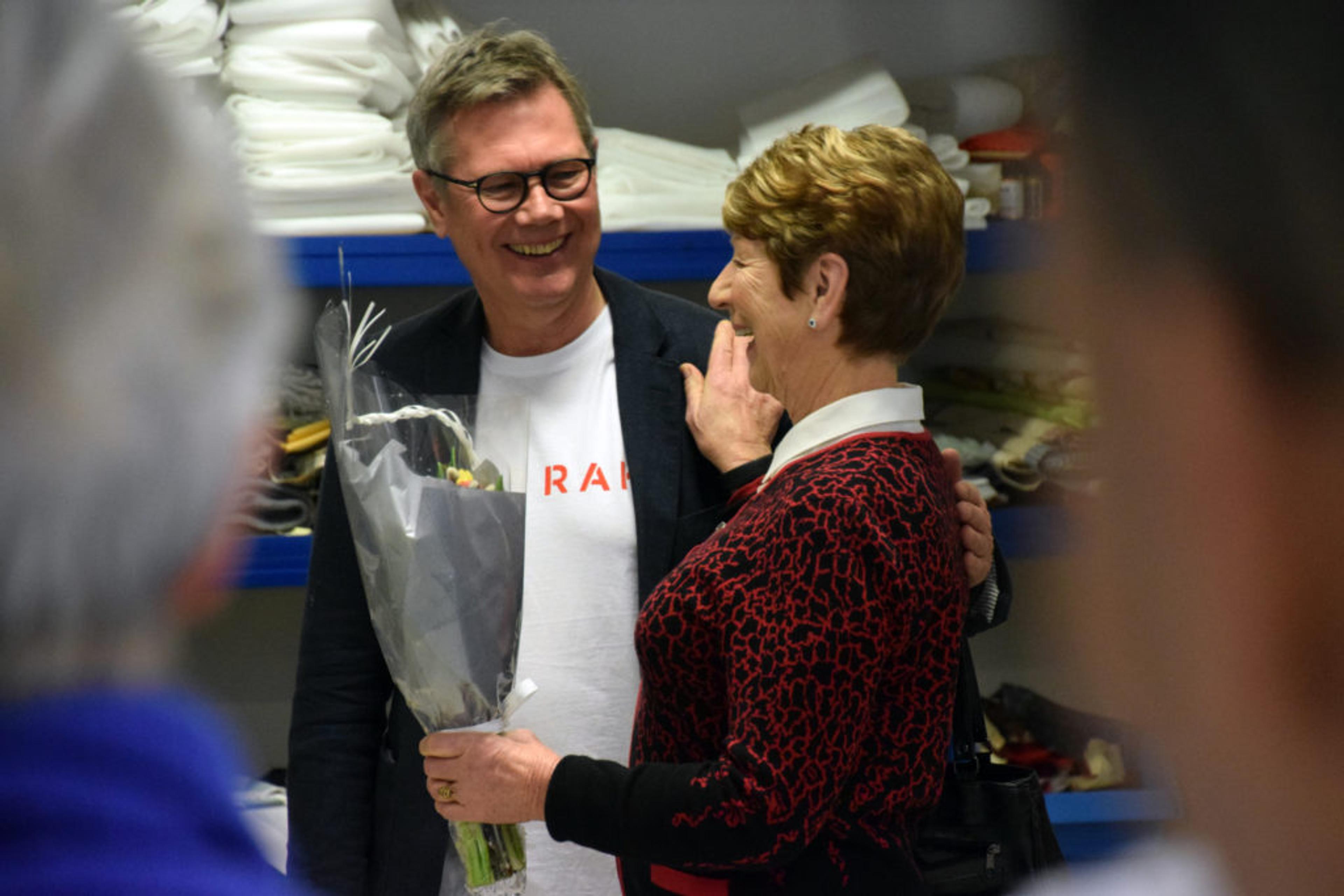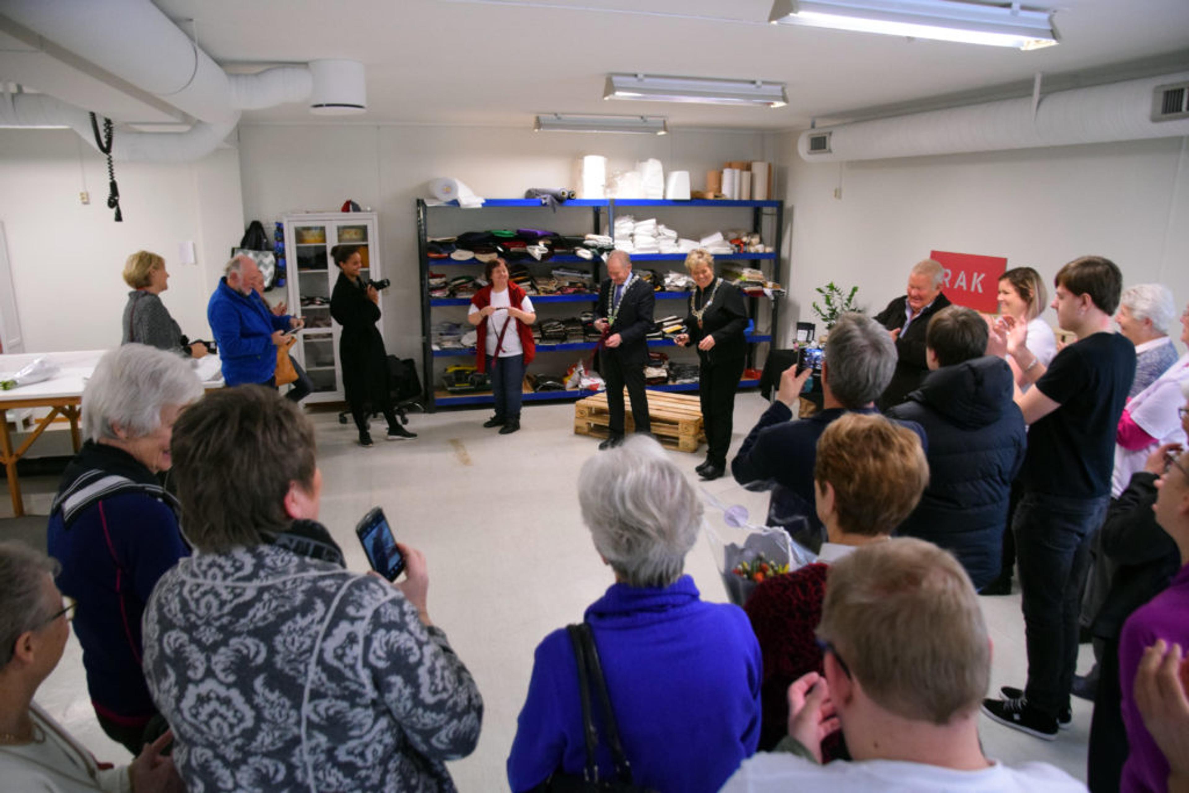 Blant gjesten var representanter fra Våle pensjonistforening, som fikk overrakt blomster for god innsats for lørdagsjobbing på RAKs butikk på Brår «Olgars».