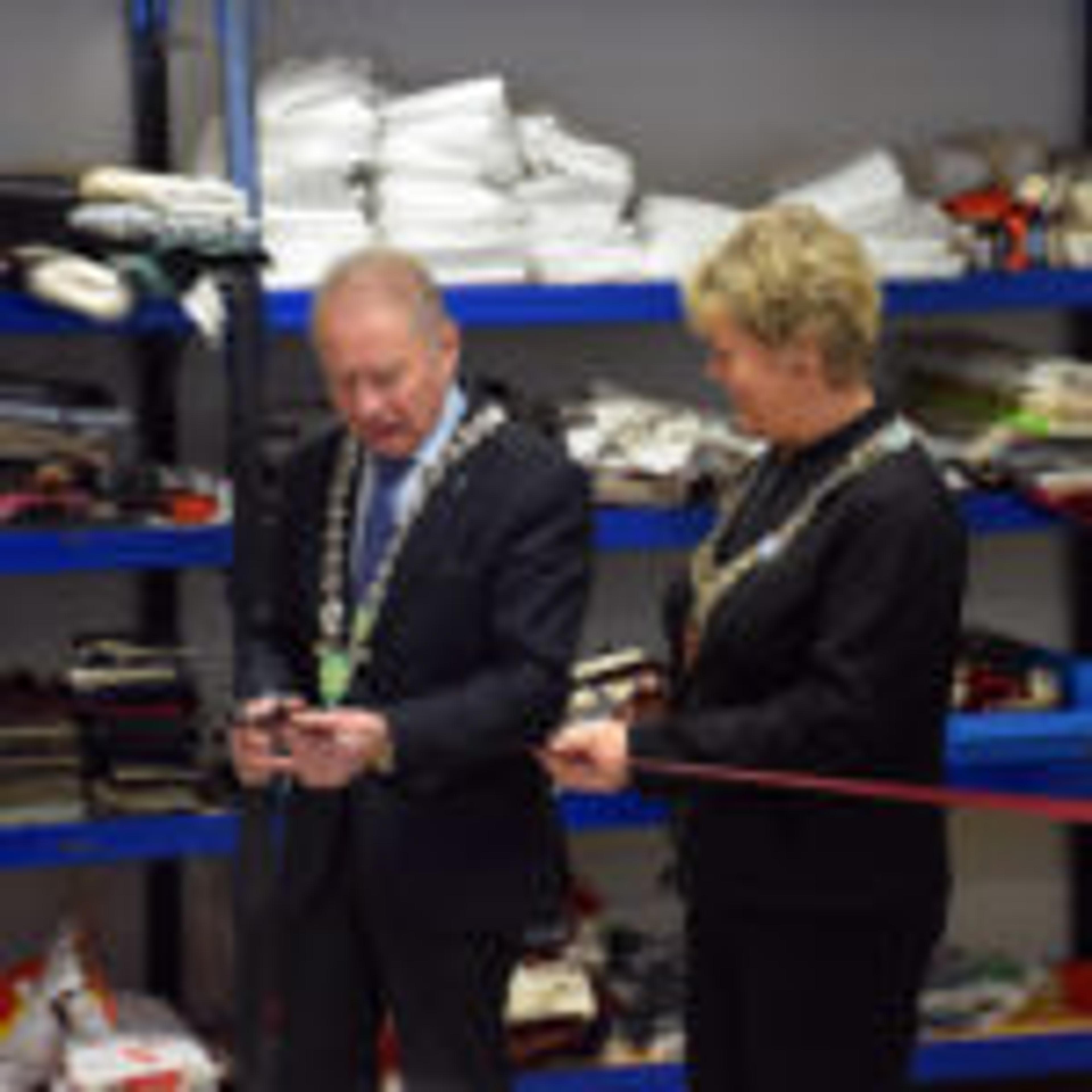 SNORKLIPP: Re-ordfører Thorvald Hillestad og Hof-ordfører Mette Måge Olsen er samkjørte og klipper snora på likt for nye RAK – Revetal Arbeid og Kompetanse. Foto: Stian Ormestad.