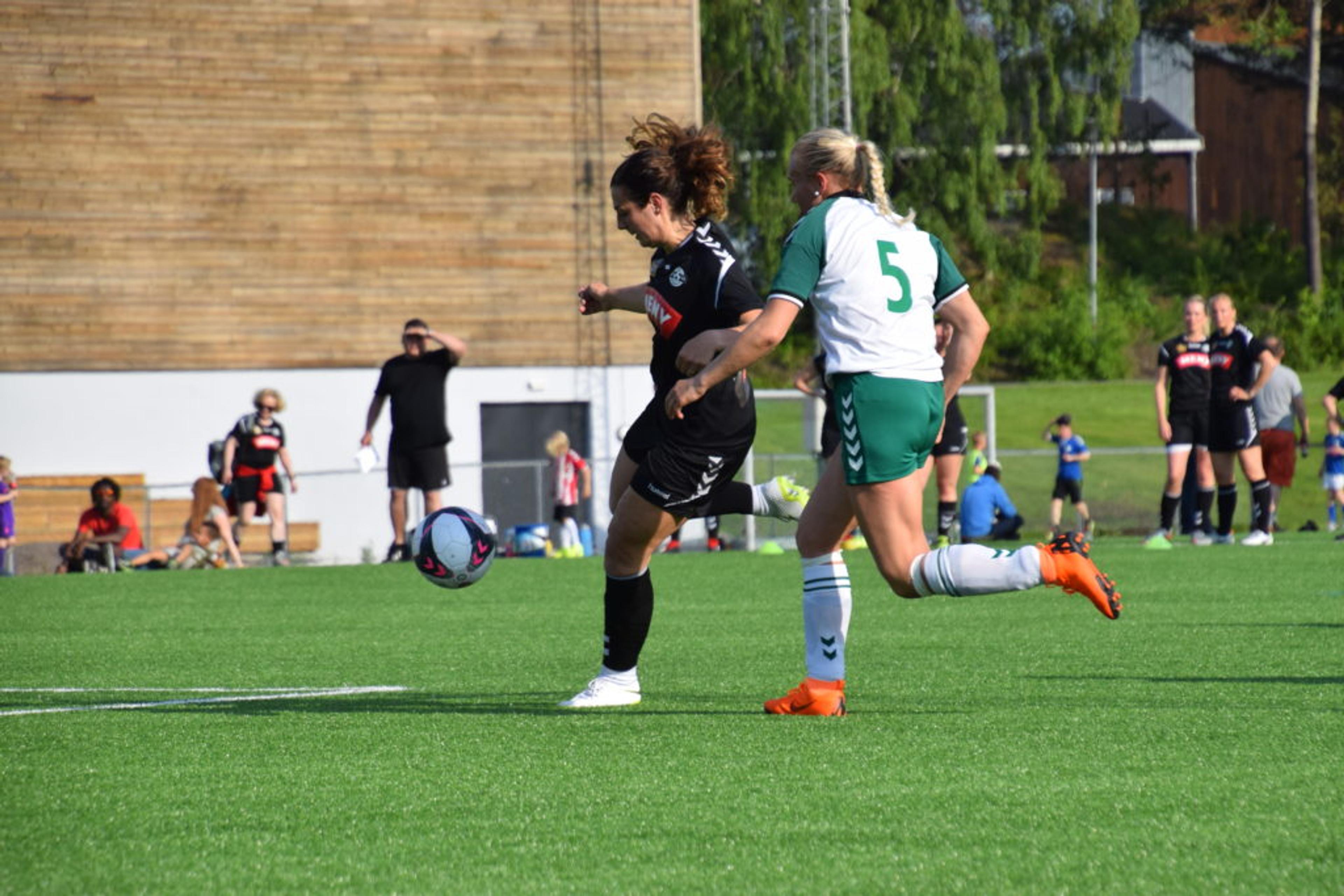 MÅL! Eva Kristin Bonde setter her spikeren i kista med 2 – 0-målet. Foto: Stian Ormestad.