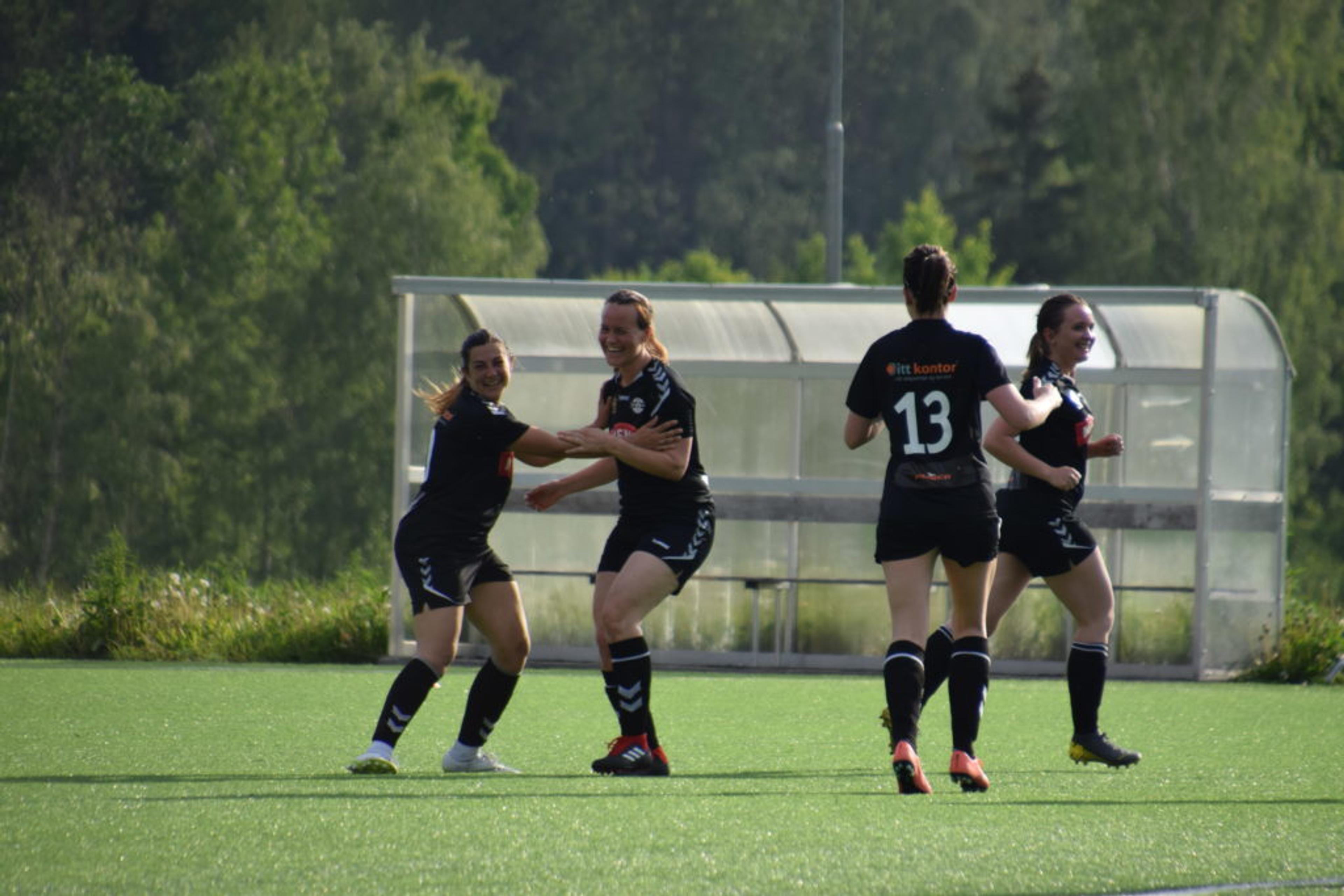 SEIER! Re-jentene jubler over hjemmeseier over Stag. Helle Isaksen scora det første målet. Foto: Stian Ormestad.