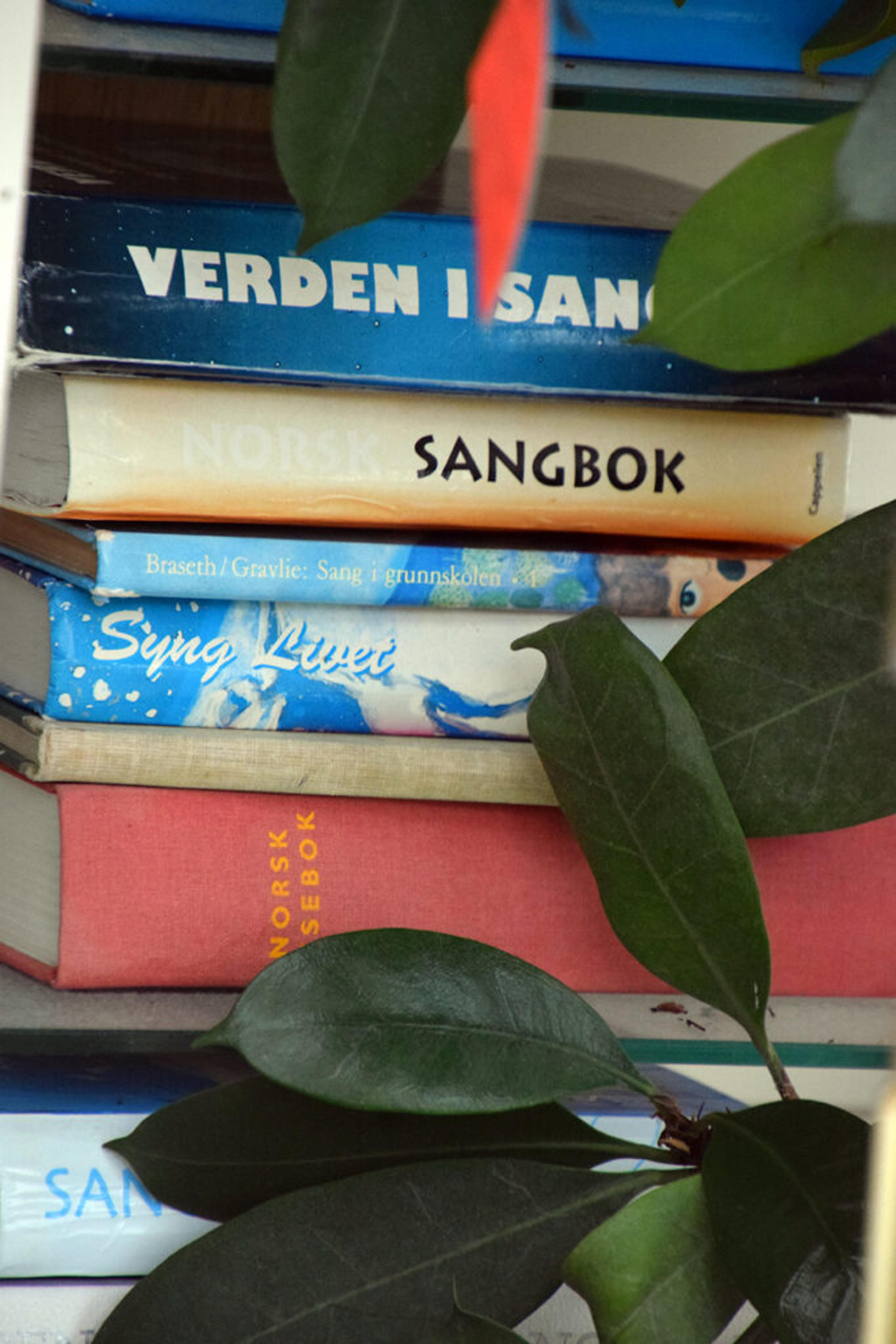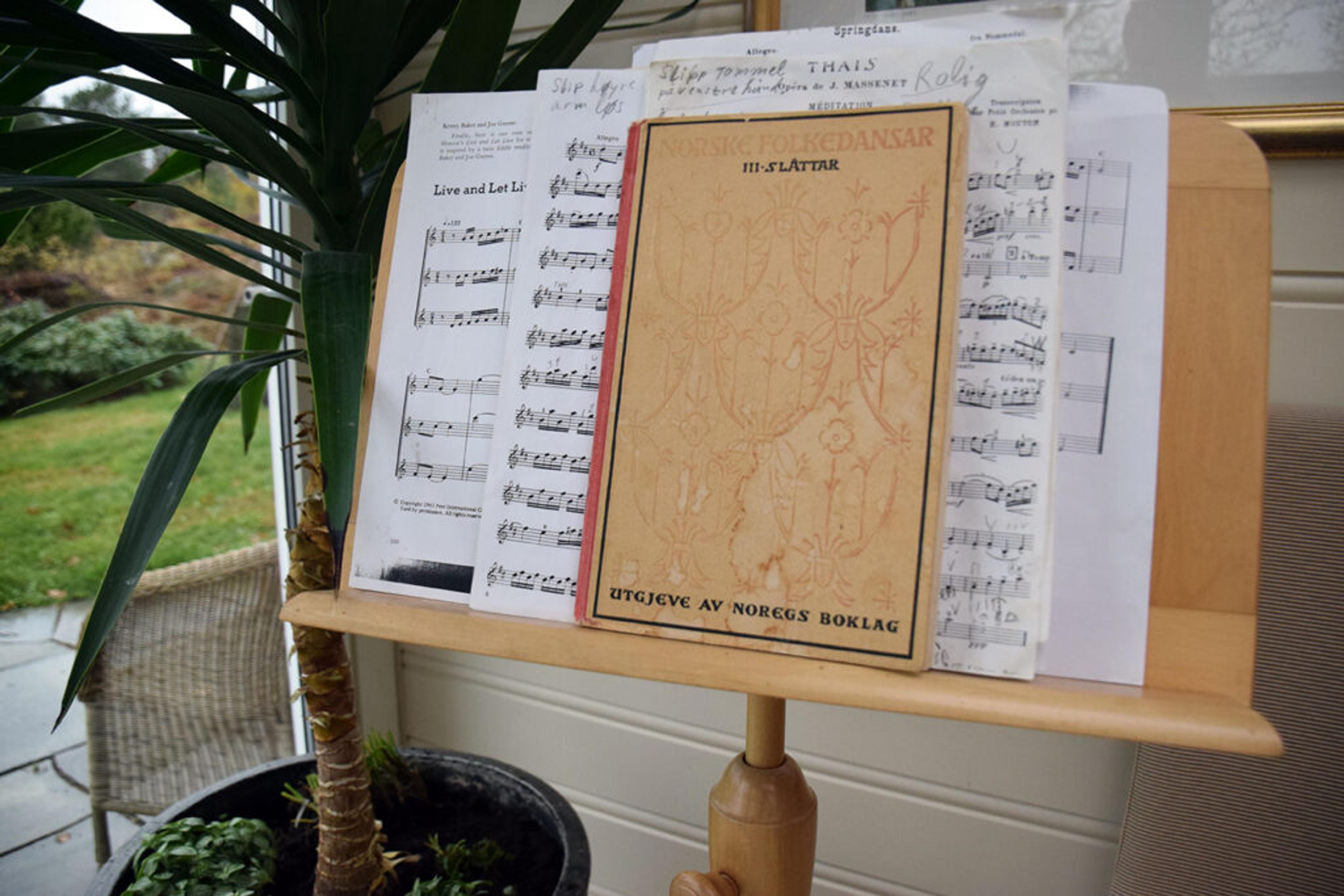 SANG OG MUSIKK: – Hele livet har jeg vært opptatt av det, forteller Knut. Hobbyrommet hans bærer tydelig preg av det. Foto: Stian Ormestad.