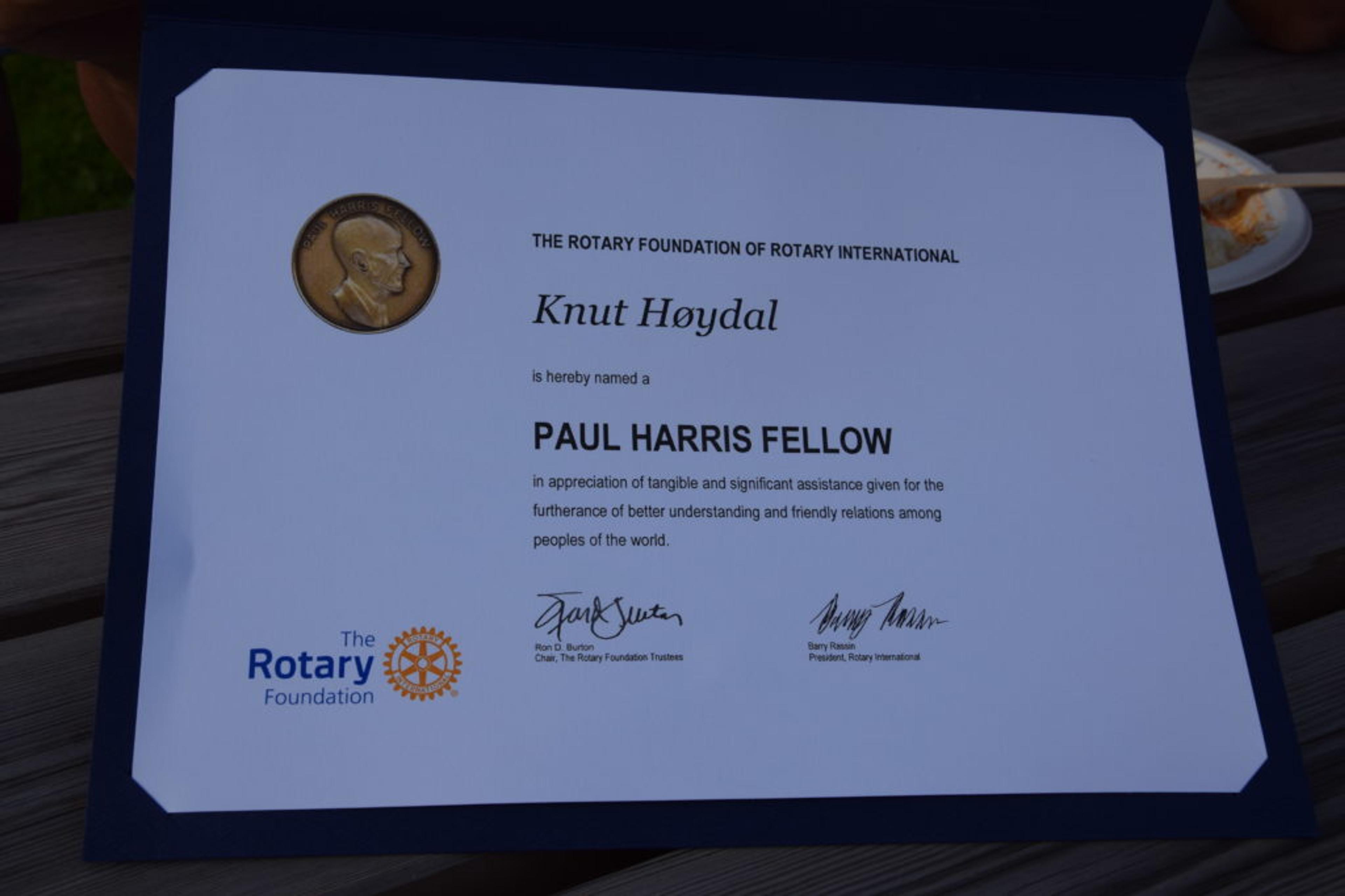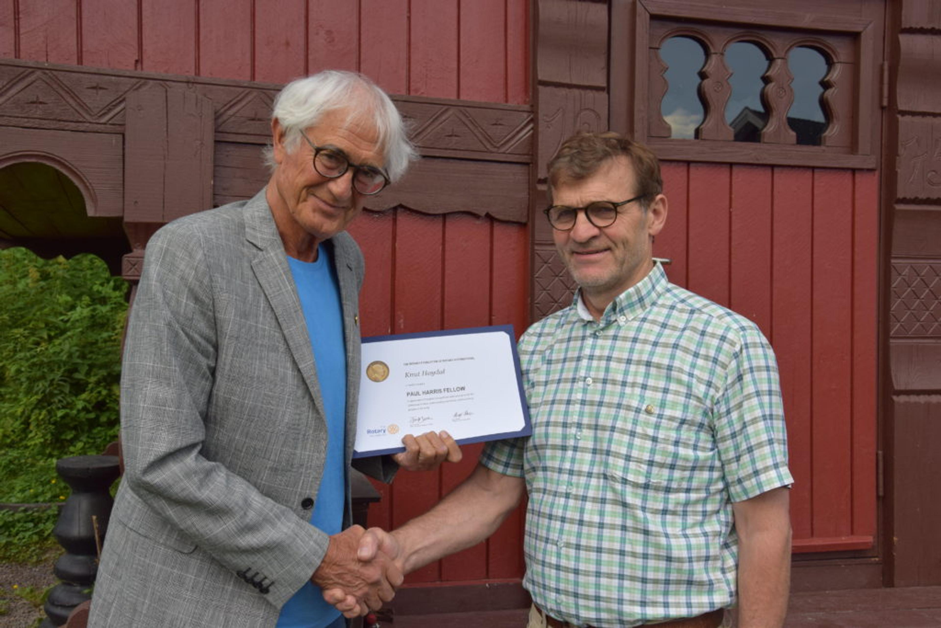DIPLOM: Knut Høydals diplom for sitt samfunnsengasjement. Foto; Håkon Westby