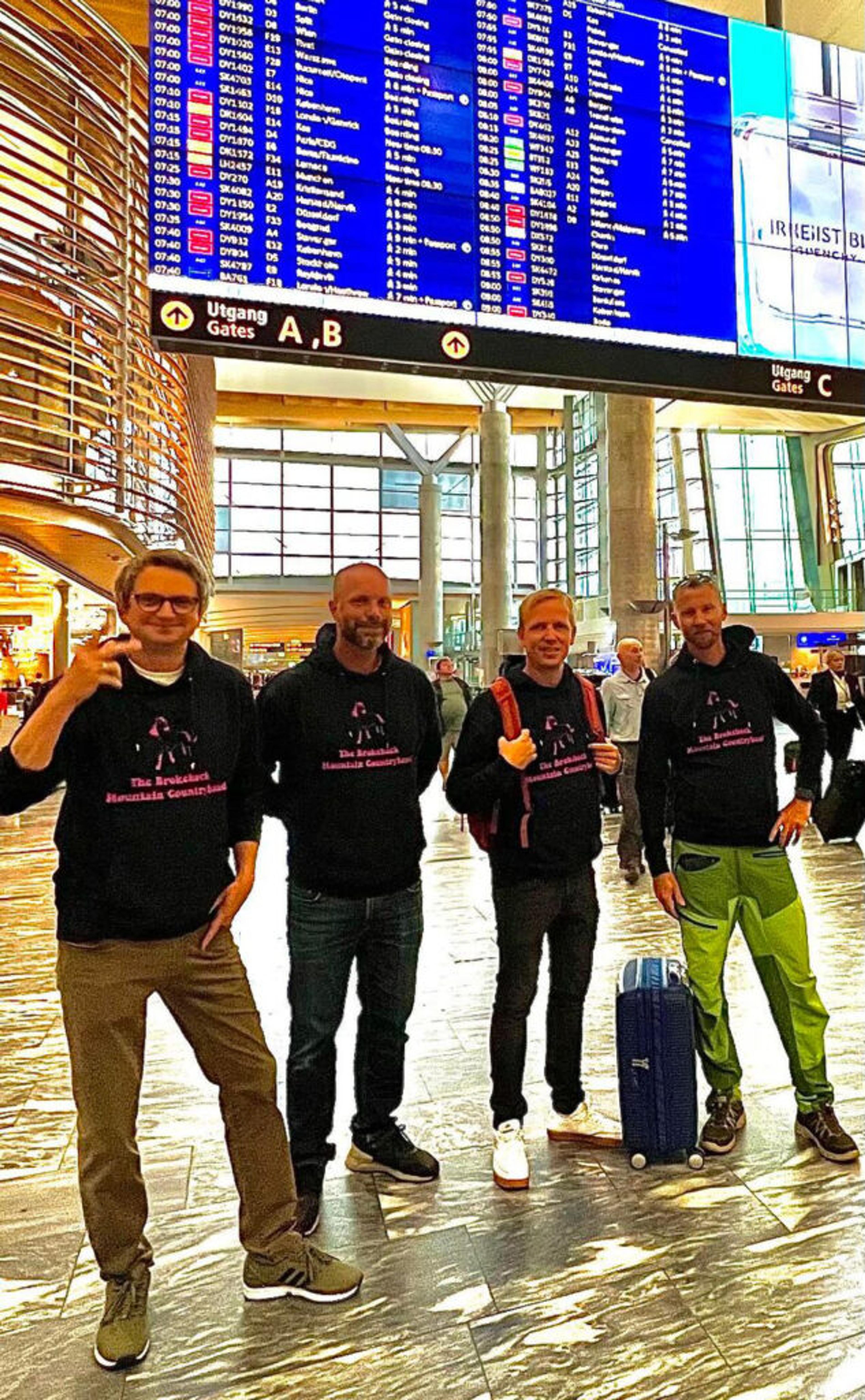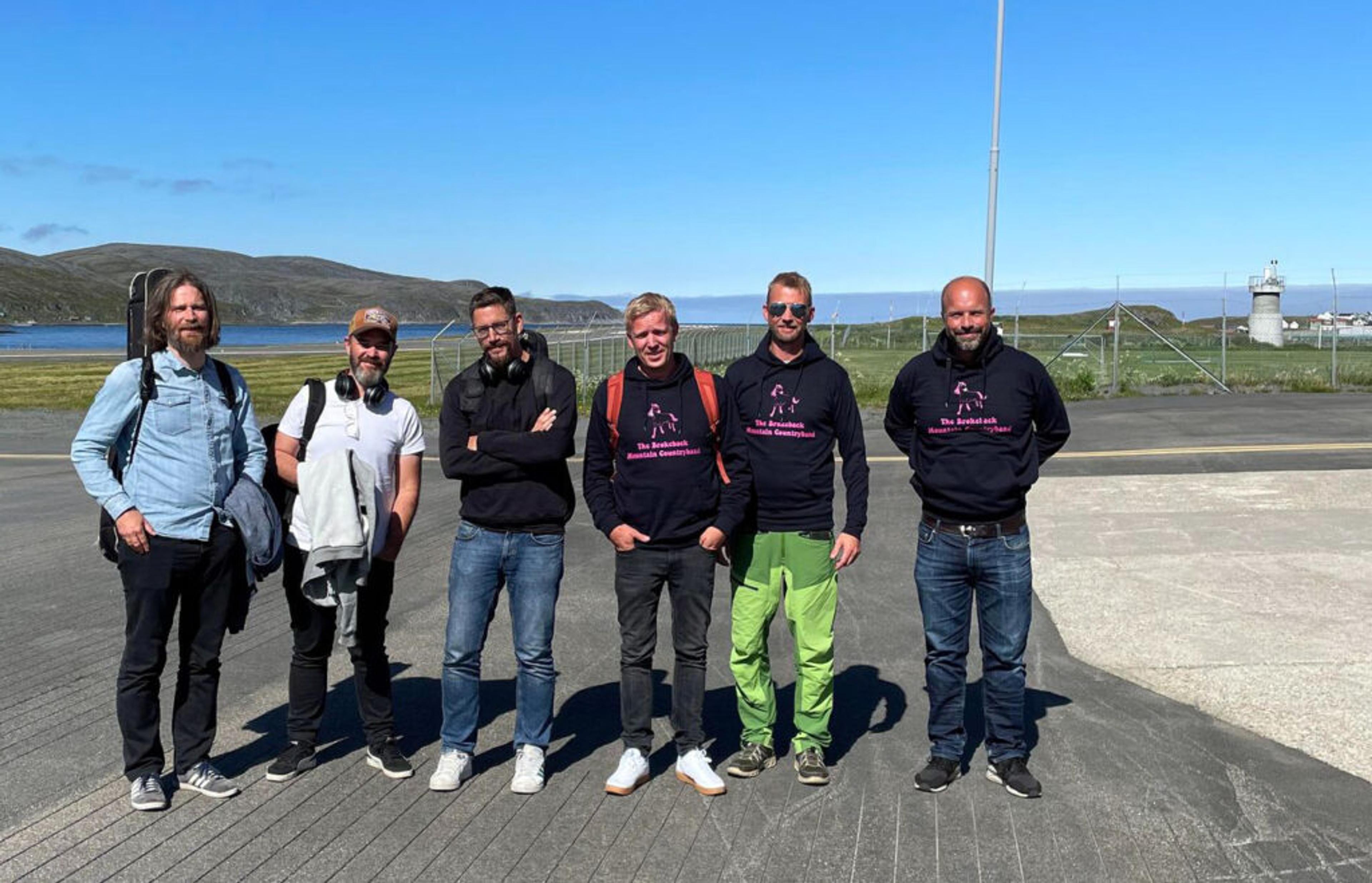 – Flyr nå fra Oslo via Tromsø og lander i Mehamn. Så en liten tur over fjellet til bygda, forteller Thomas Stange på vegne av Brokeback-gutta.