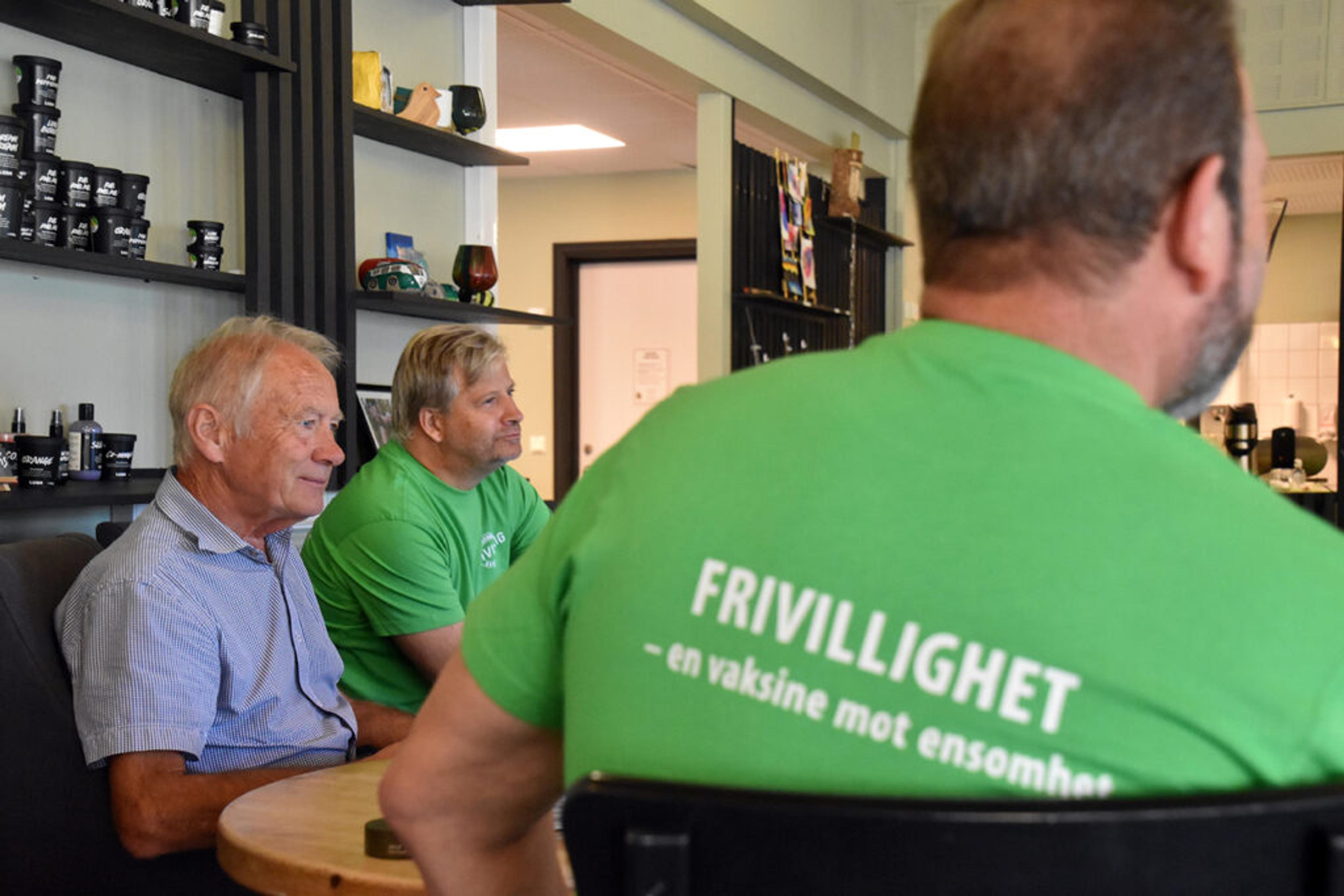 IMPONERT: – Det er bare å applaudere, mener Thorvald i prat med de frivillige på tREffpunktet på Brår for ei uke siden. Og det ble ett av de aller siste besøkene hans som folkevalgt. Foto: Stian Ormestad, ReAvisa.