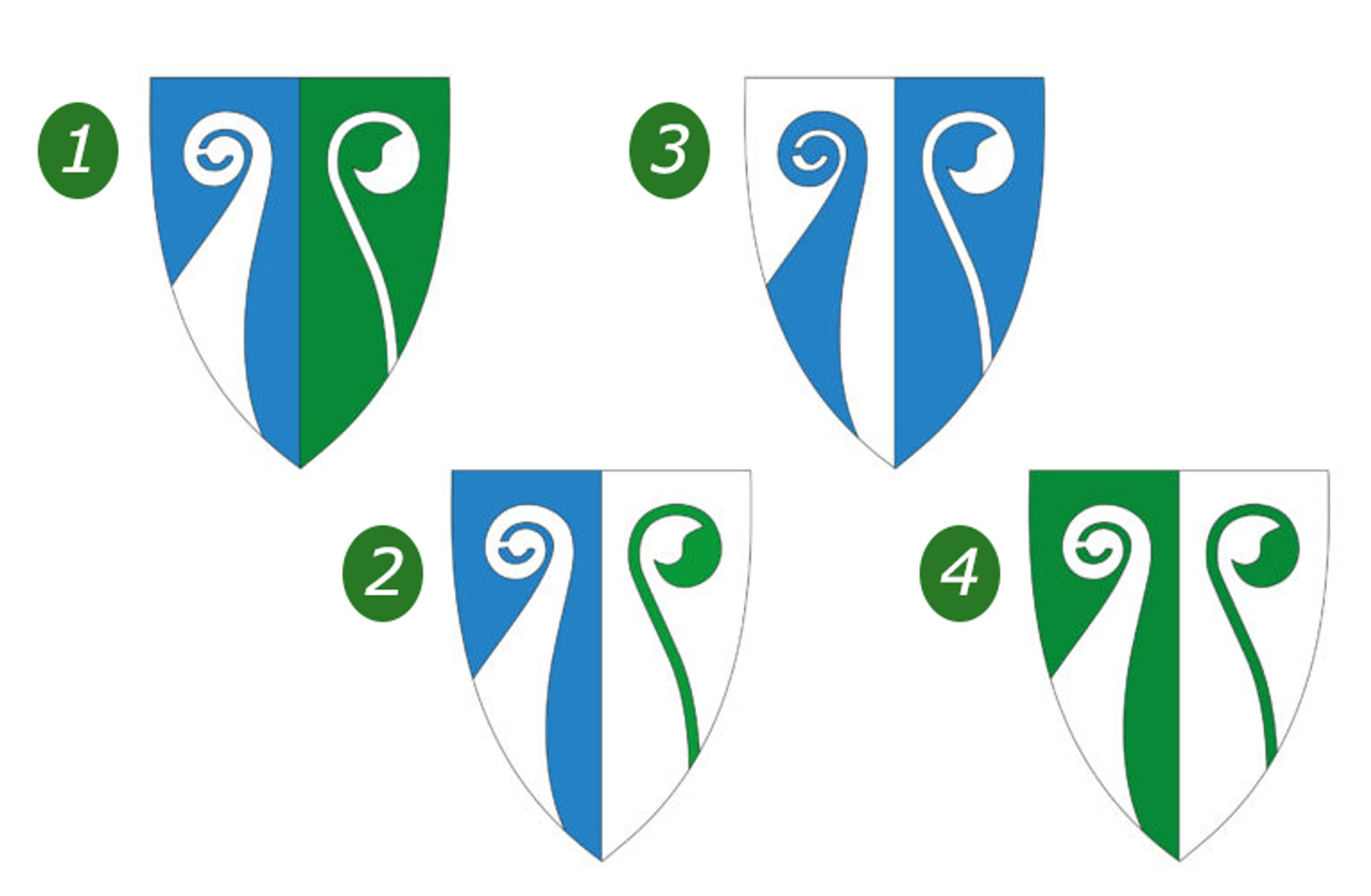 1 - Hvit stavn på blå bakgrunn, og hvit spire på grønn bakgrunn