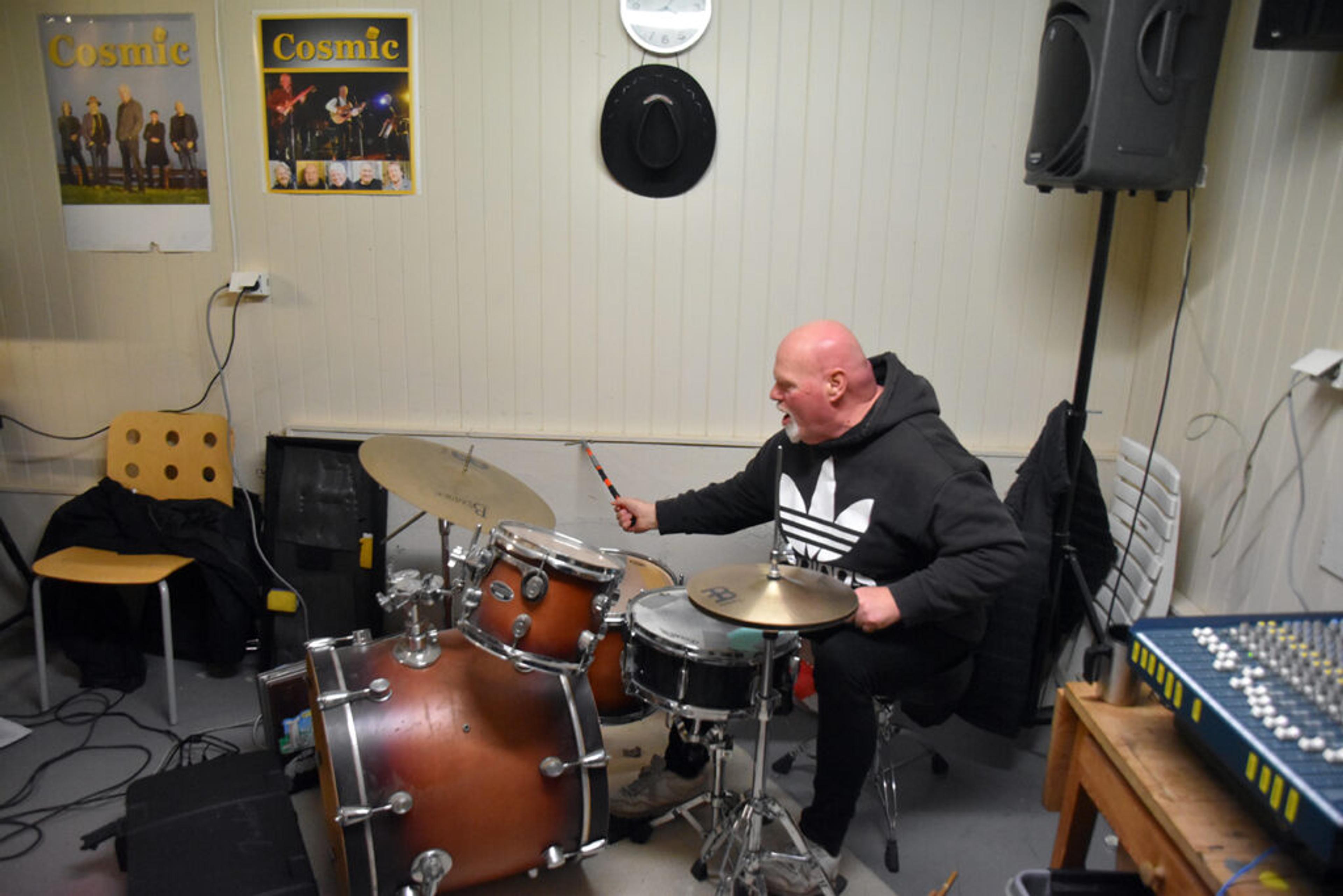 TELLER OPP: Ulf Petterson har kommet og gått som trommis i bandet, men har mest kommet. Foto: Stian Ormestad, ReAvisa.
