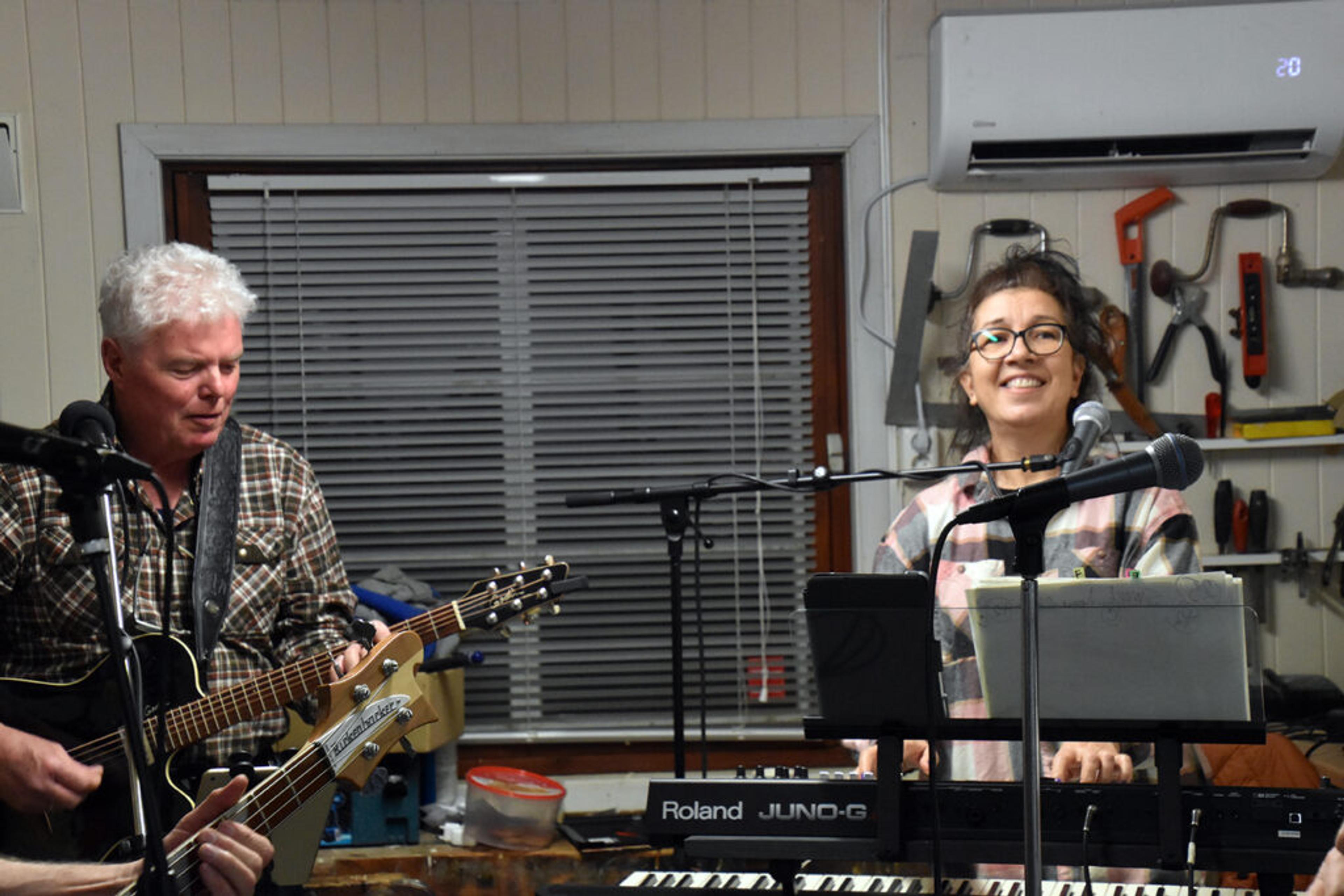 DEMENSKORET? – Vi er vel snart en versjon av demenskoret, sier Anders Kjær og ler, – vi øver og koser oss hver uke, nå må vi vel snart det for å huske alt – men det er bare for moro, musikk har alltid vært en hobby. Foto: Stian Ormestad, ReAvisa.