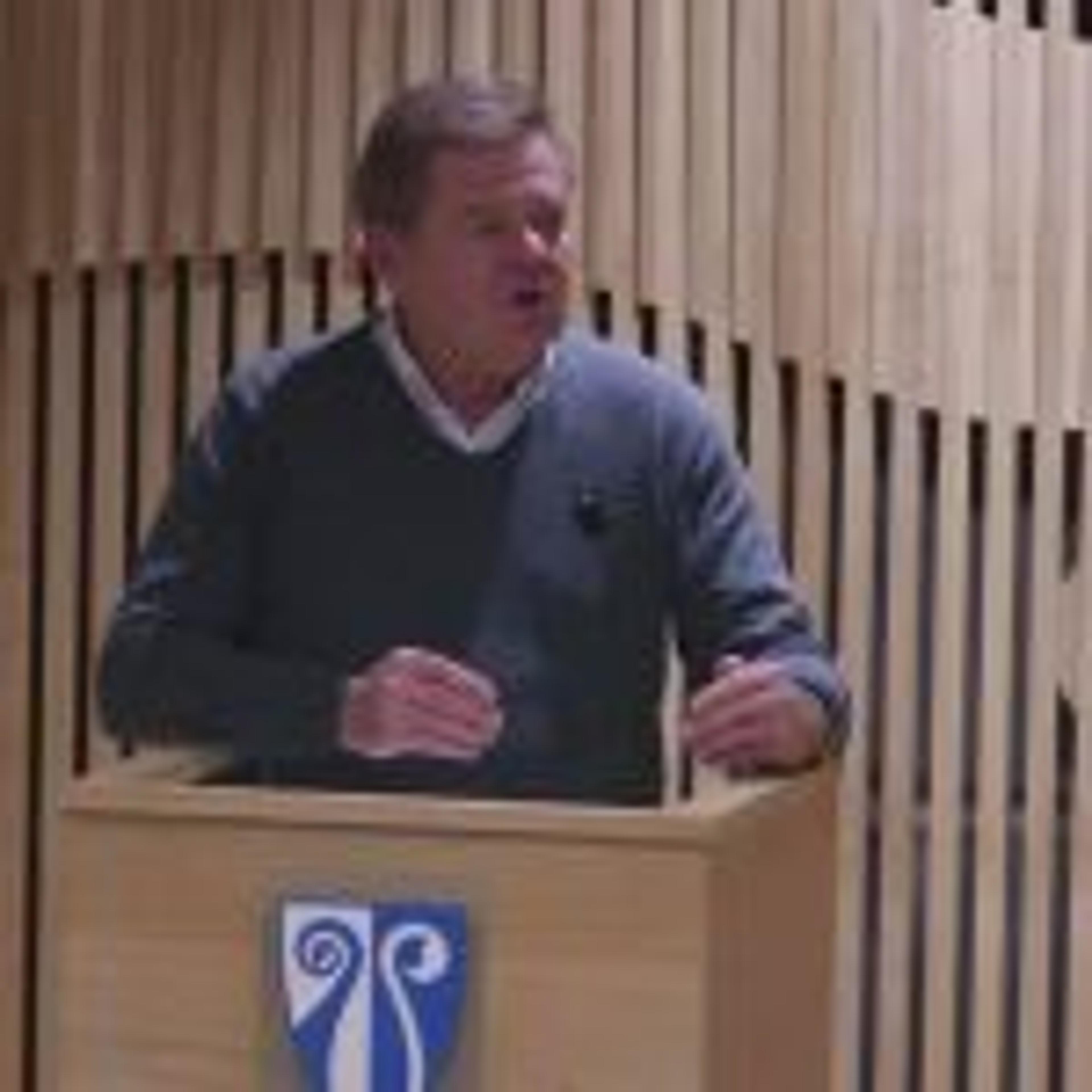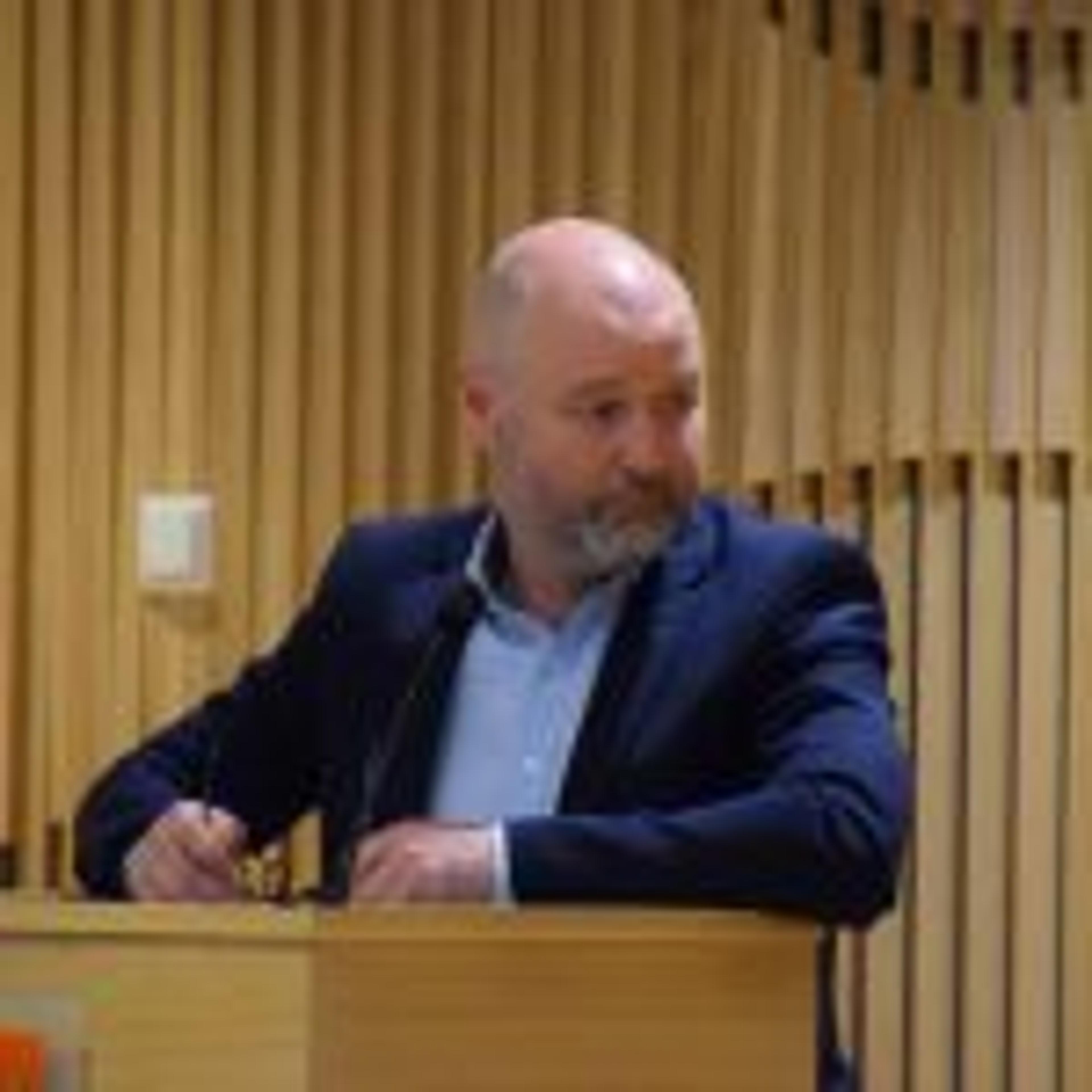 KOMMUNEOVERLEGE: Sigmund Skei redegjør for kommunestyret. Foto: Tønsberg kommune.