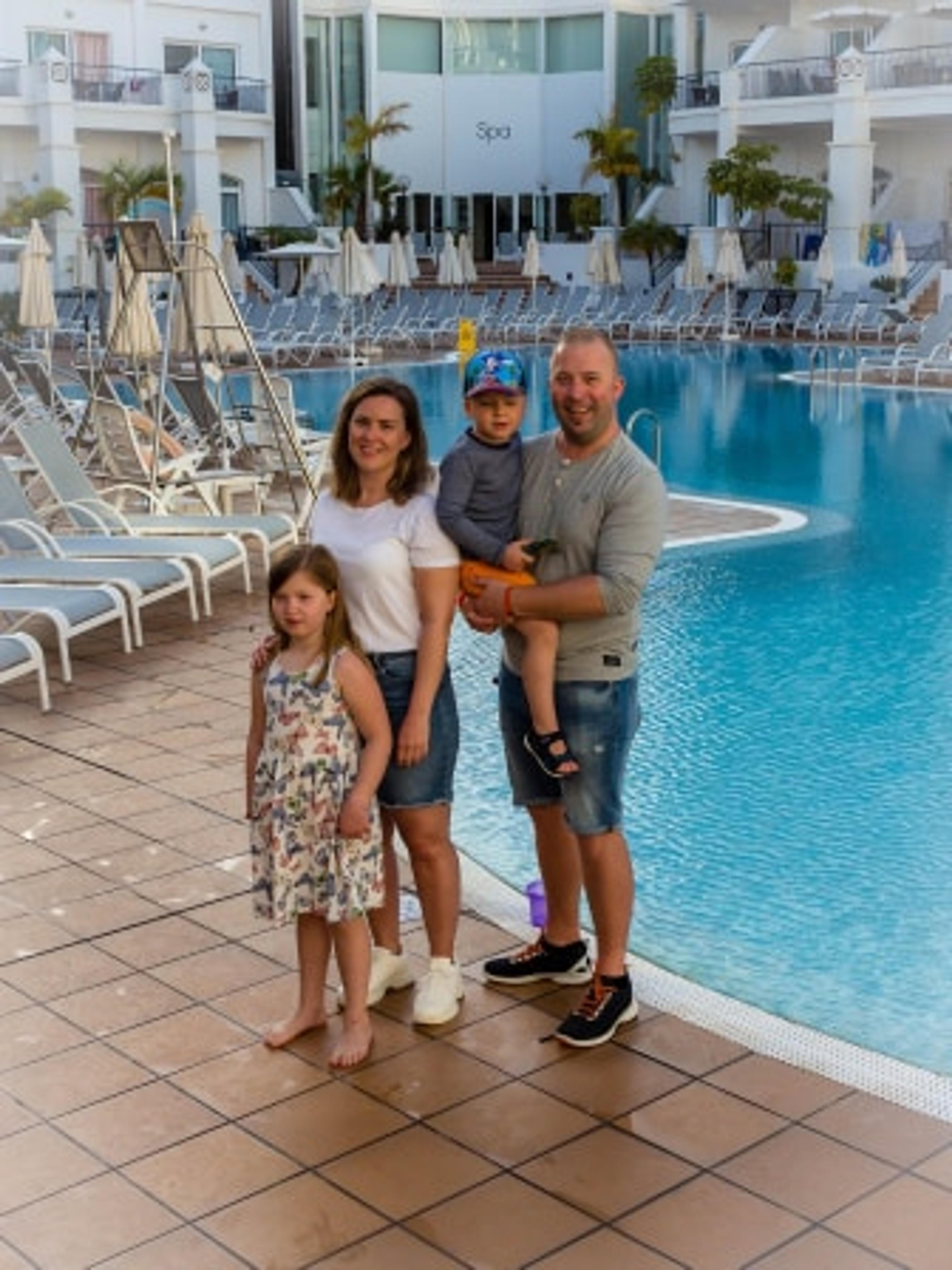 FERIEIDYLL: Familieferien på Tenerife var før alle restriksjoner og alvoret slo inn. Foto: Privat.