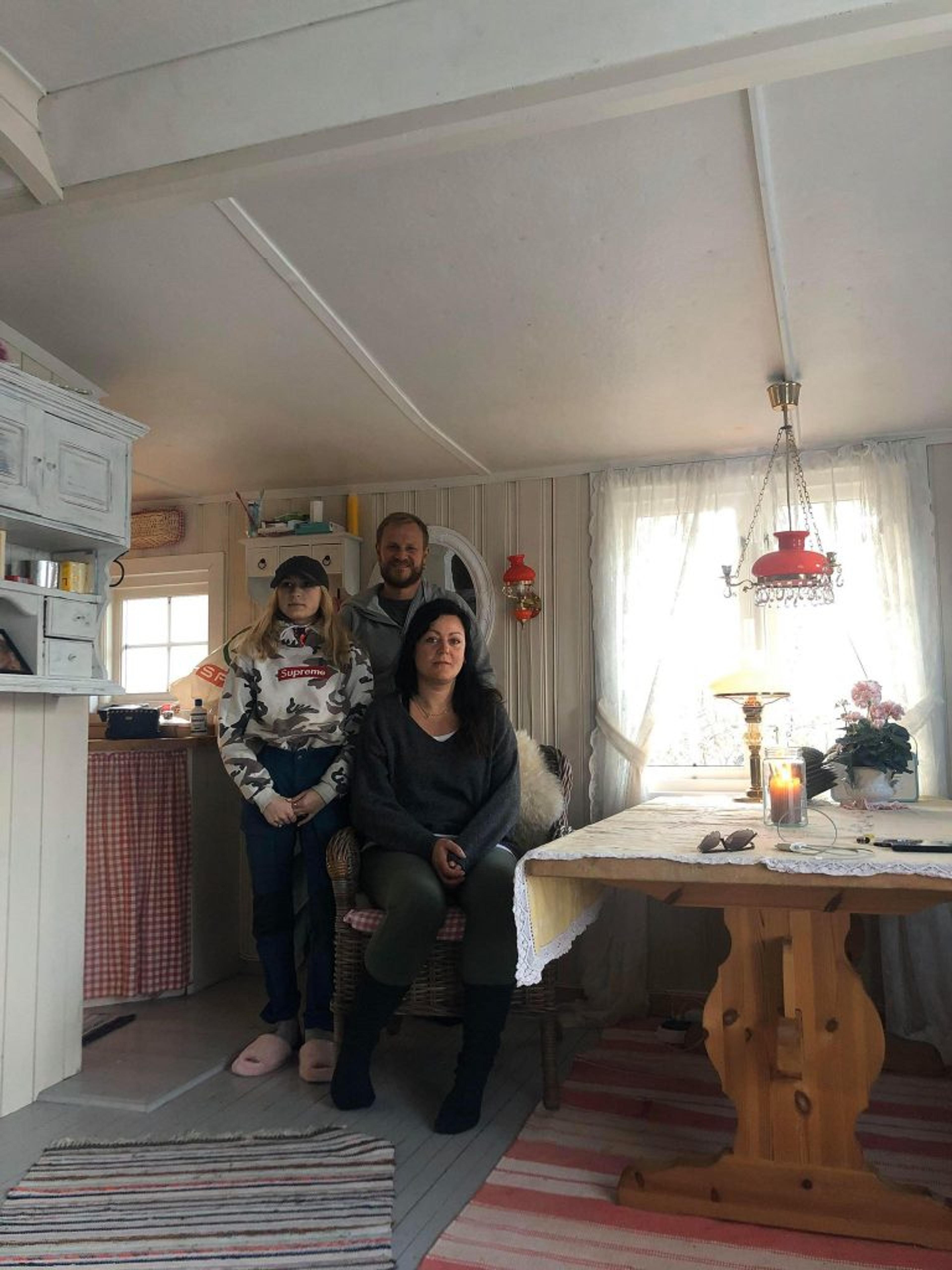 HYTTESKAM: Et nytt og mye brukt ord i korona-tida var «hytteskam». Men denne Re-familien, med hytte ved Langevann, kunne som noen få reise med god samvittighet på hytta si. Foto: Privat.