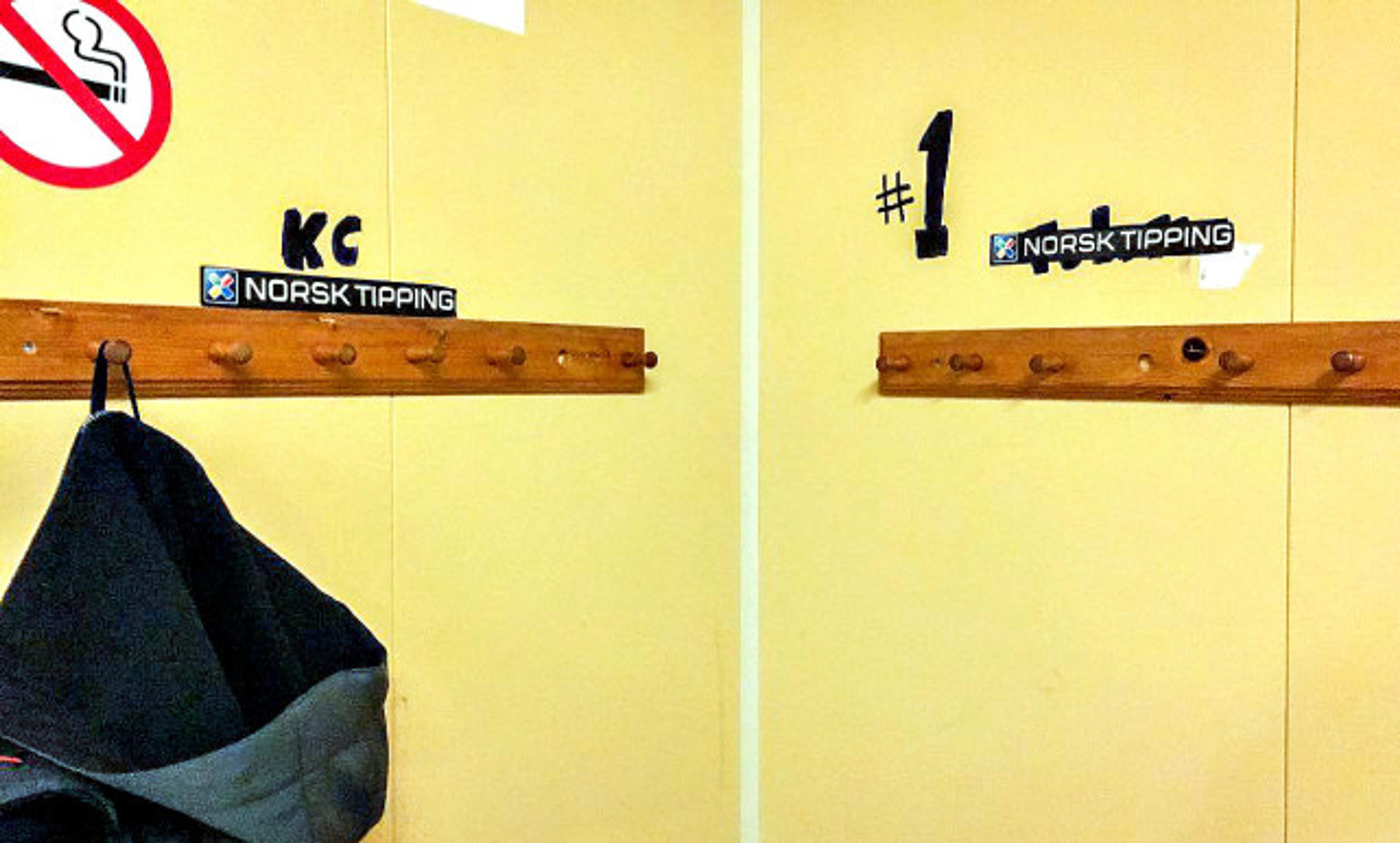 FROSSA UT: Teipen til høyre i bildet er satt over navnet til Kris Cato i garderoben, ifølge varsleret. Foto: Privat