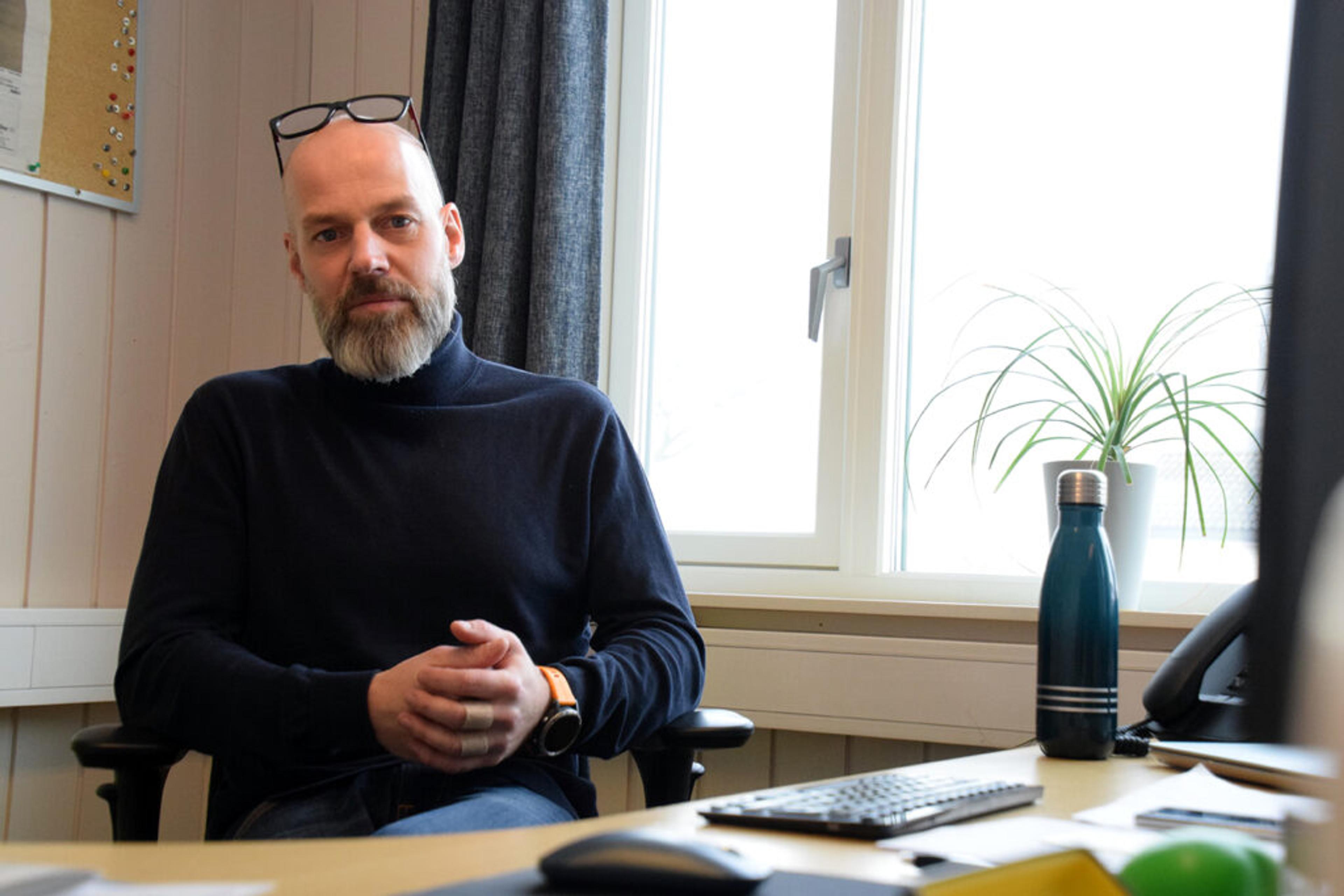 SYNLIG: Kristoffer vil ut blant folka han driver skole sammen med, de ansatte og elevene. – Det er elevene vi er her for. Det er de og lærerne som veit hvor skoen trykker. Foto: Stian Ormestad.