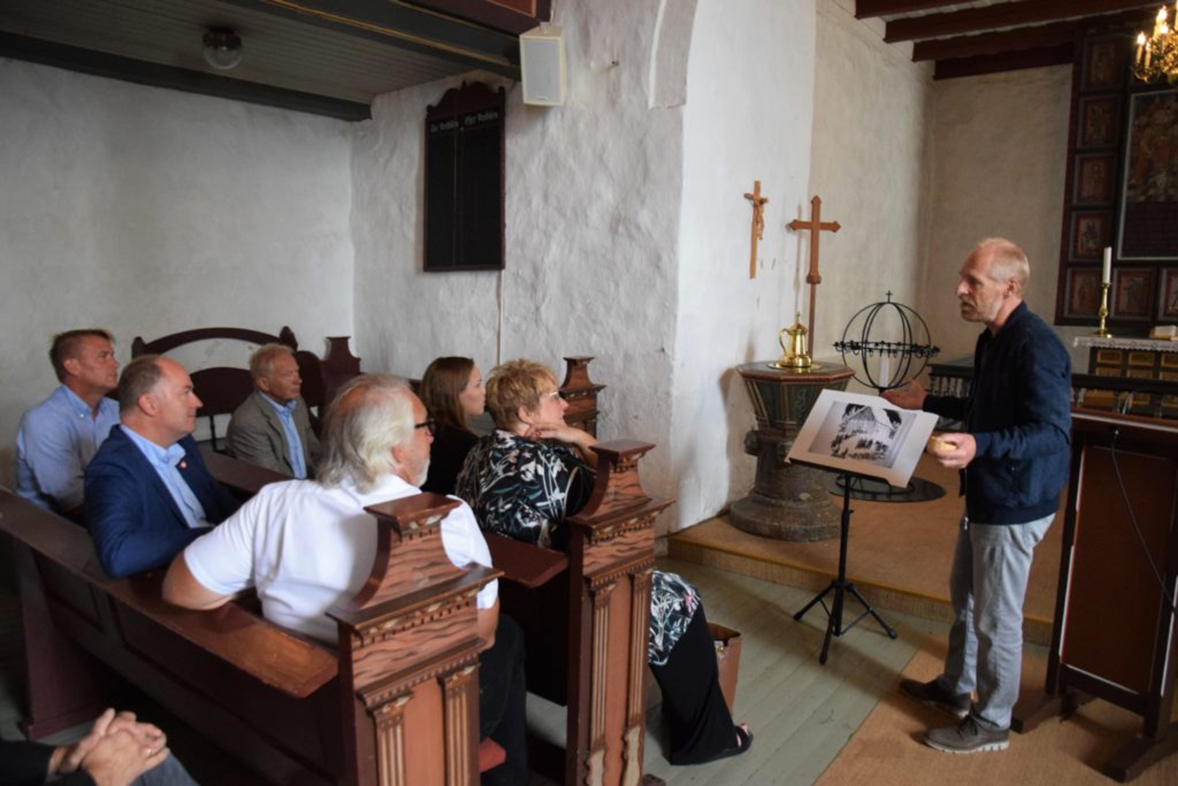 Han skryter av at statsråden hadde tatt turen til Re. – Det er hvert fall første gang at jeg har fått spørsmål fra en statsråd om å få komme i et slikt ærend. Bare det lover jo godt, sier han, og viser samtidig til utallige signaler om at staten må ta sin del av regninga for å holde kirkene i stand.