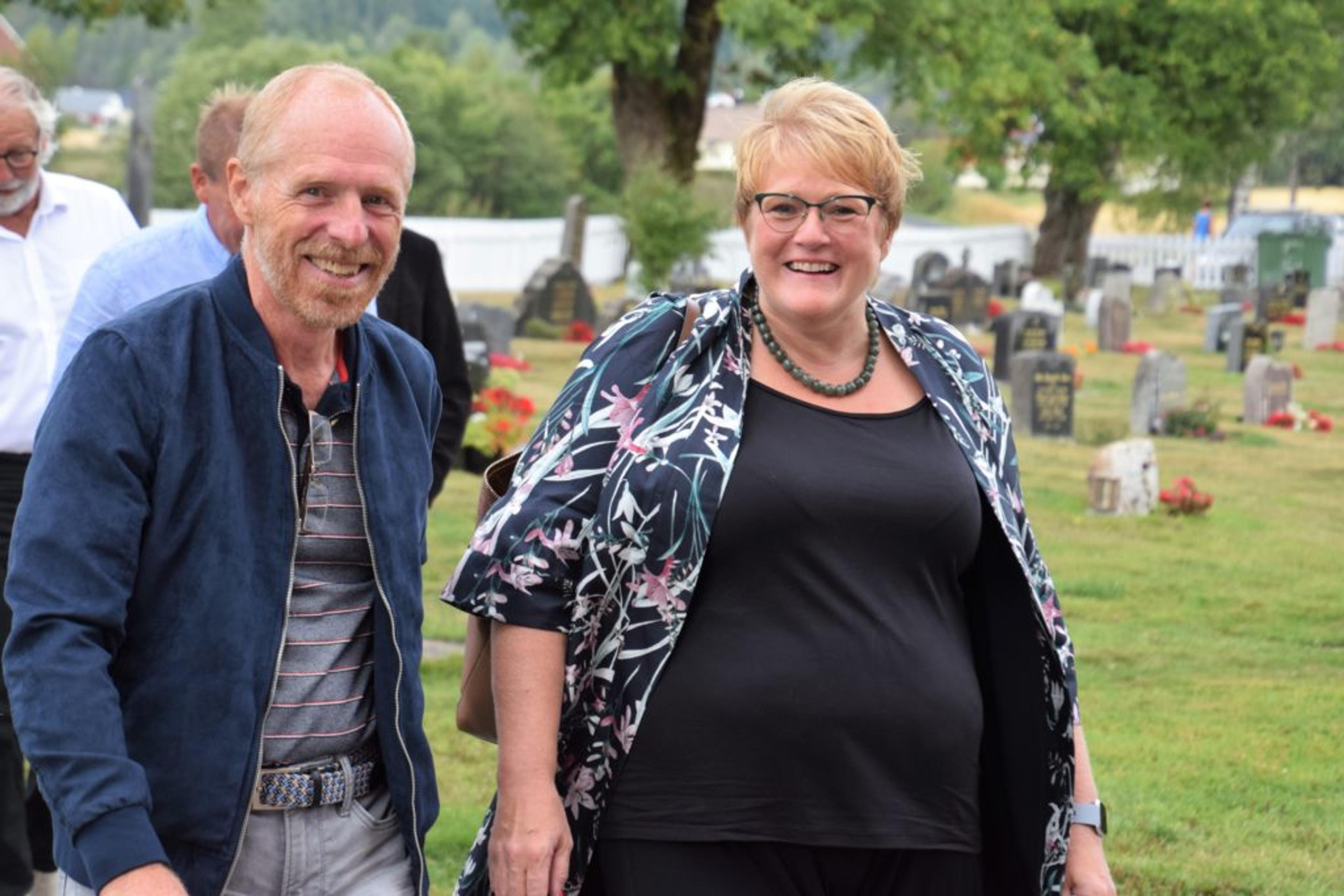 GOD STEMNING: Ordfører Thorvald Hillestad, kulturminister Trine Skei Grande og stortingsrepresentant Carl-Erik Grimstad utenfor Ramnes kirke. Foto: Stian Ormestad.