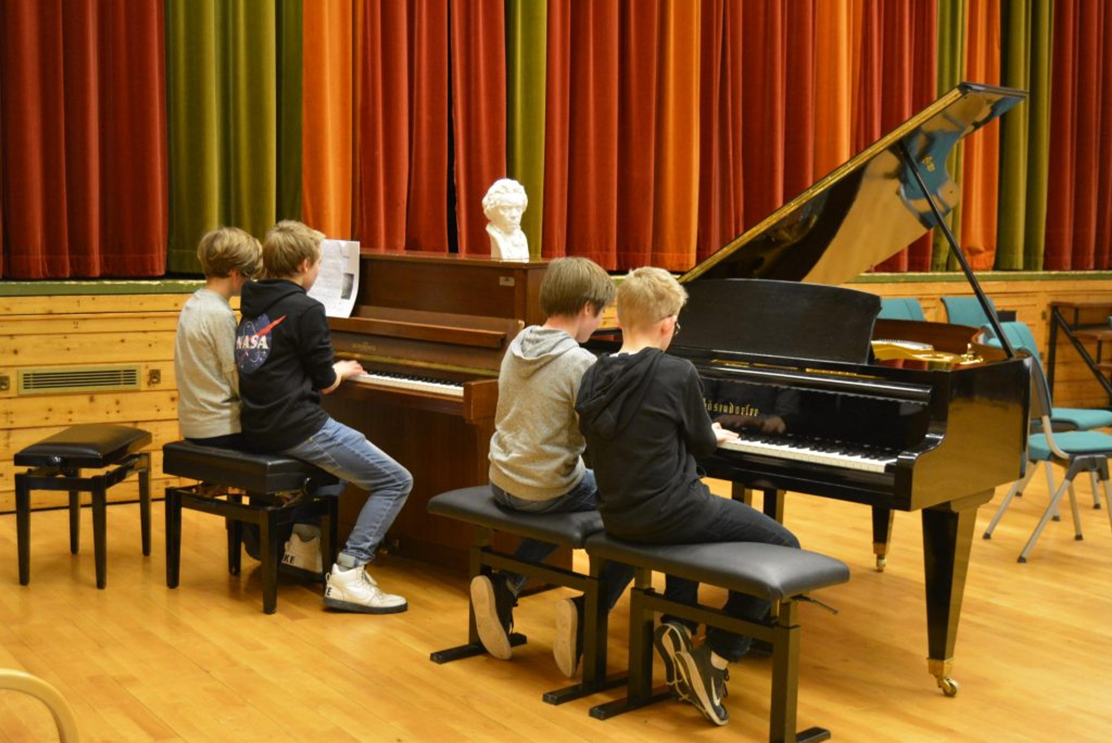 TALENT-SEMINAR: De aller ivrigste kulturskole-elevene møtes for ei helg med fordypning i sine instrument på Våle samfunnshus. I år er Holmestrand ute og Tønsberg inne i samarbeidet. Foto: Lovis Eggum Wallberg.