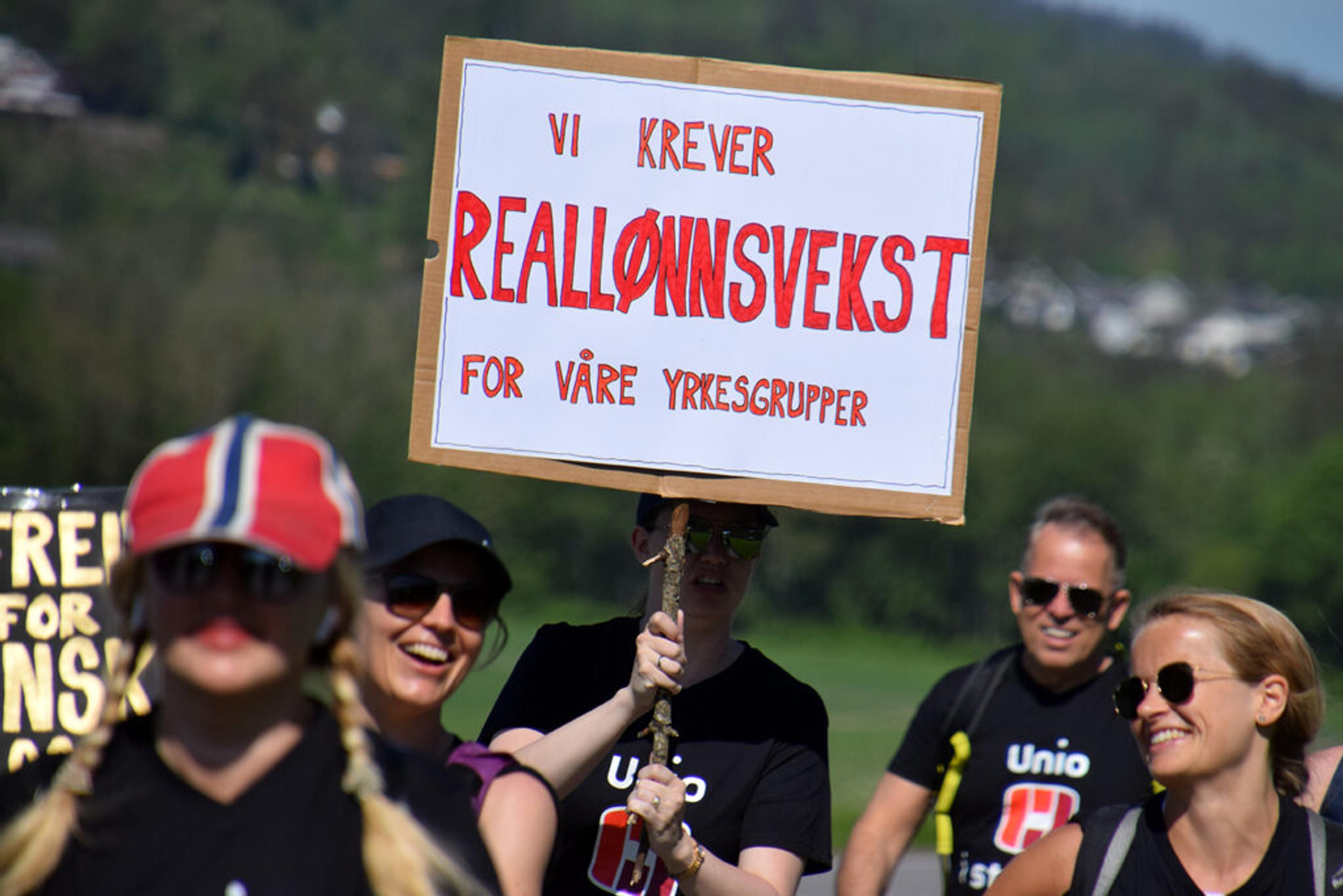 STREIK: Maria Ellingsen Bjune, lokal fagforeningsleder ved Revetal ungdomsskole, forteller om stor streikevilje – hvis det blir streikeuttak her i Re. Foreløpig har ikke det skjedd, og det skjer heller ikke til uka. Bildet er fra streiken i fjor, som ble avslutta med tvungen lønnsnemnd. Arkivfoto: Stian Ormestad.