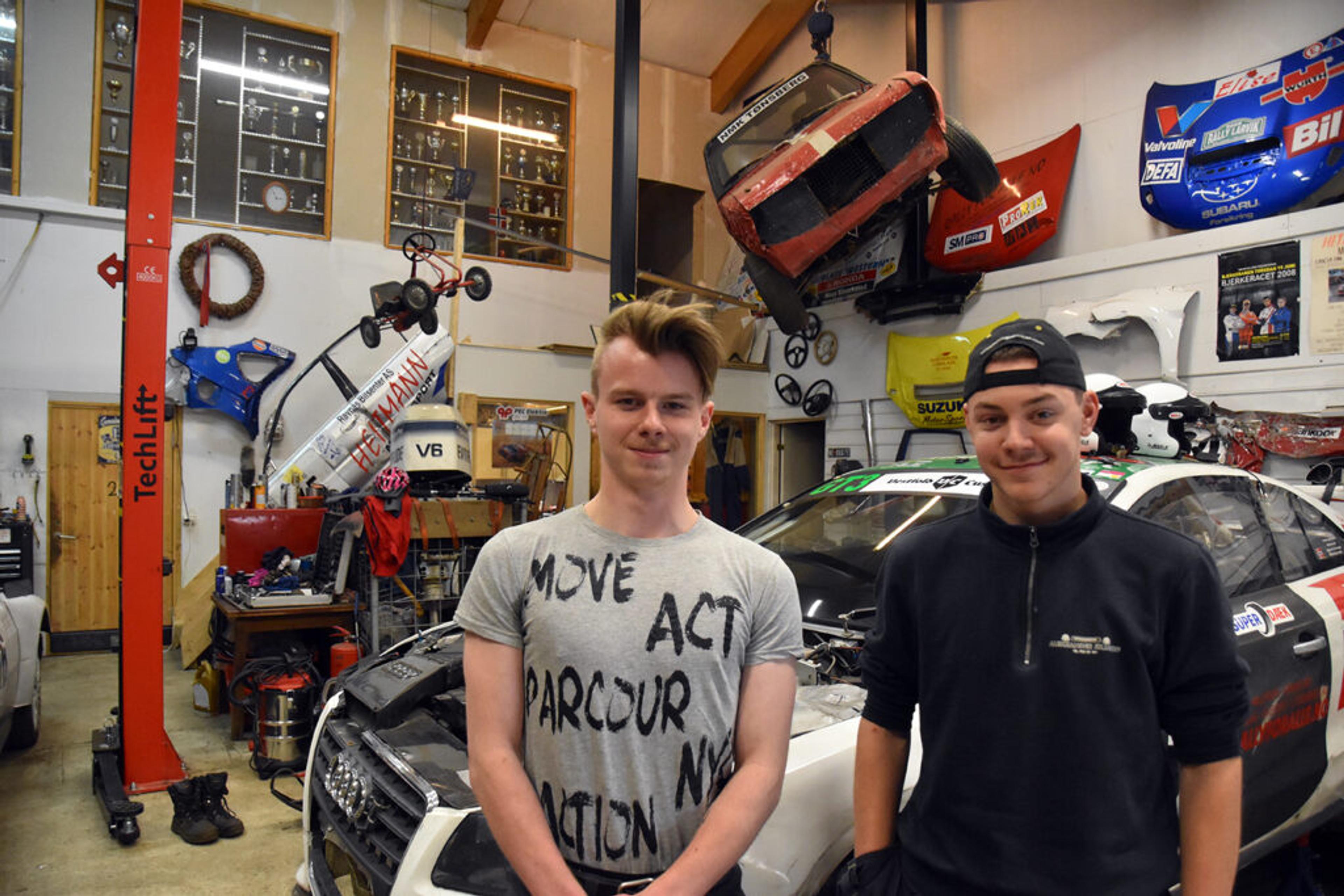 Nå er også han lærling her, begge gutta går et fireårig praktisk løp fram til fagbrev i bilmekanikerfaget.