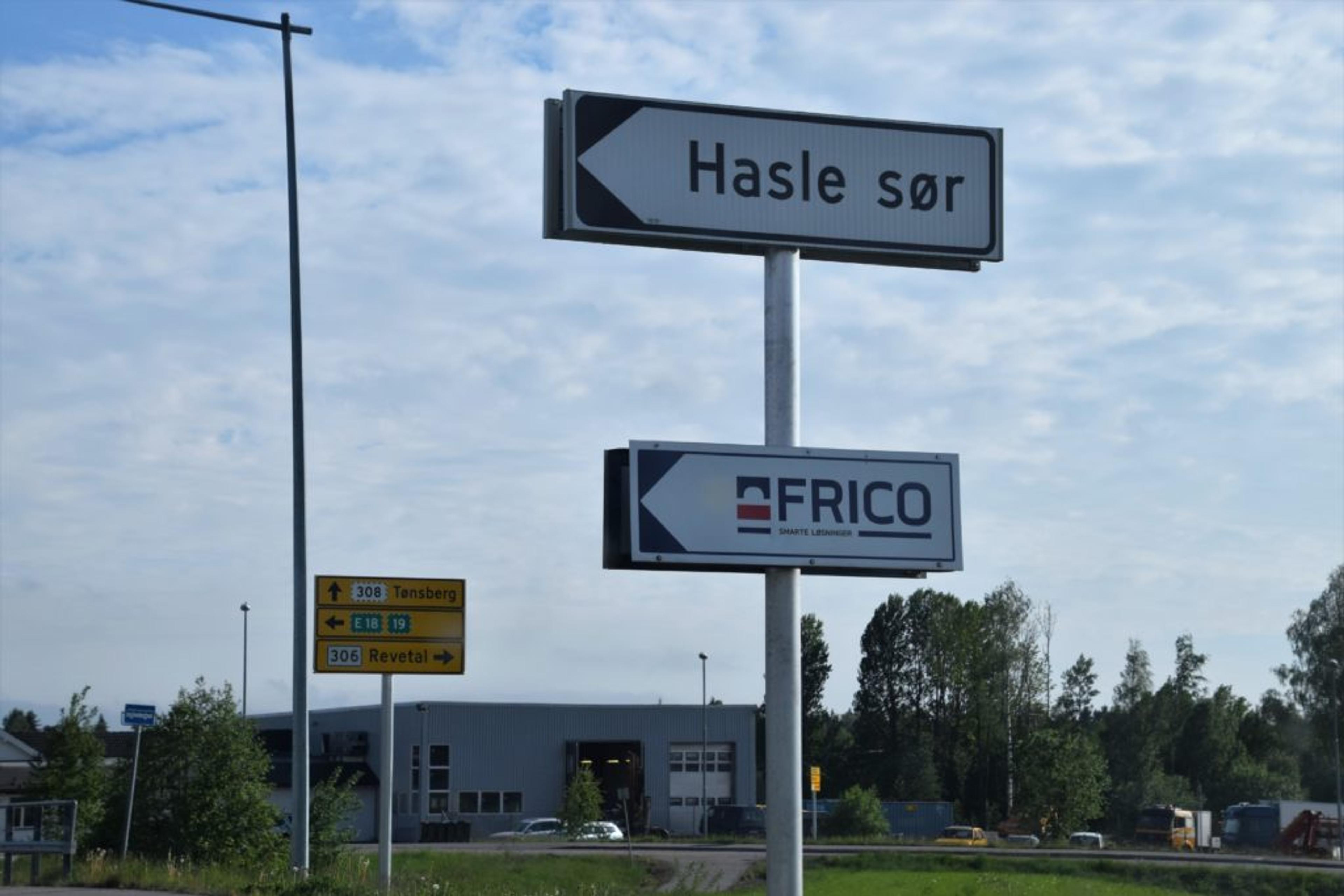 HASLE NÆRINGSOMRÅDE: Frico er lokalisert i Døvikveien, både på Hasle nord og Hasle sør, med innkjøring fra gamle E18. Foto: Stian Ormestad.
