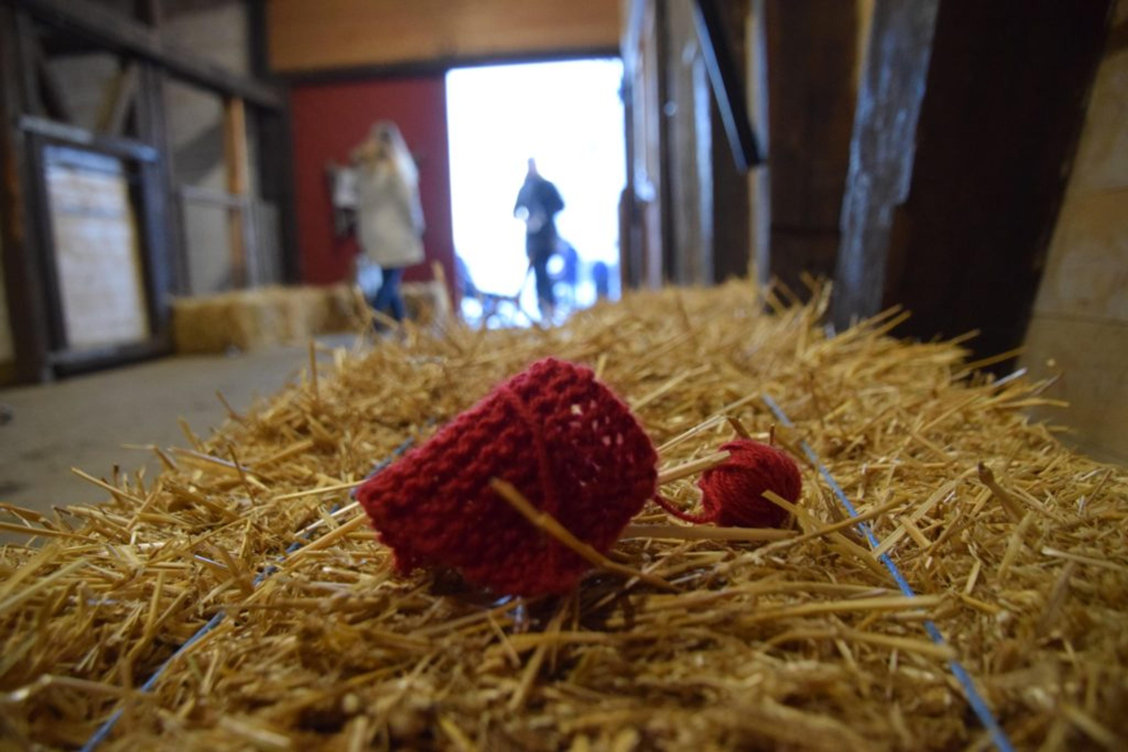 RAMPENISSE: Rett etterpå hoppa nissen ned i høyet, rett ved Holtebonden. Først rappa han lua til bonden, men da han fikk grøten sin, var han ikke så rampete lenger. Foto: Stian Ormestad.