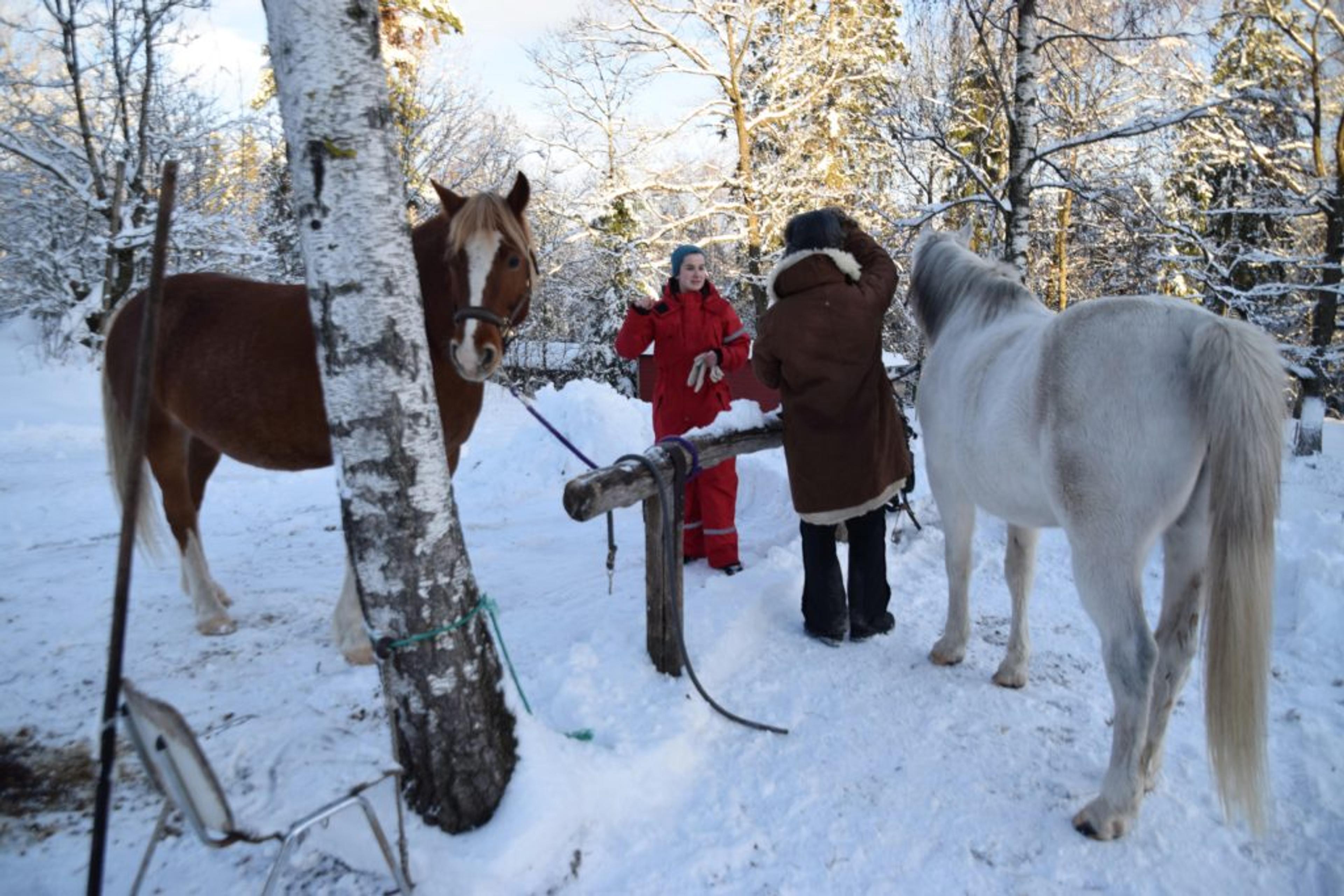 HESTENE ER KLARE: Du kan både ri og kjøre i vogn – og kanskje i slede hvis det kommer mer snø – på Holt gård. Foto: Stian Ormestad.
