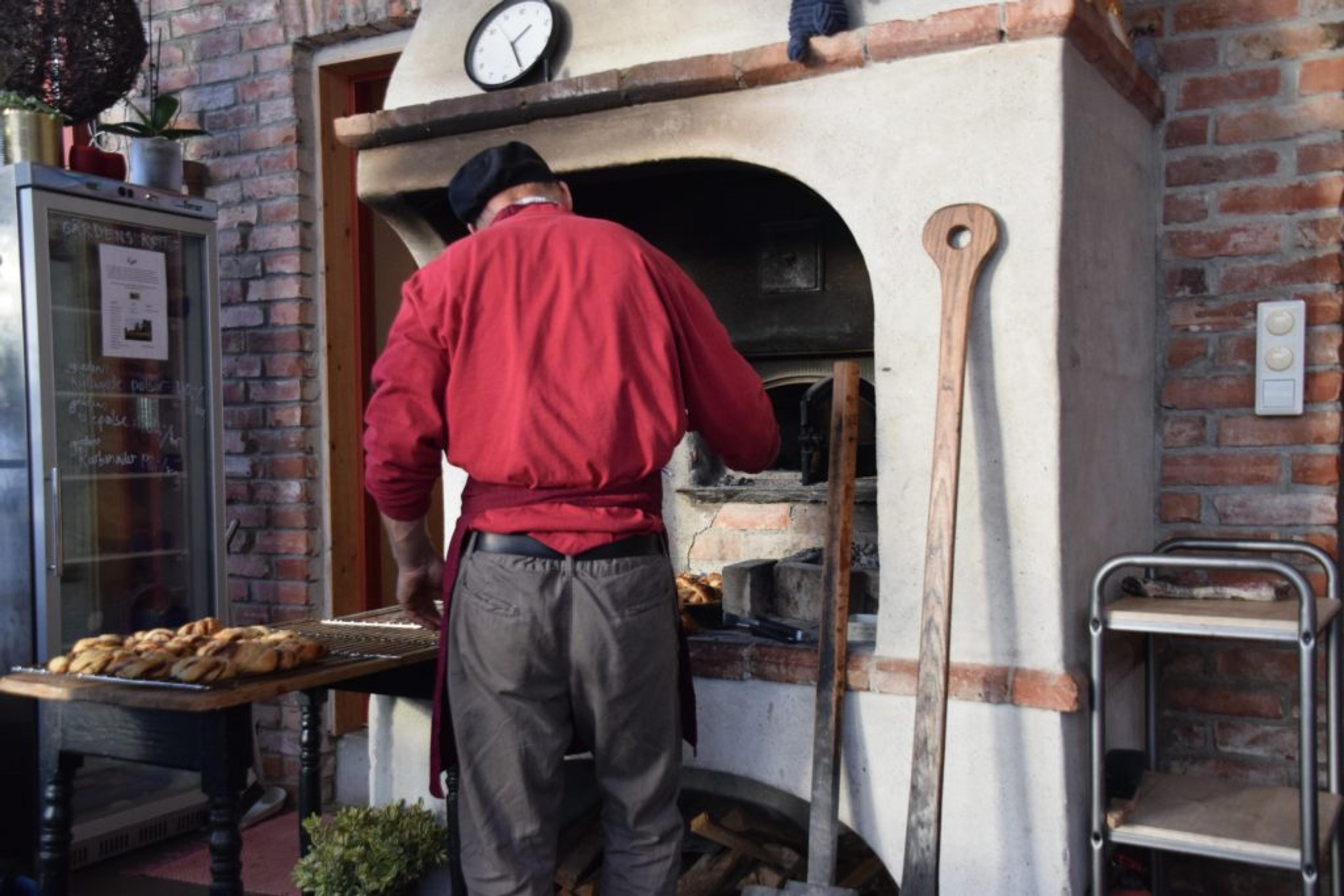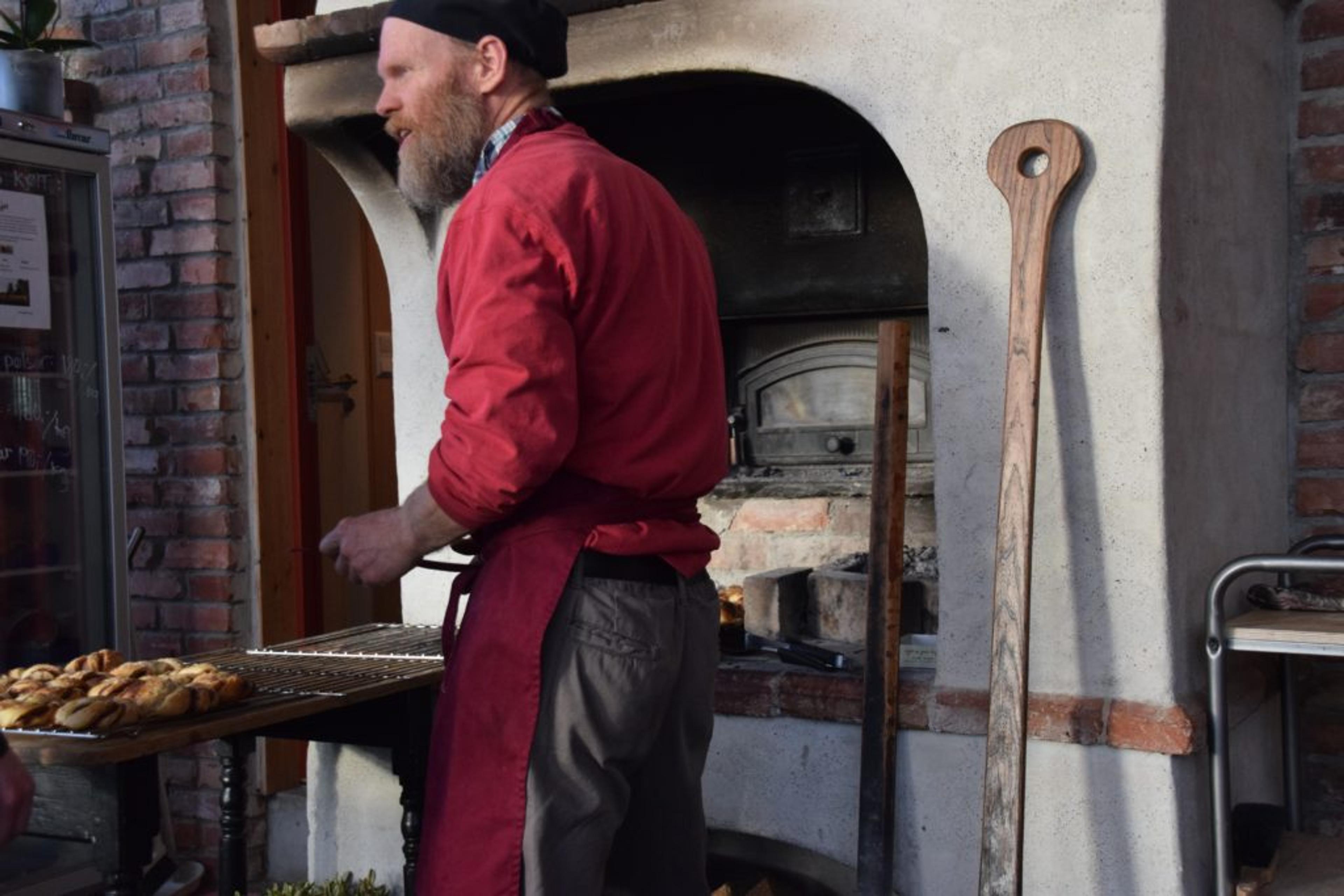 BAKST: Holtebonden er i sving før åpningstid. Foto: Stian Ormestad.