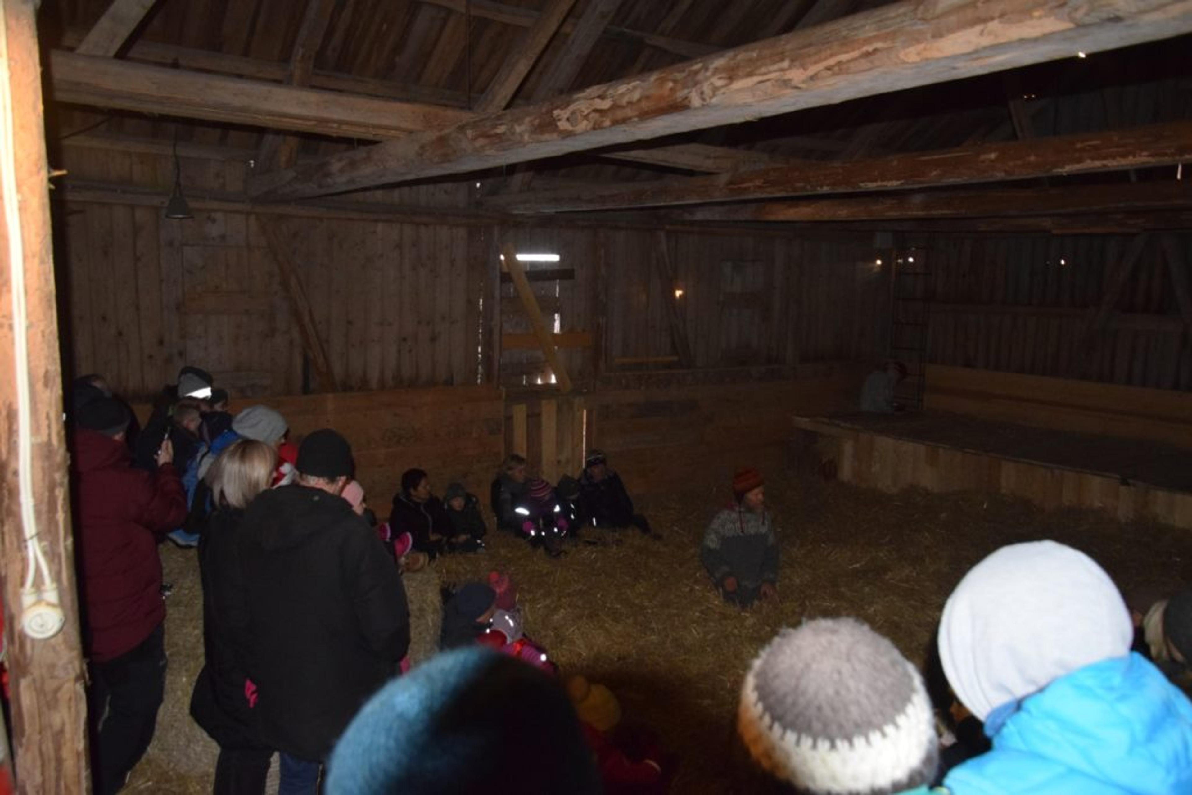 LANG KØ: Mange ville få med seg jakten på julenissen inne på låven. Foto: Stian Ormestad.
