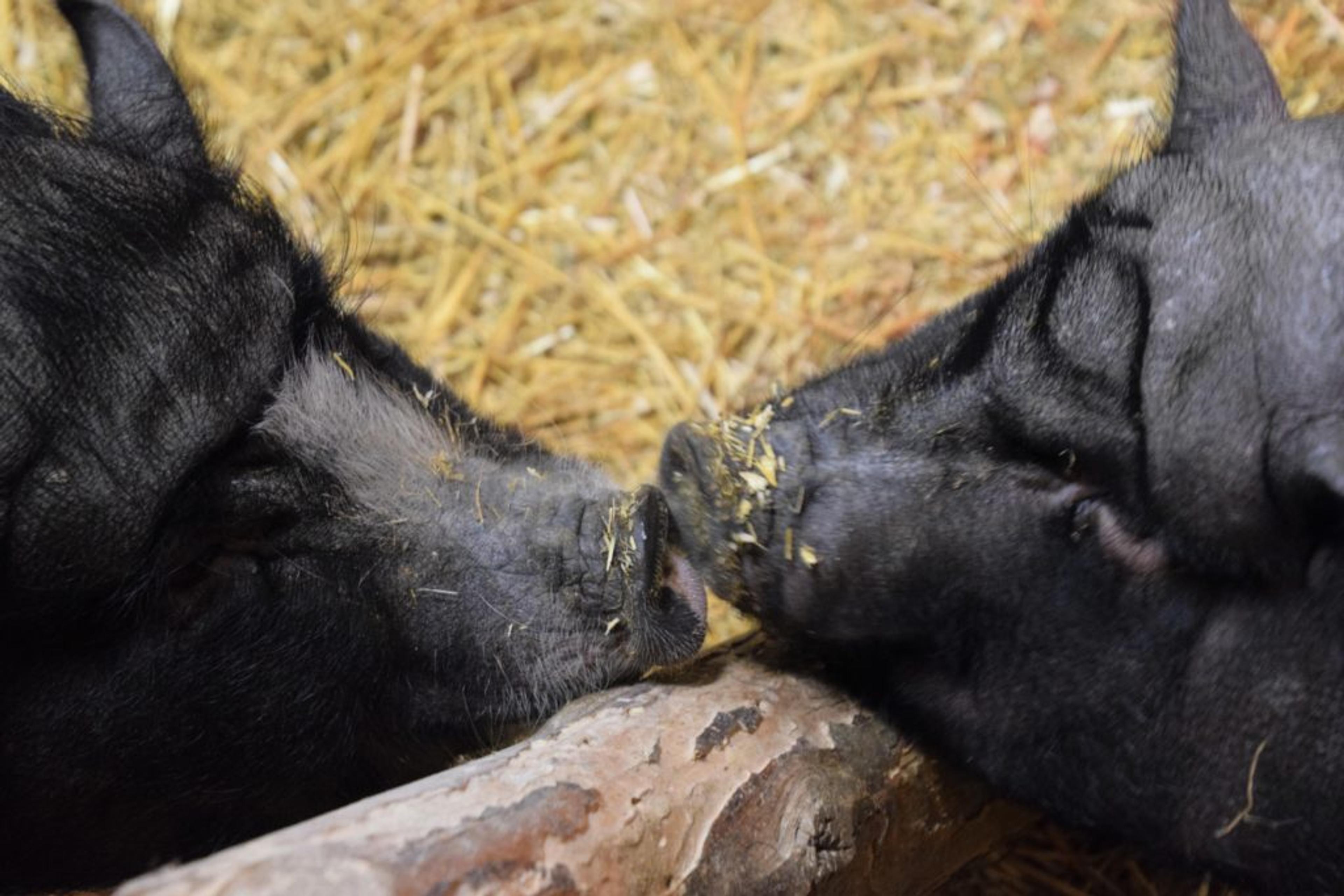 GRISENUSS: Grisene byr på litt kjærlighet i bingen. Foto: Stian Ormestad.