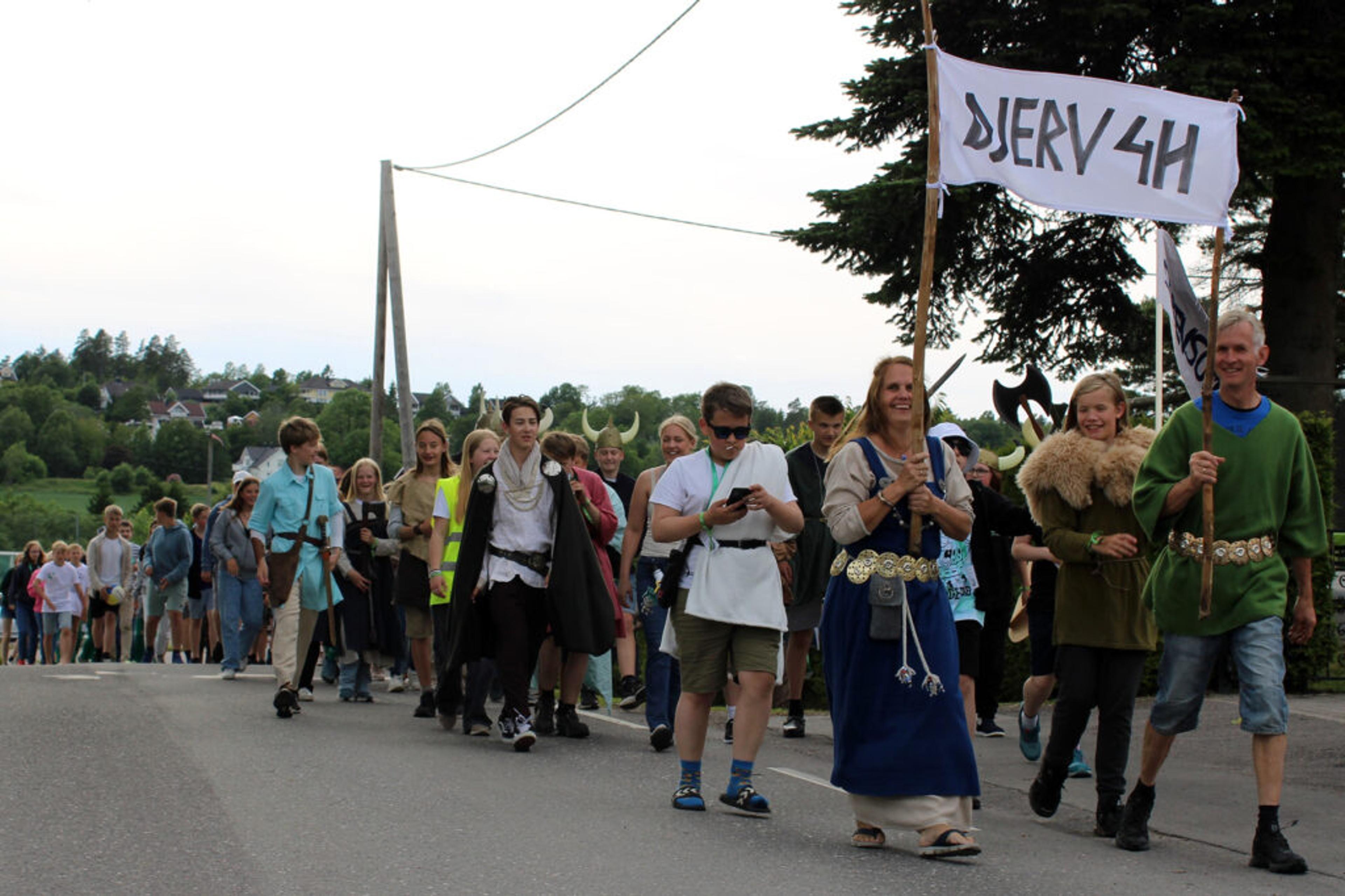 4H-FYLKESLEIR I RE: 4H-lag fra hele Vestfold og Telemark tok turen til Re og fotballsletta ved Dalheim i Undrumsdal i sommer. Det hele starta med et viking-tog, eller viking-tokt, om enn av det godmodige slaget. 4H-klubbene Beitemarken 4H i Ramnes, Djerv 4H i Undrumsdal, og Rapp 4H i Våle, sto bak leiren, i samarbeid med 4H Vestfold og VIGGA 4H, Vestfolds Interesserte Gode Gamle 4H-alumner. Foto: Privat.
